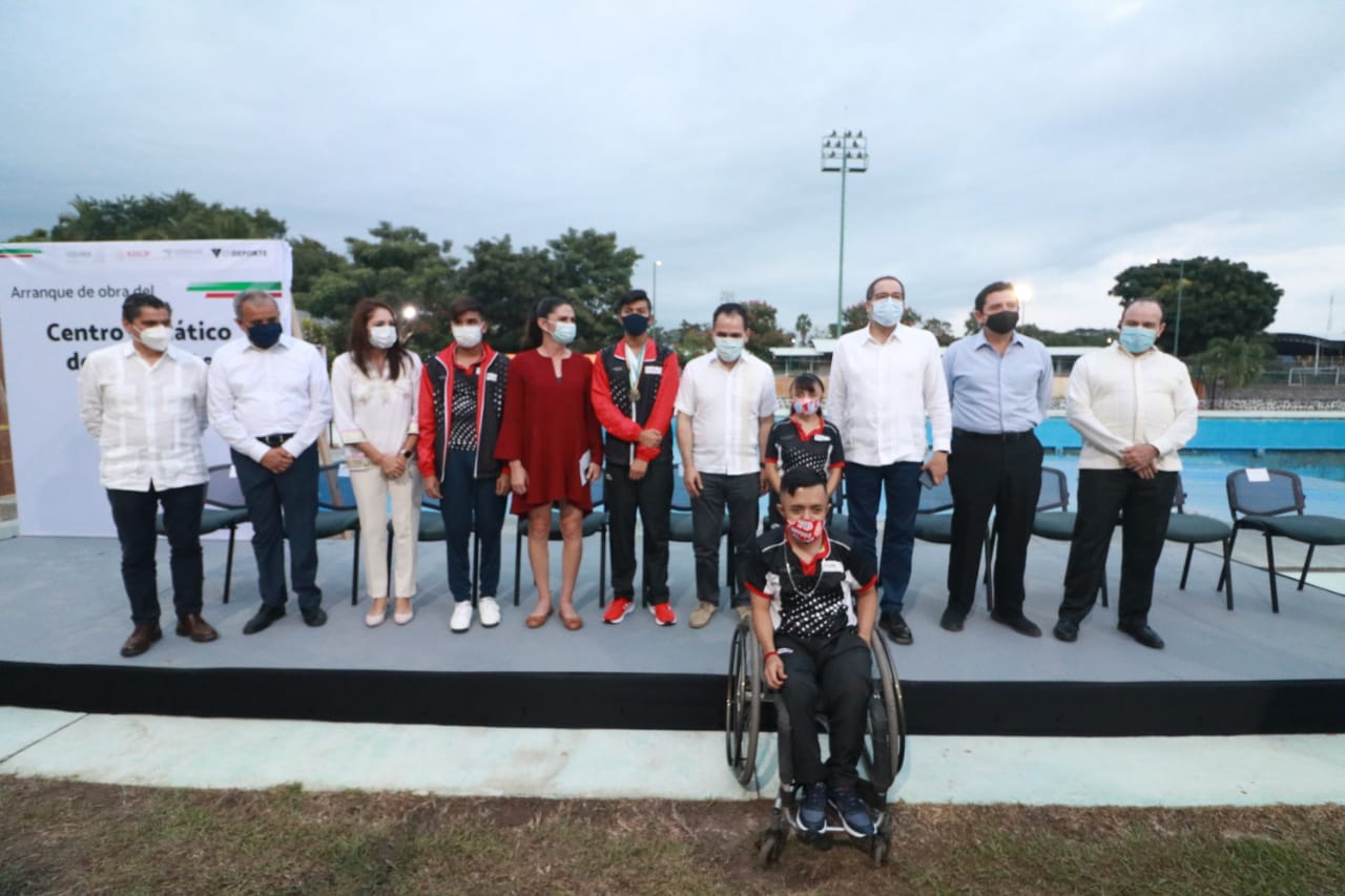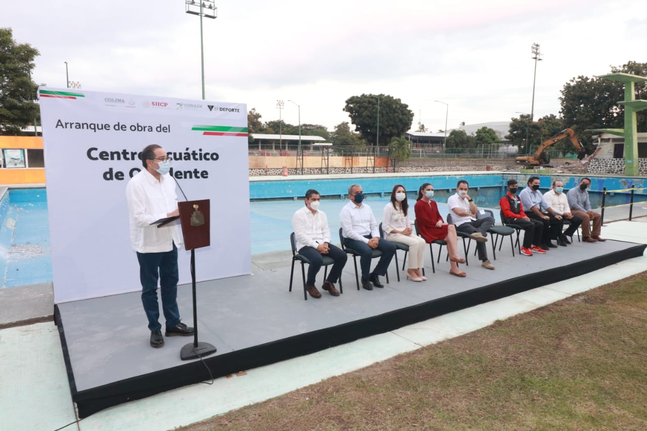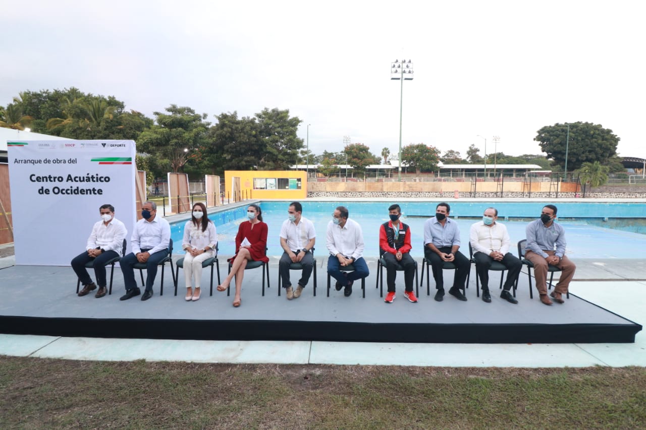 El gobernador José Ignacio Peralta Sánchez acompañado por el secretario de Hacienda y Crédito Público, Arturo Herrera Gutiérrez y la directora de la Comisión Nacional de Cultura Física y Deporte (Conade), Ana Gabriela Guevara Espinoza, presidieron el arranque de obra del Centro Acuático de Occidente “Alberto Isaac”, que estará ubicado en la Unidad Deportiva Morelos.