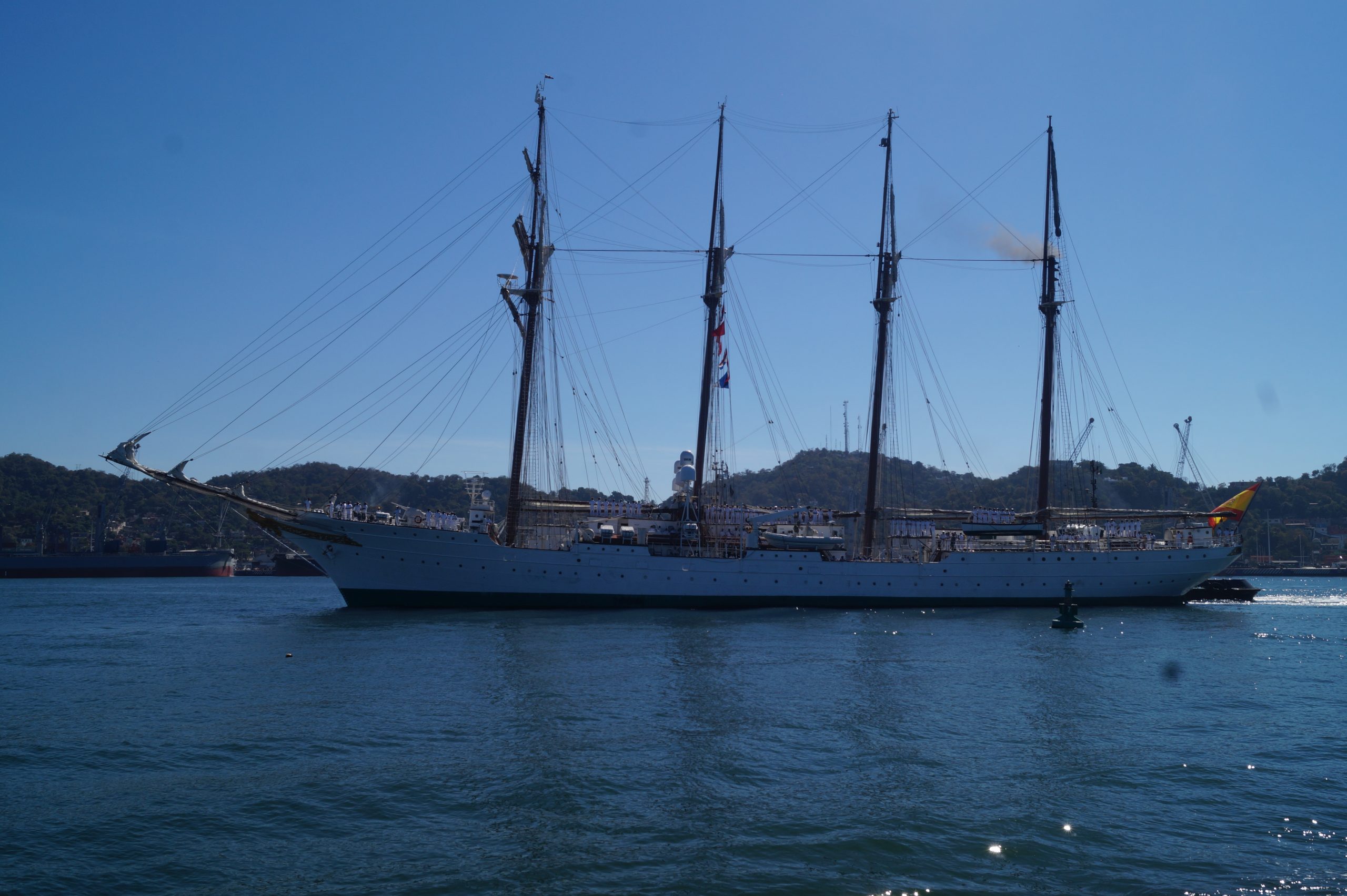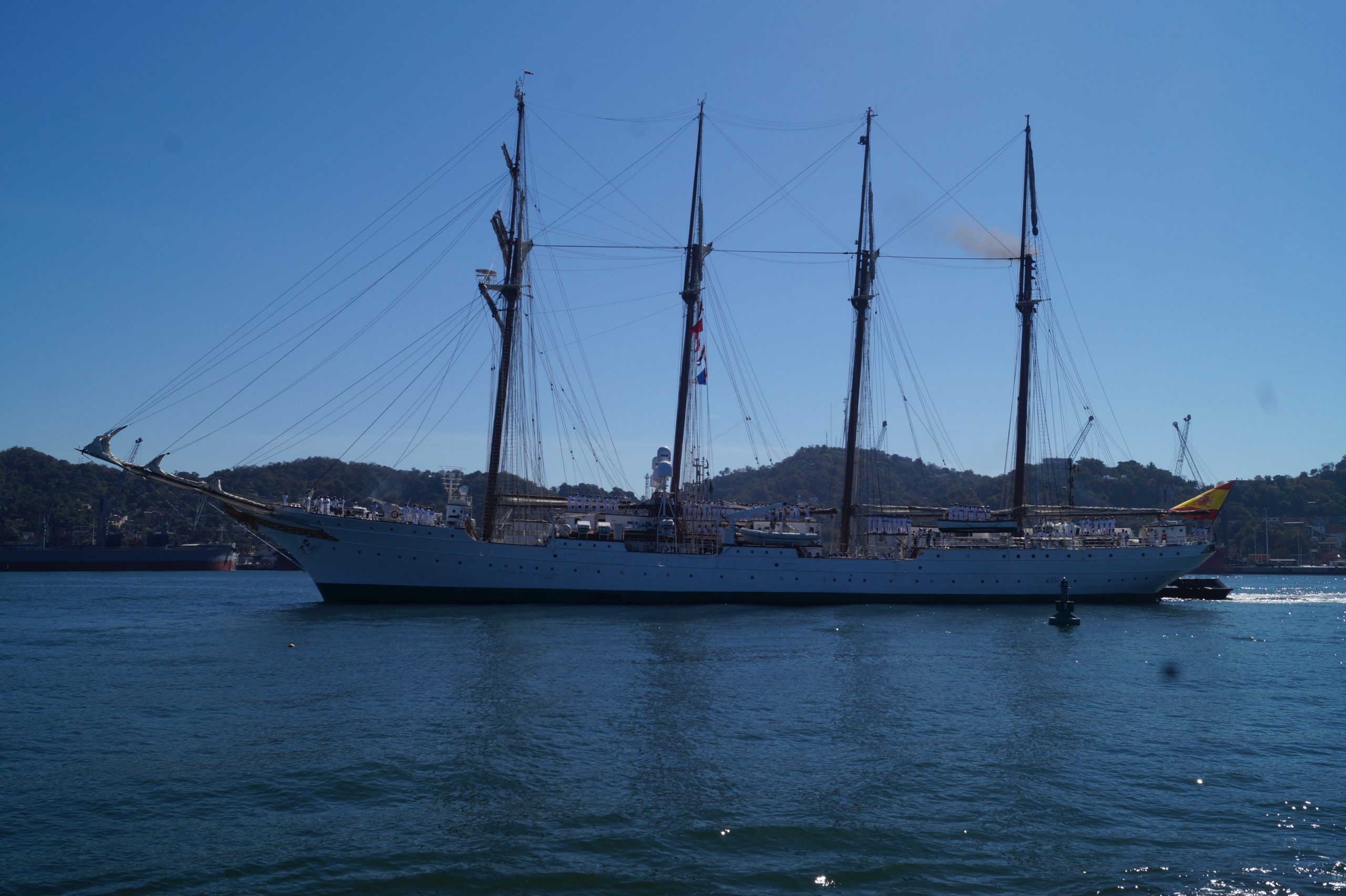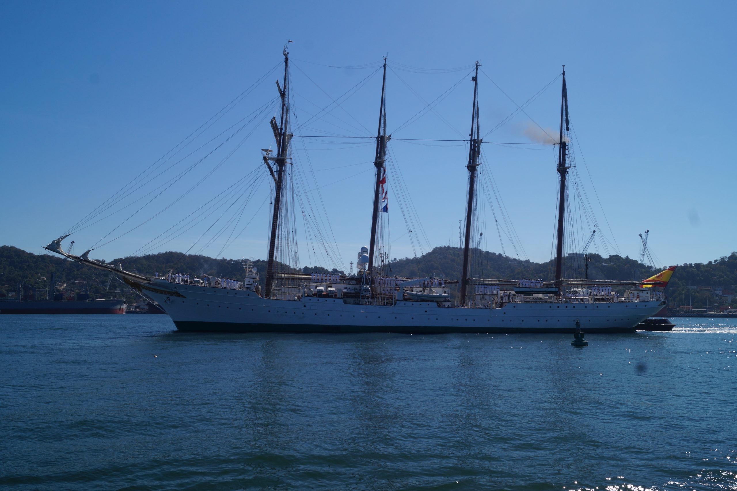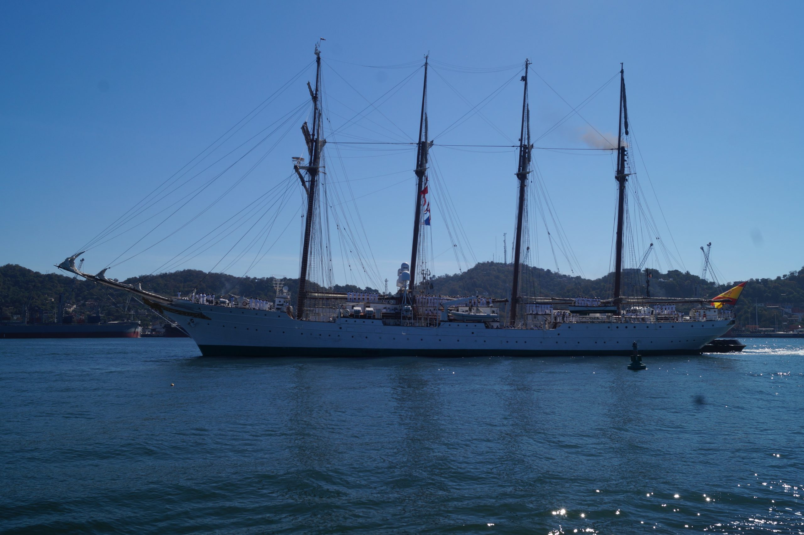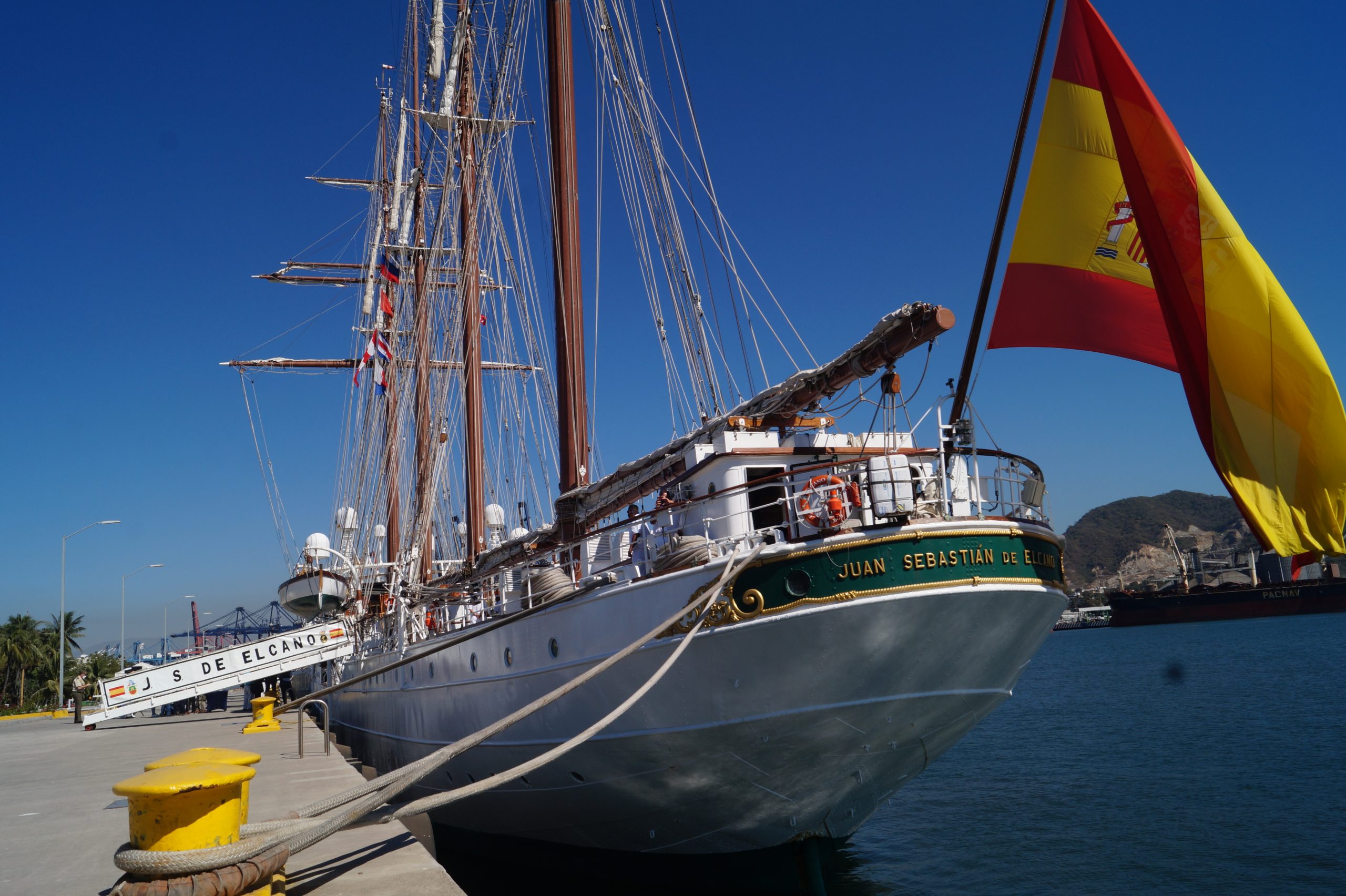 Este jueves 24 de diciembre alrededor de la 1 pm, arribo a Manzanillo el buque escuela español, ” Juan Sebastián de Elcano” (A-71) atracó en las instalaciones de la VI Región Naval en las Brisas, en el cuál venían más de un centenar de tripulantes.