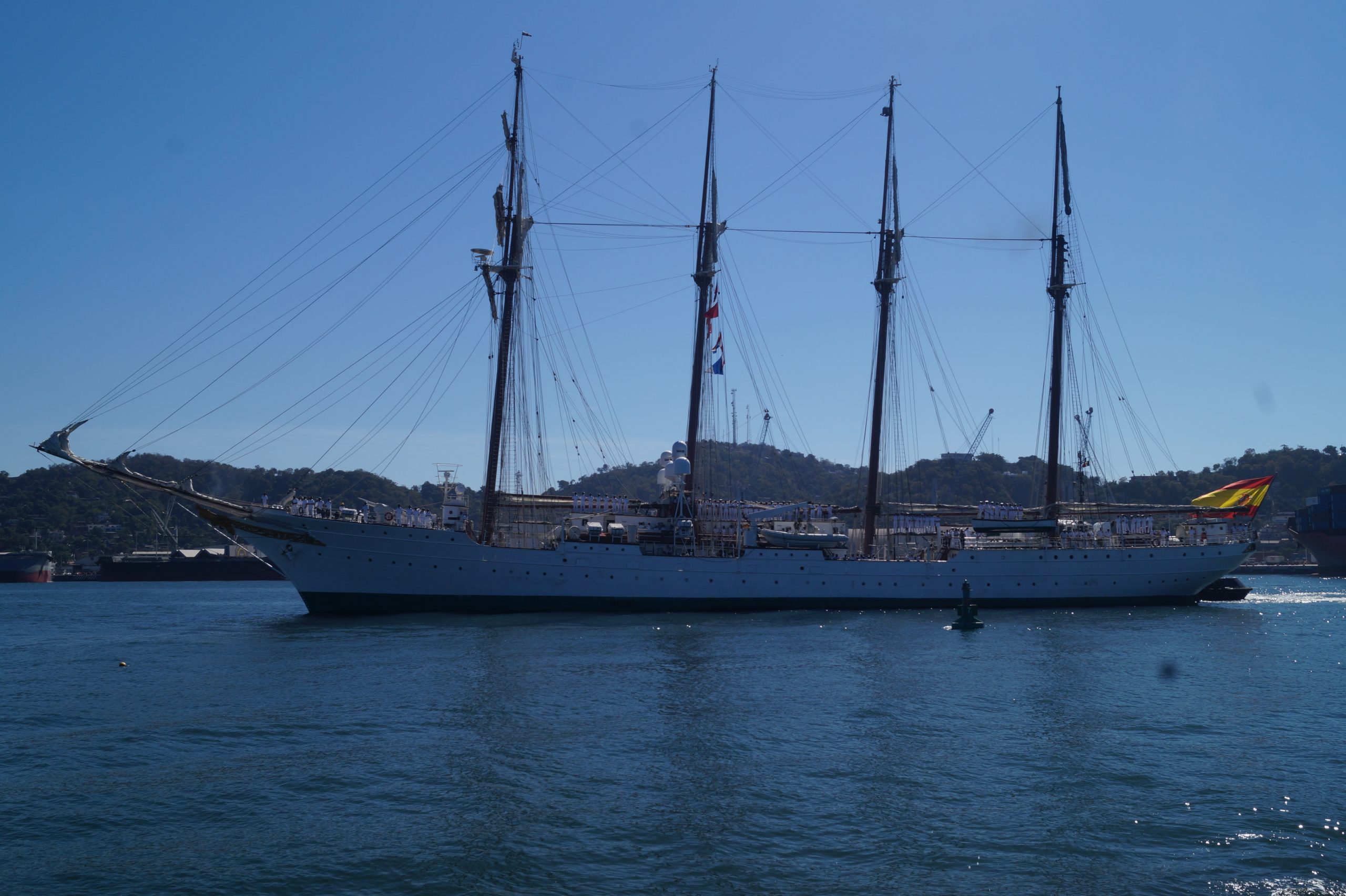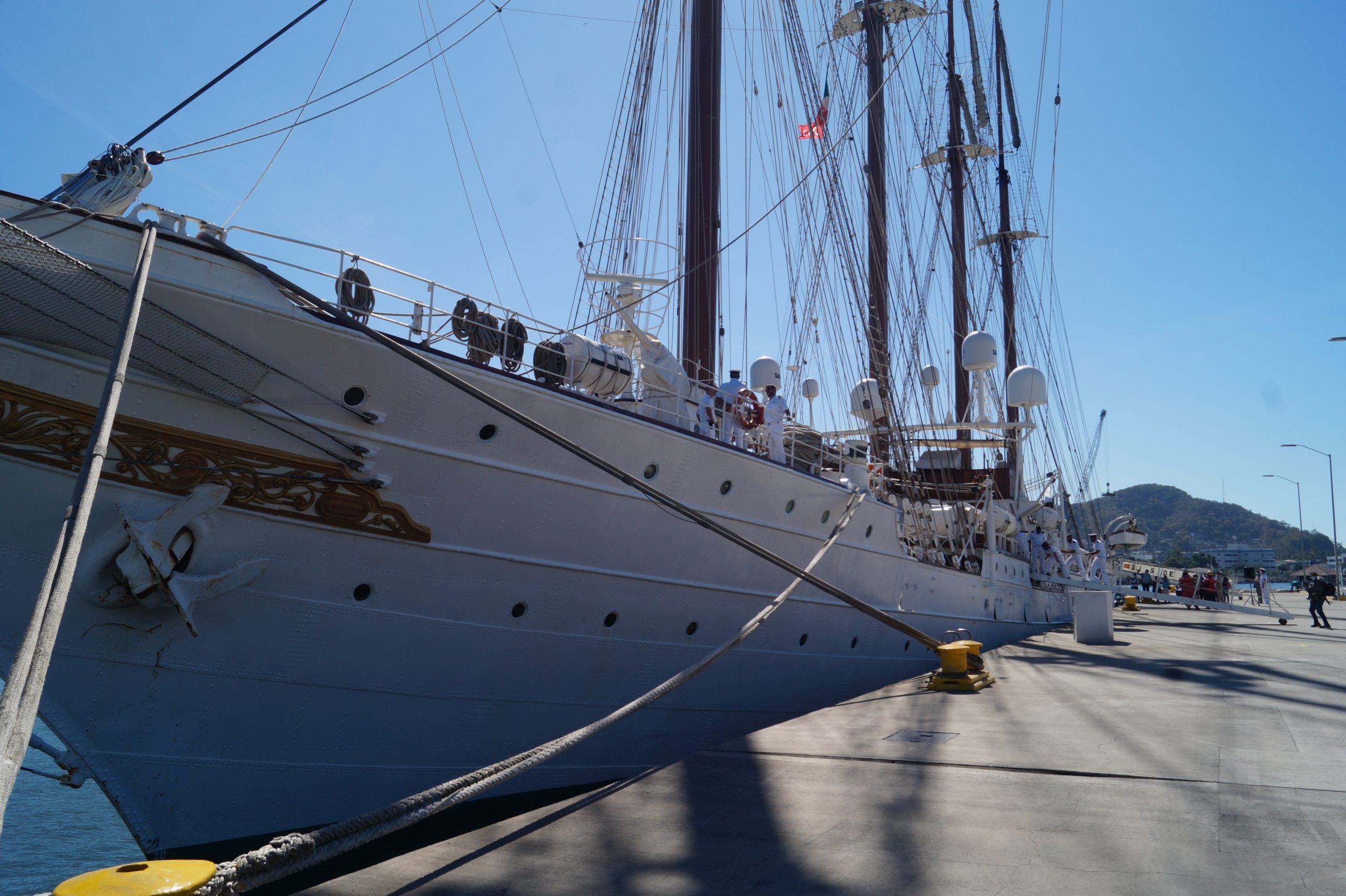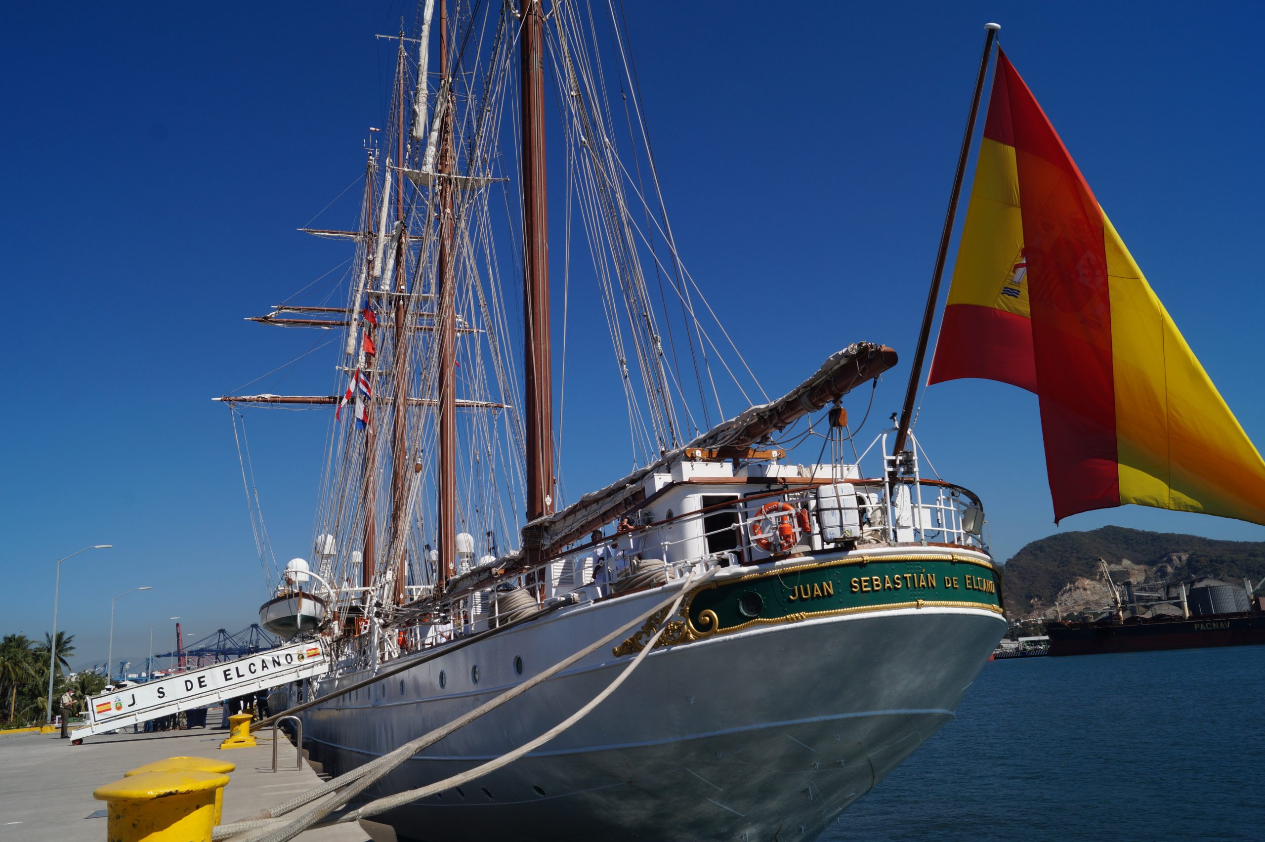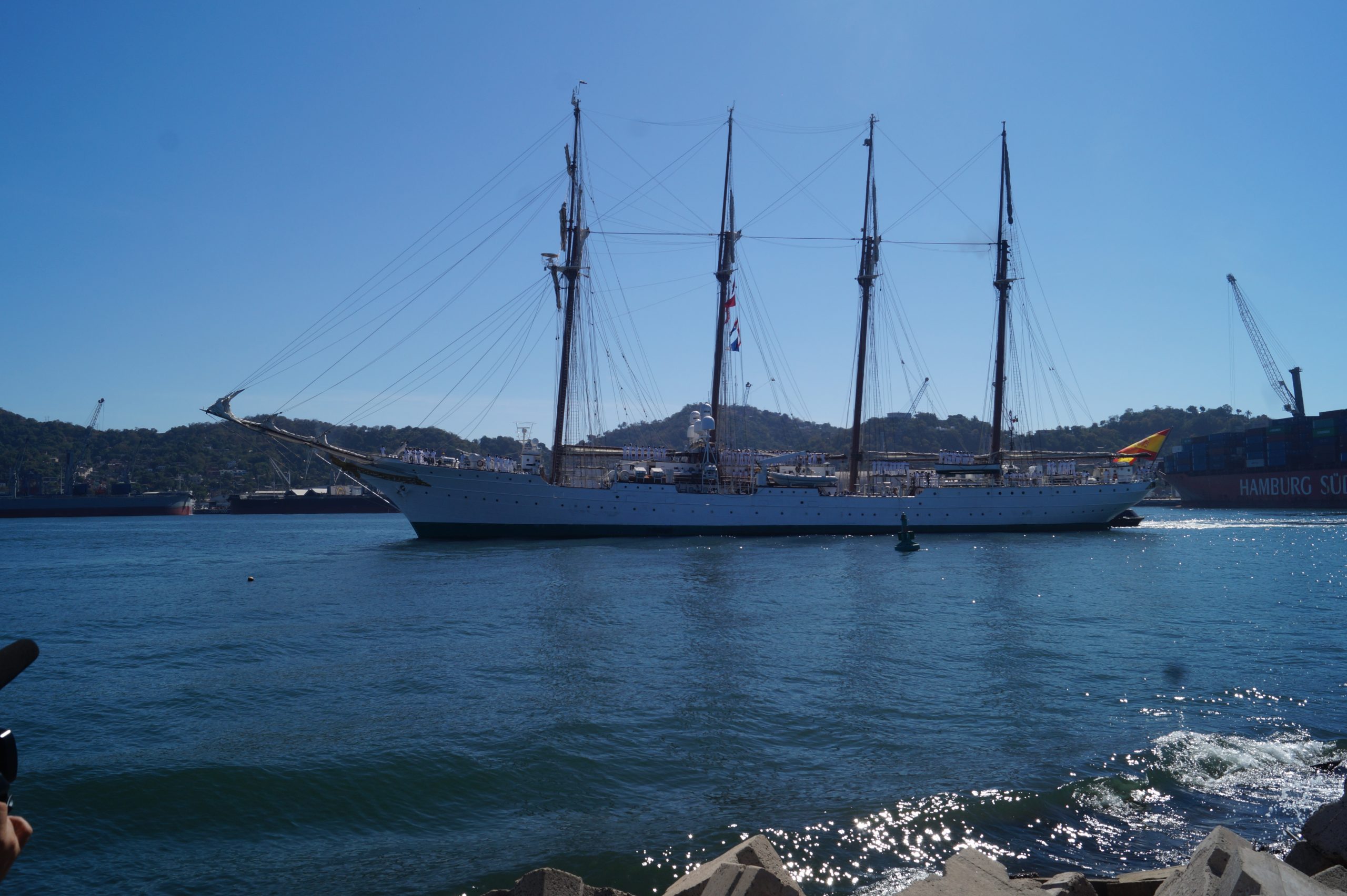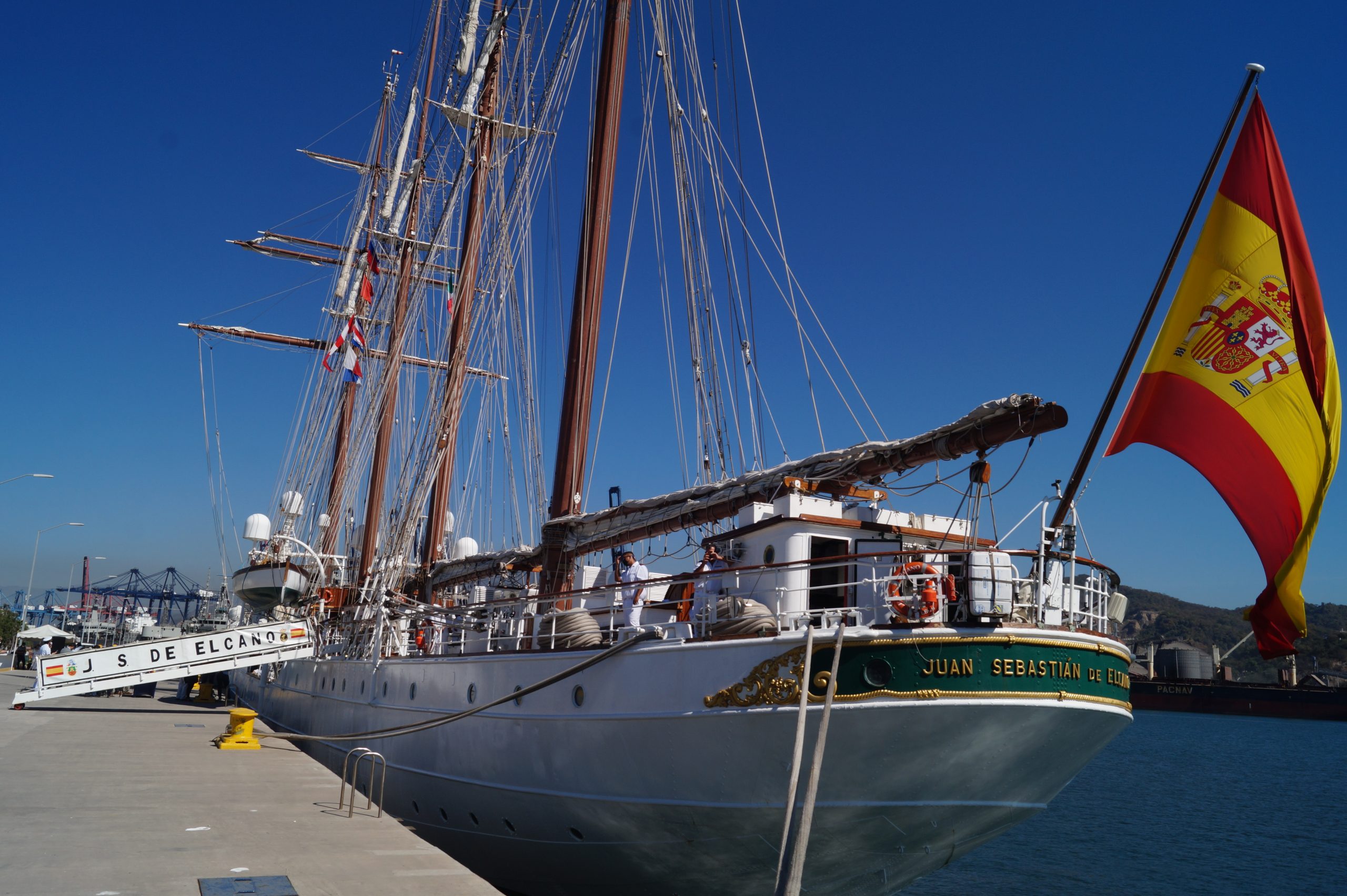 Este jueves 24 de diciembre alrededor de la 1 pm, arribo a Manzanillo el buque escuela español, ” Juan Sebastián de Elcano” (A-71) atracó en las instalaciones de la VI Región Naval en las Brisas, en el cuál venían más de un centenar de tripulantes.