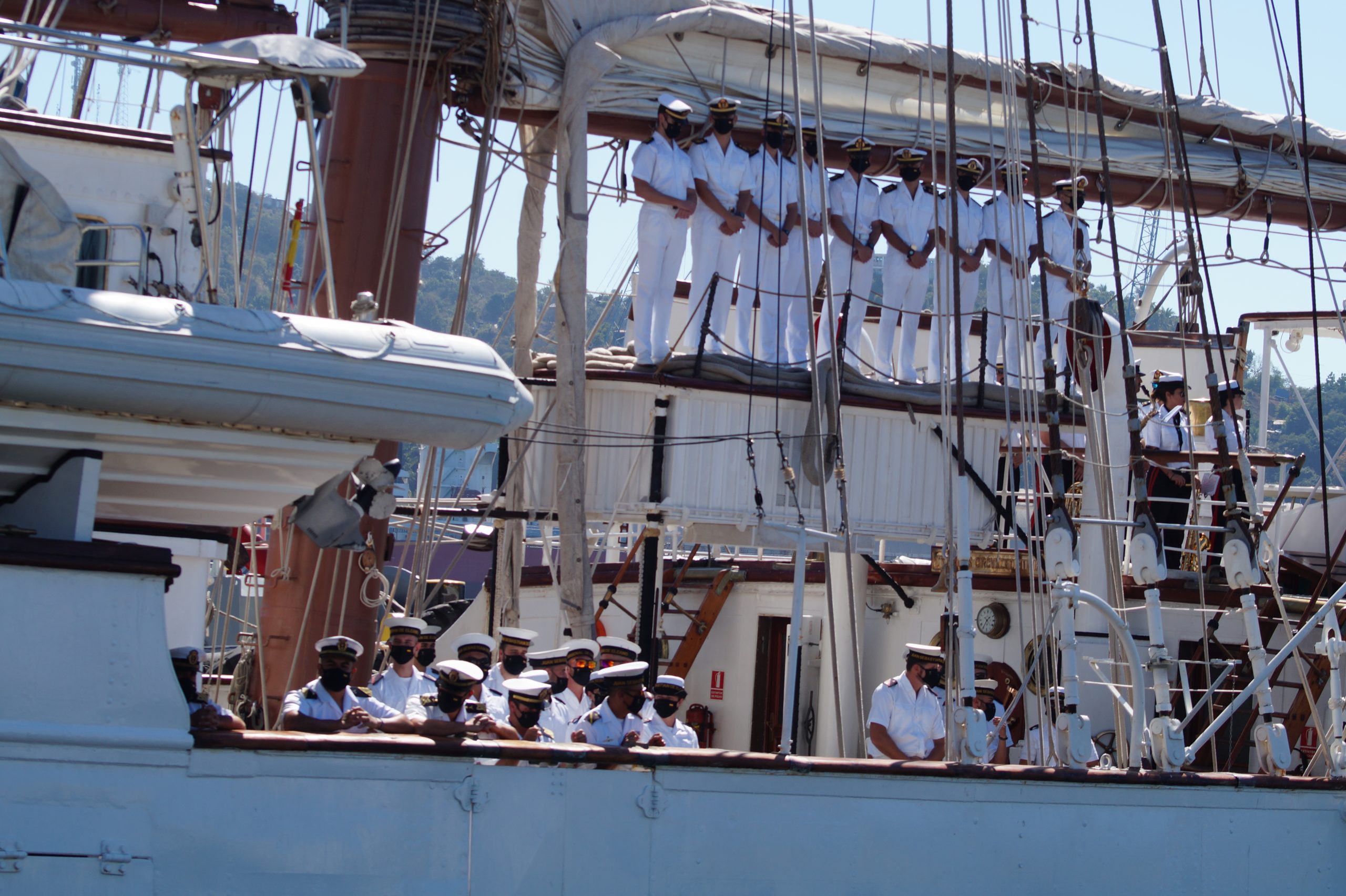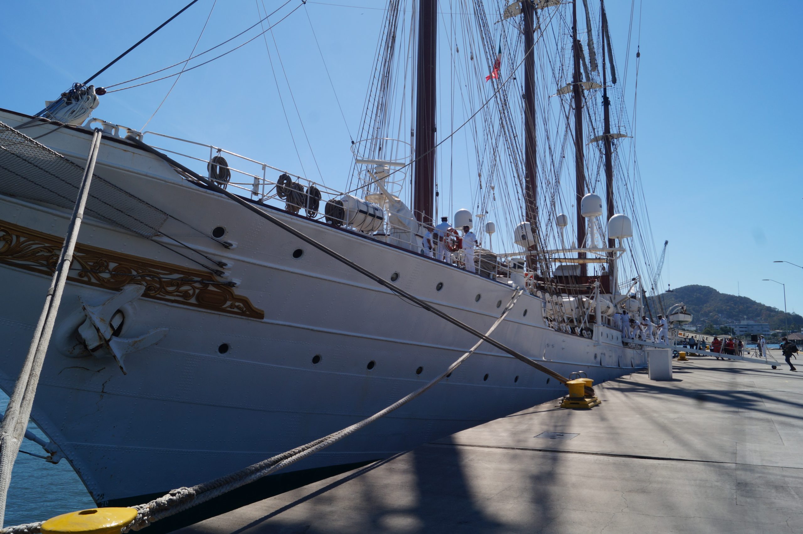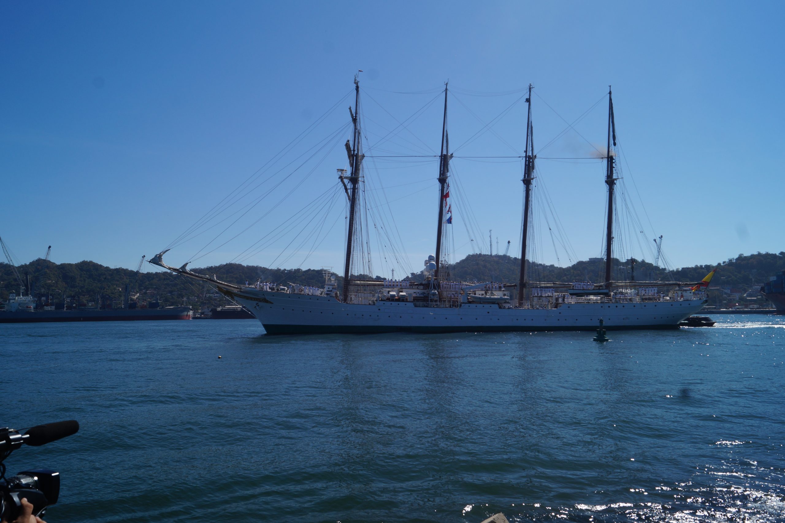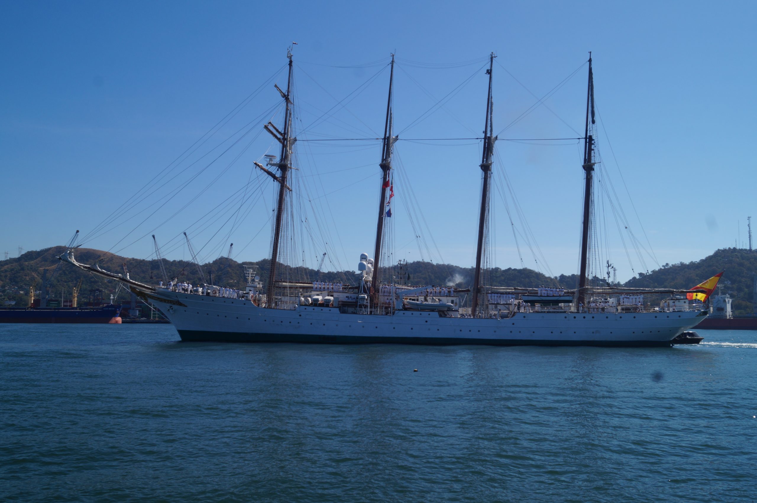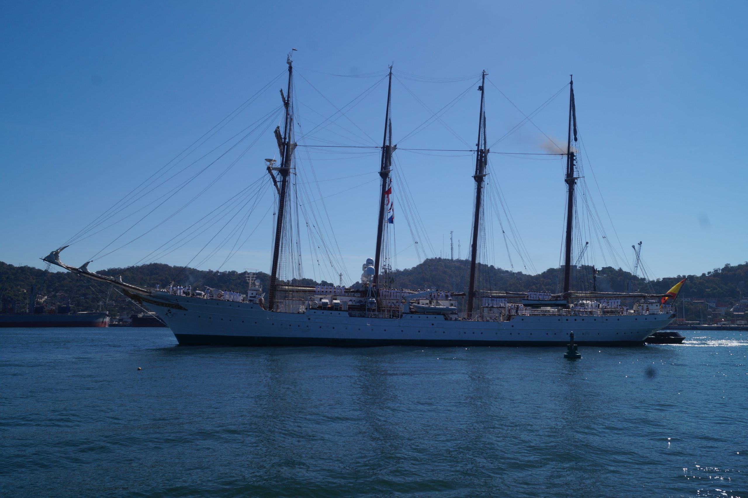 Este jueves 24 de diciembre alrededor de la 1 pm, arribo a Manzanillo el buque escuela español, ” Juan Sebastián de Elcano” (A-71) atracó en las instalaciones de la VI Región Naval en las Brisas, en el cuál venían más de un centenar de tripulantes.