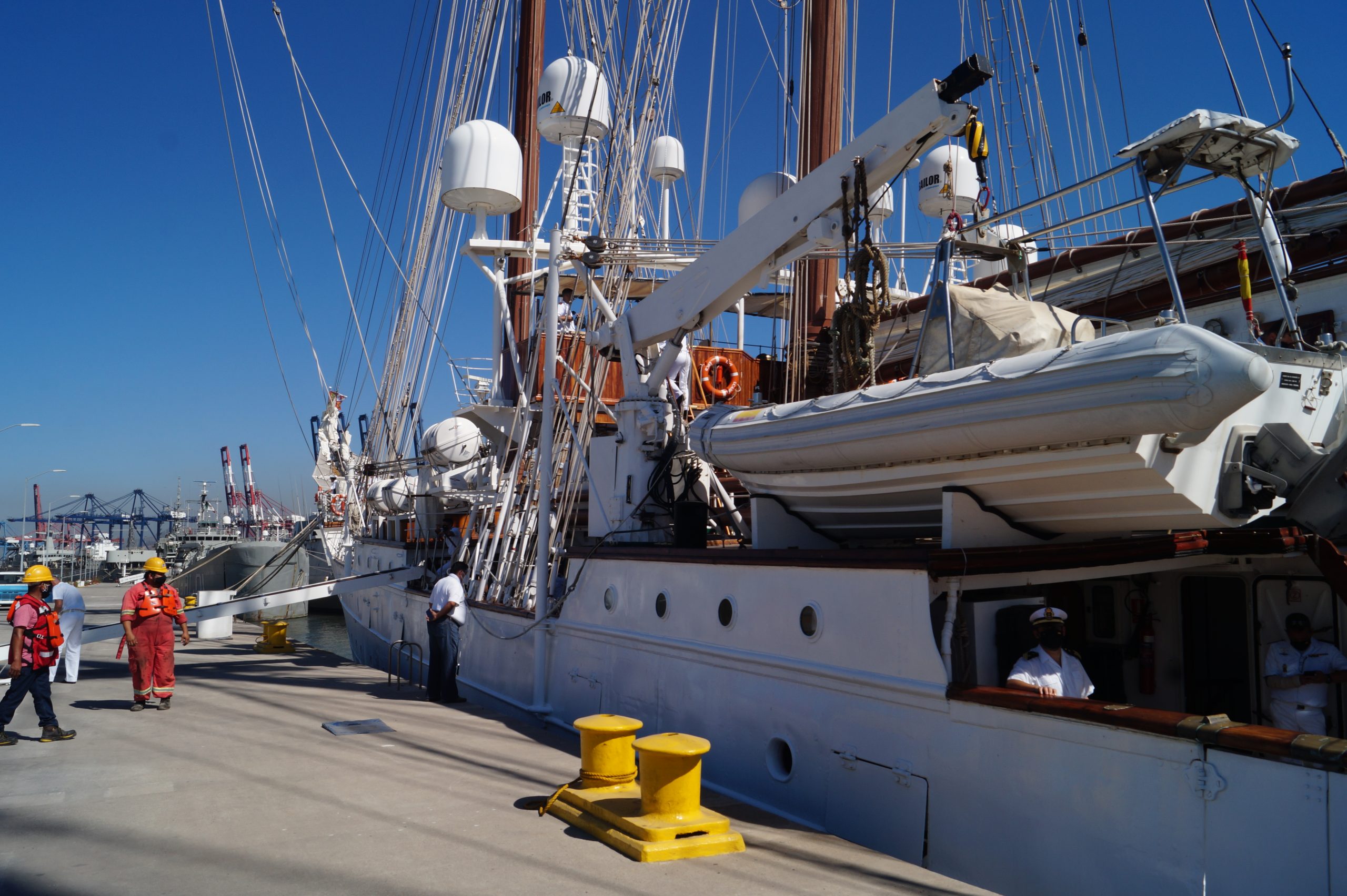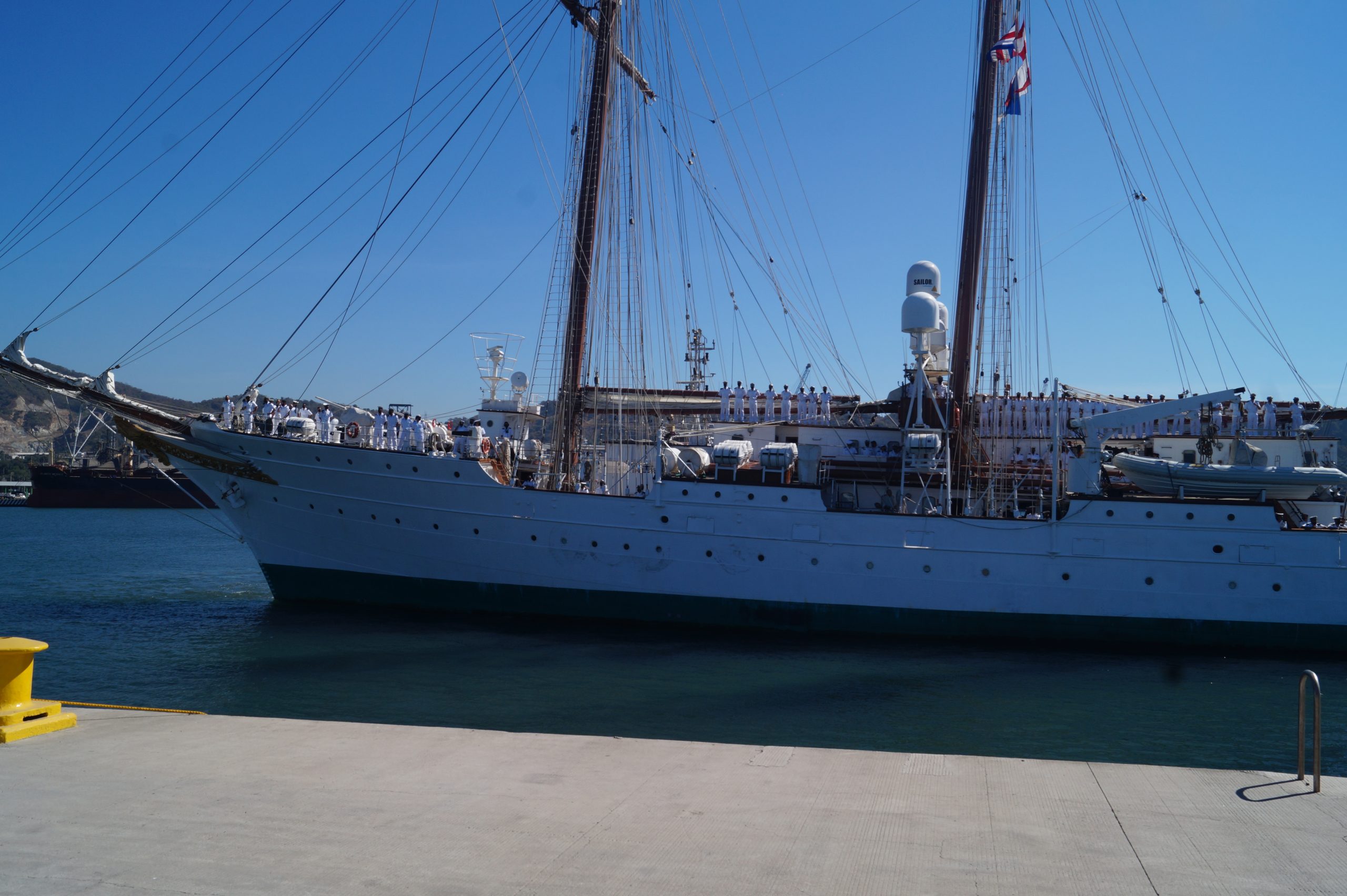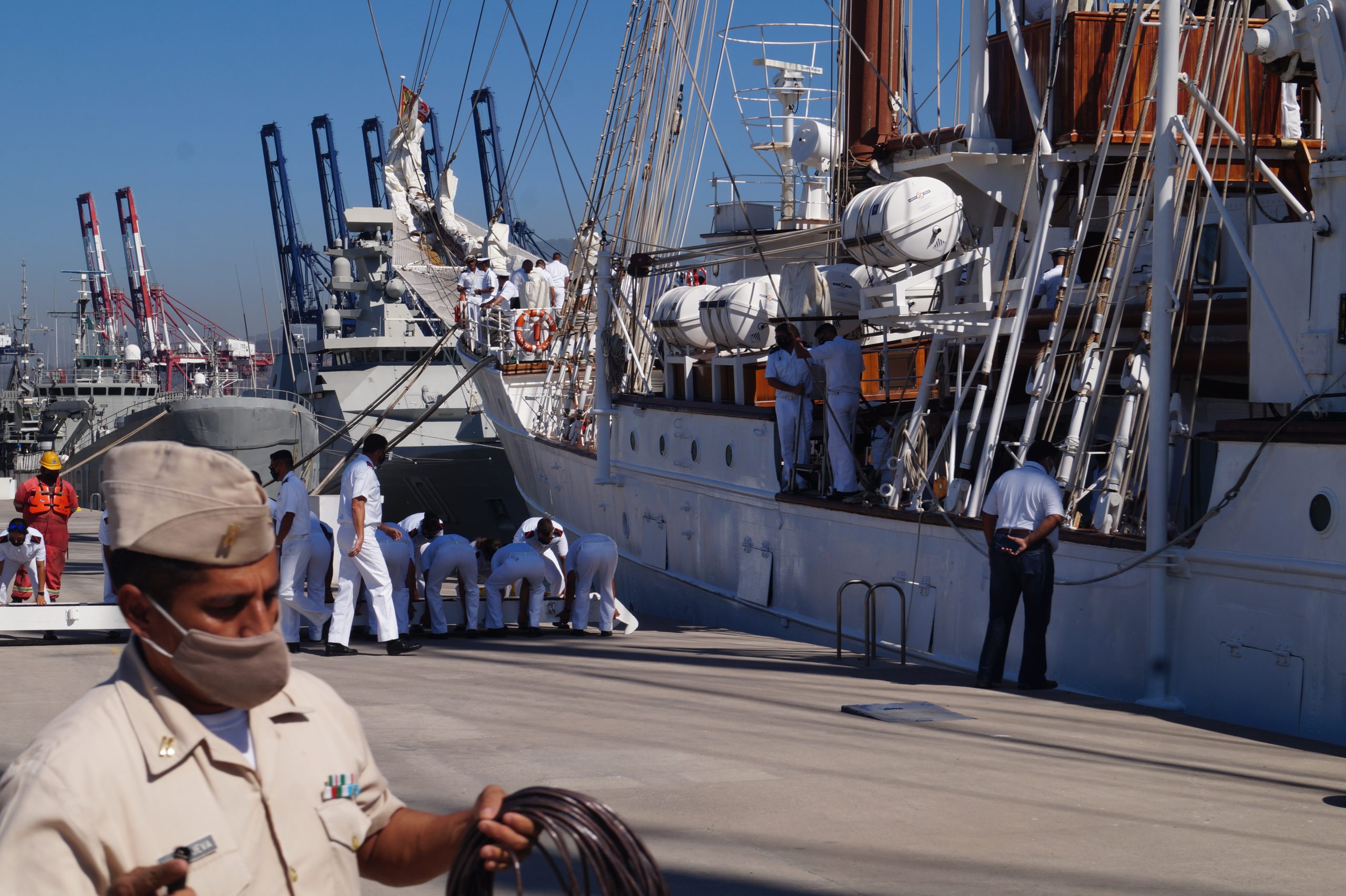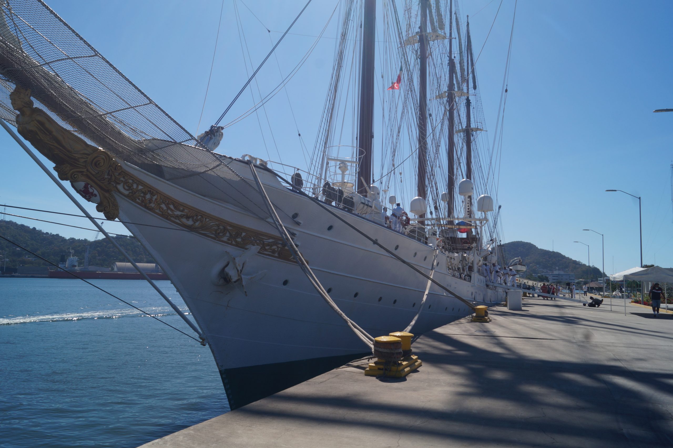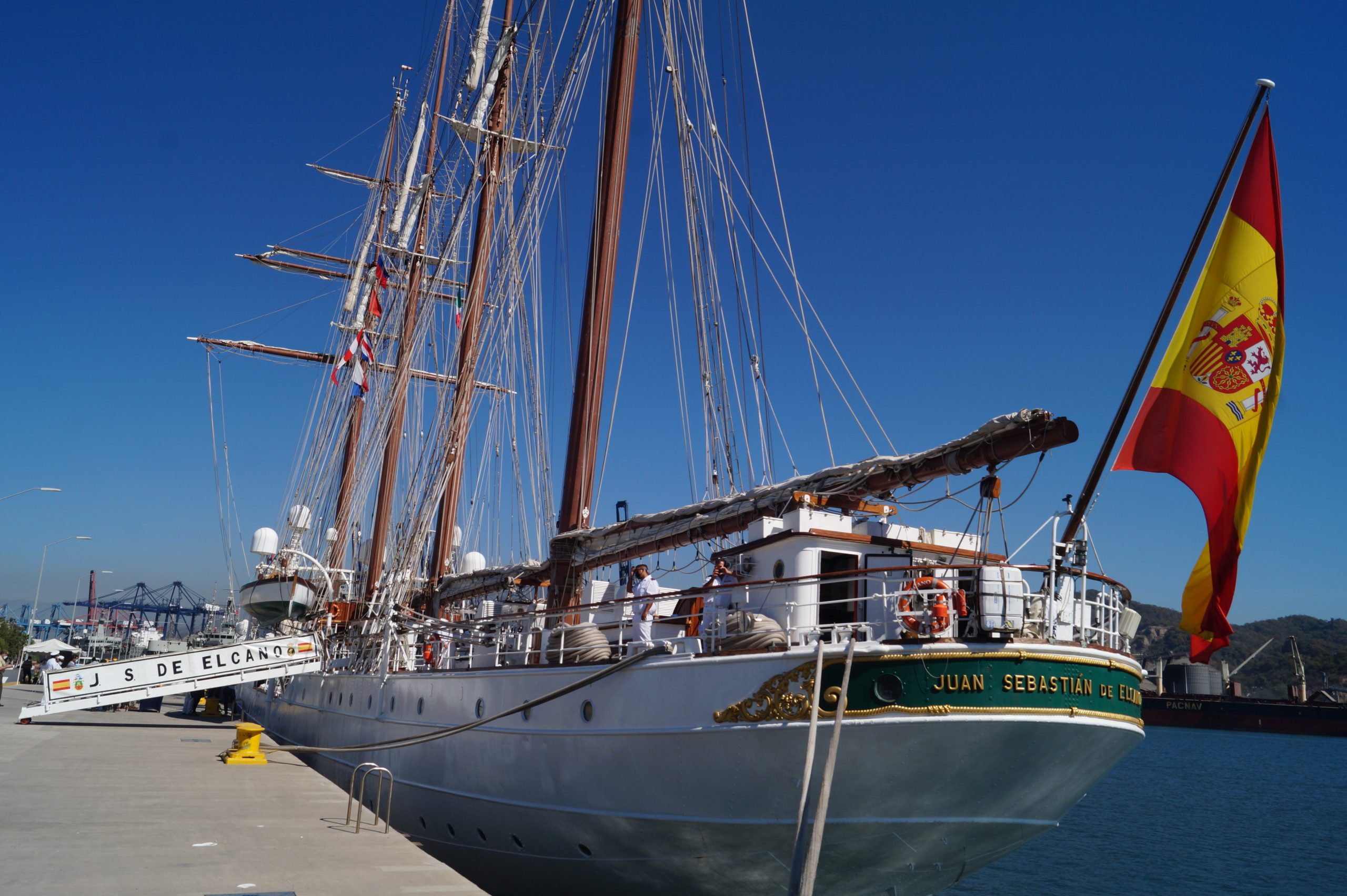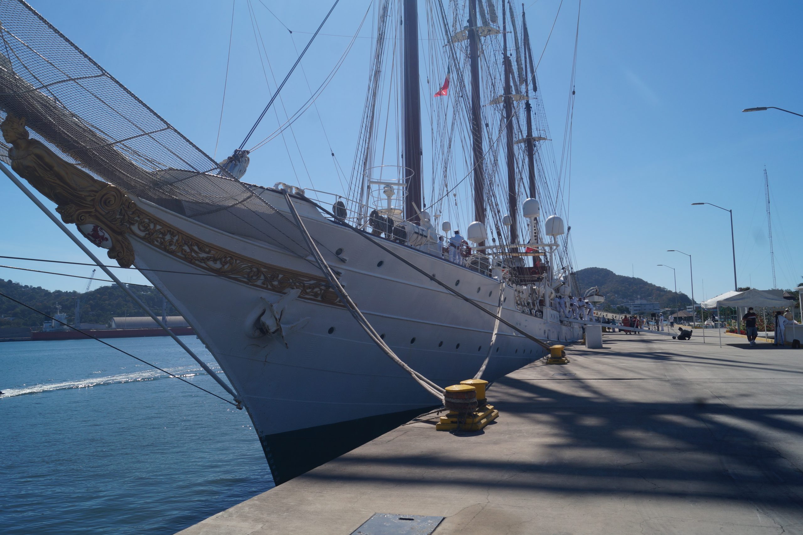 Este jueves 24 de diciembre alrededor de la 1 pm, arribo a Manzanillo el buque escuela español, ” Juan Sebastián de Elcano” (A-71) atracó en las instalaciones de la VI Región Naval en las Brisas, en el cuál venían más de un centenar de tripulantes.