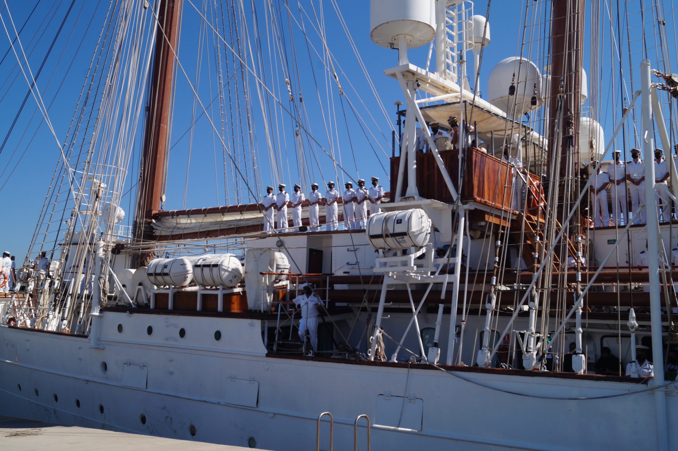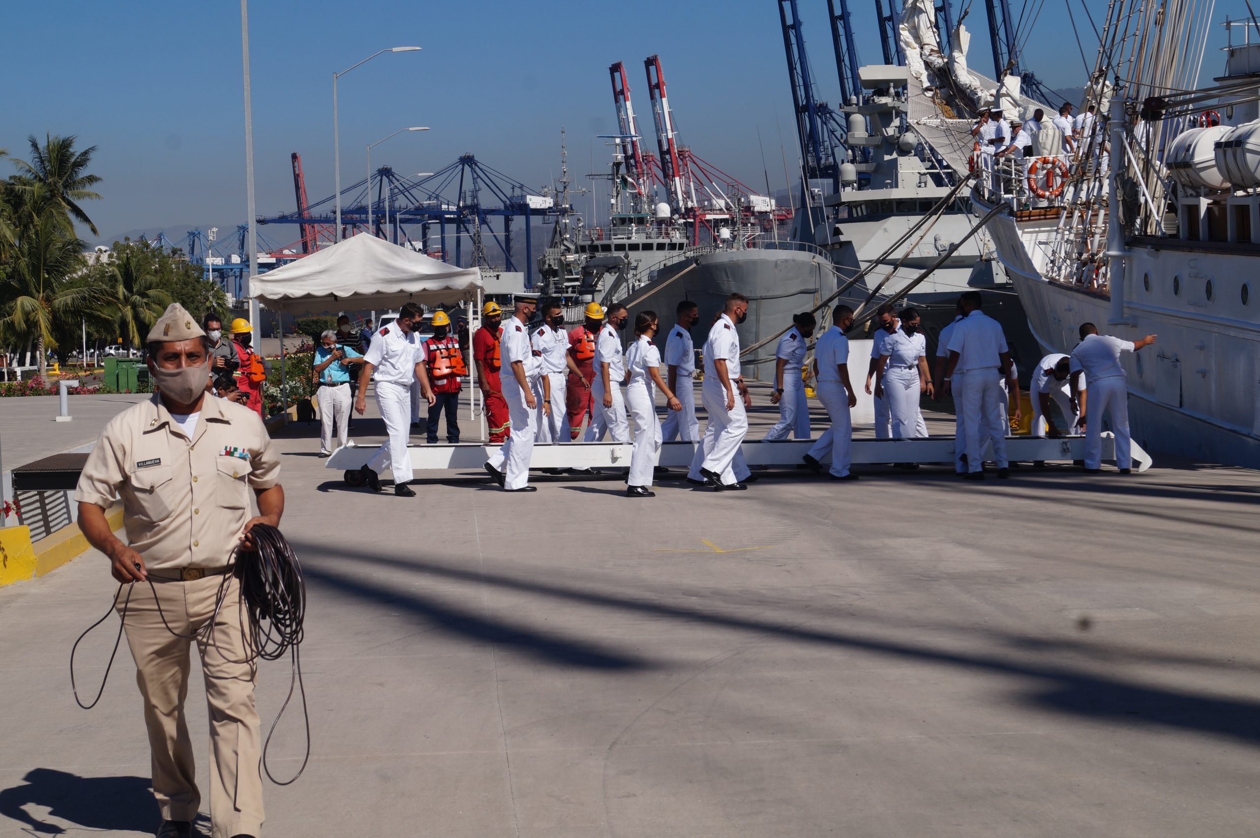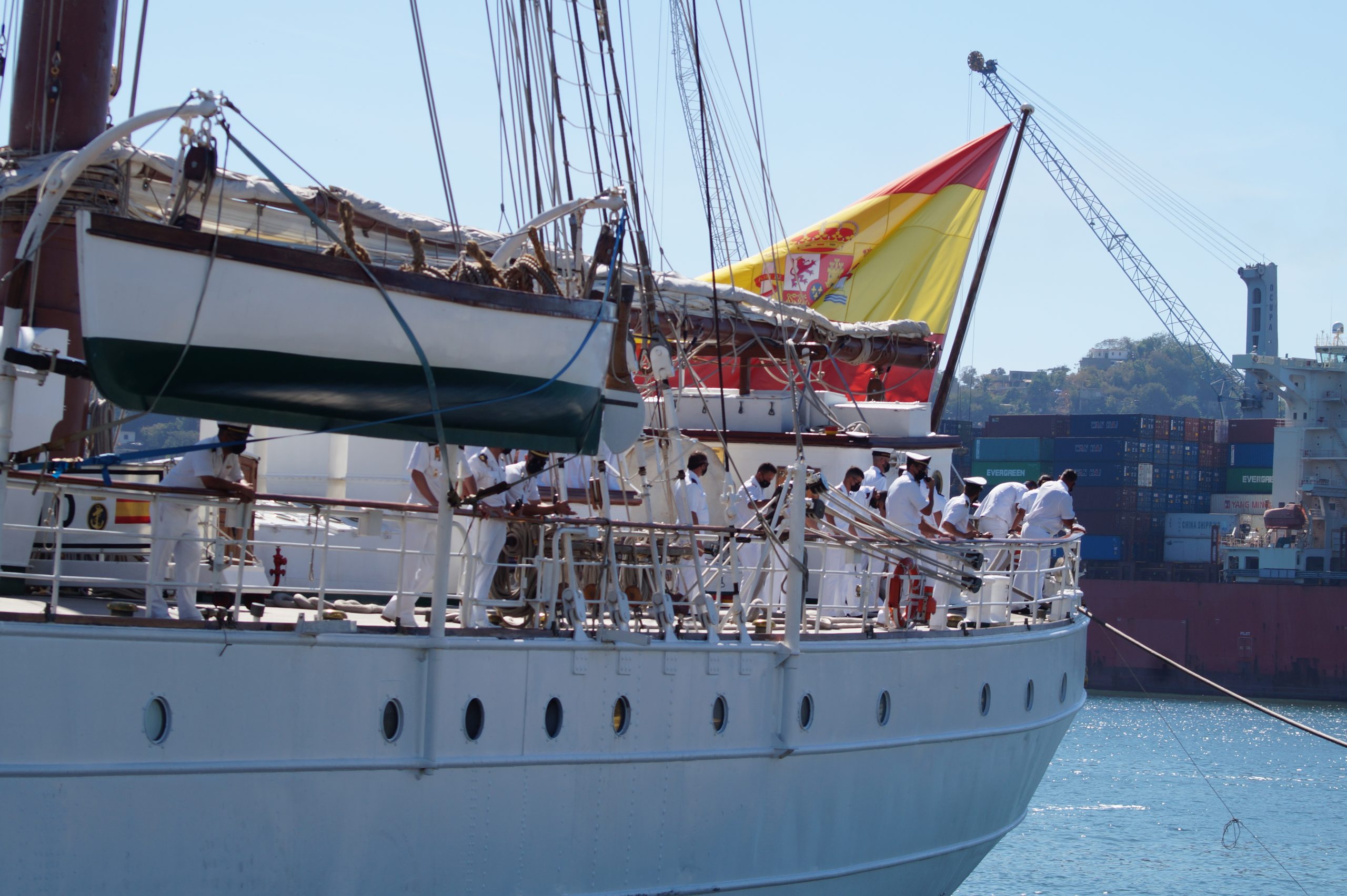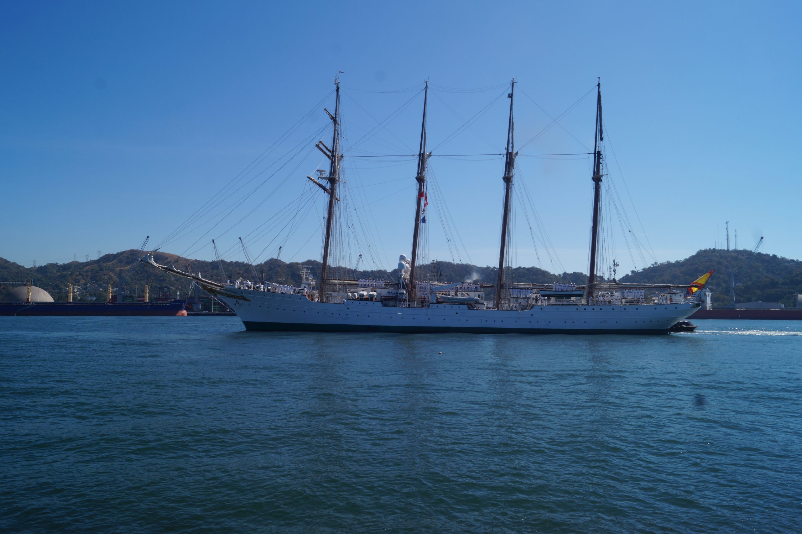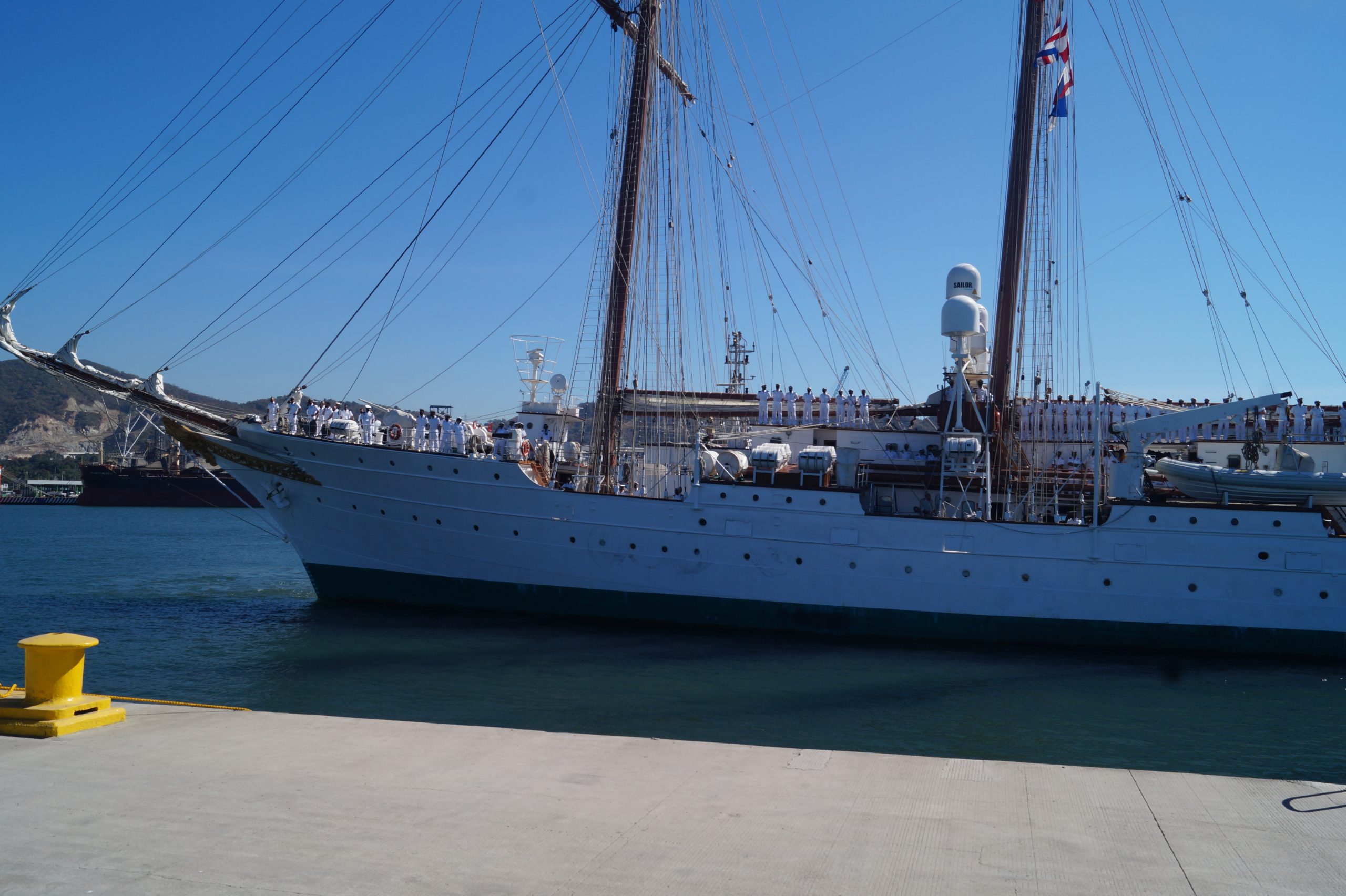 Este jueves 24 de diciembre alrededor de la 1 pm, arribo a Manzanillo el buque escuela español, ” Juan Sebastián de Elcano” (A-71) atracó en las instalaciones de la VI Región Naval en las Brisas, en el cuál venían más de un centenar de tripulantes.