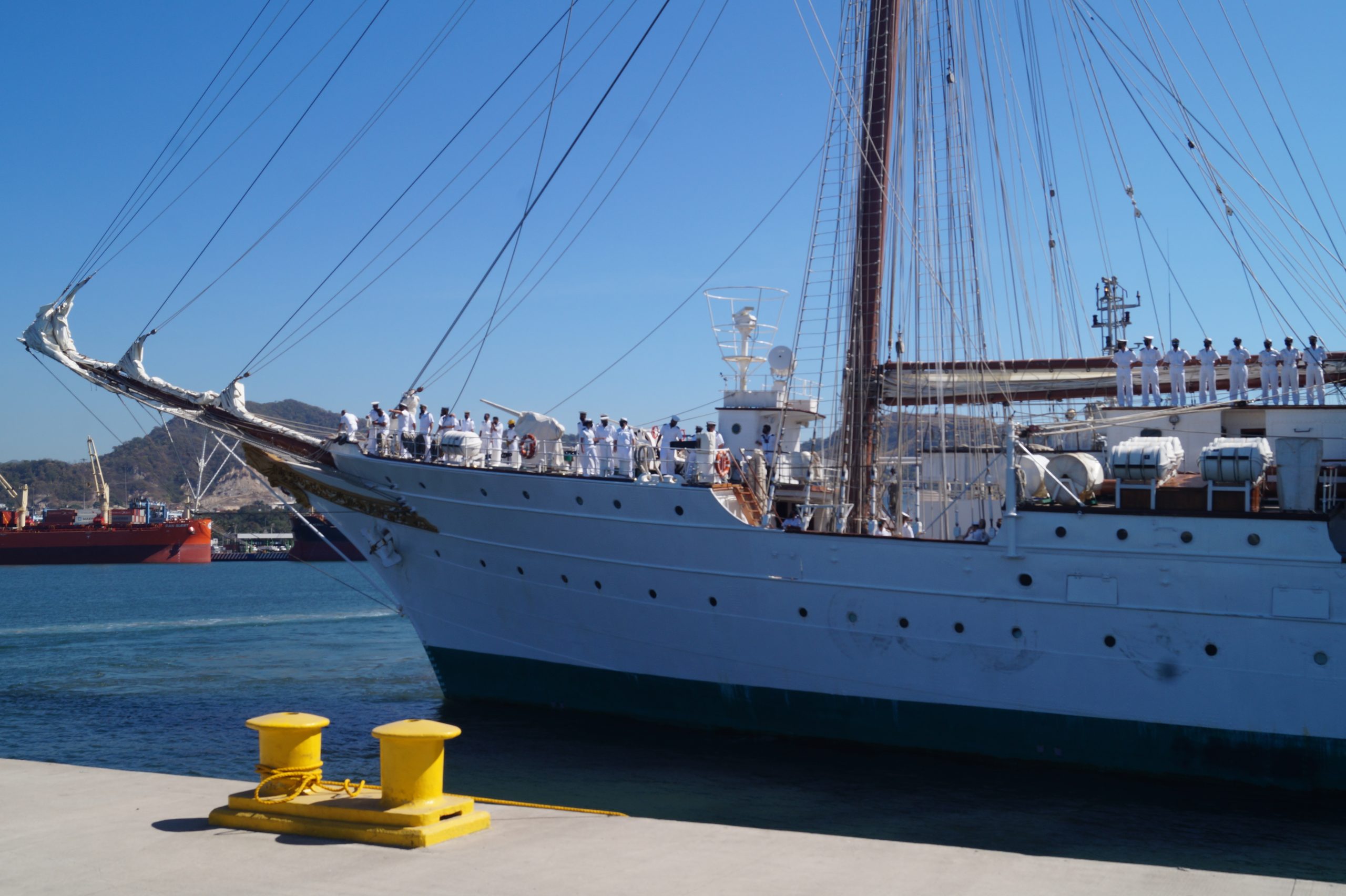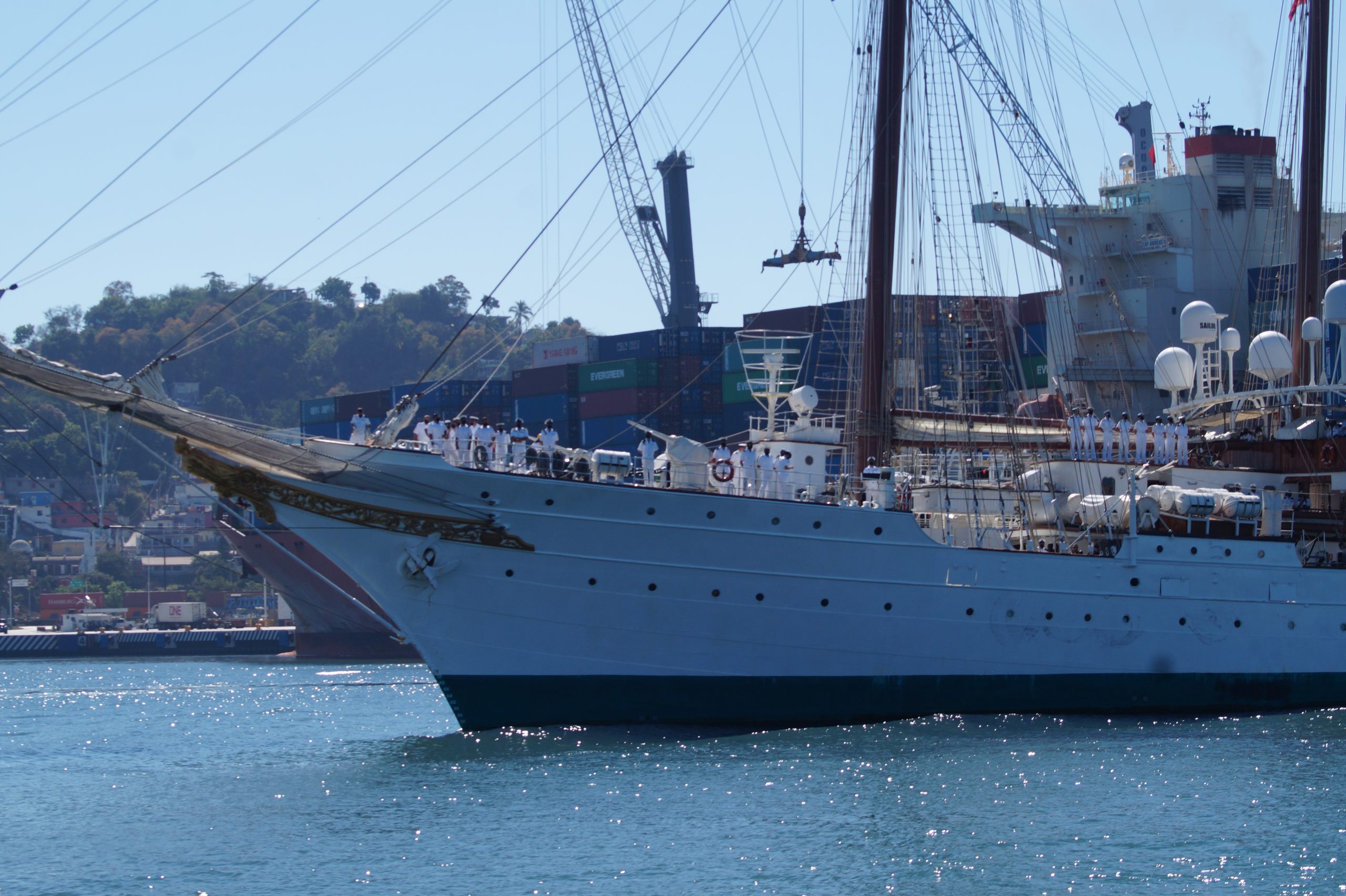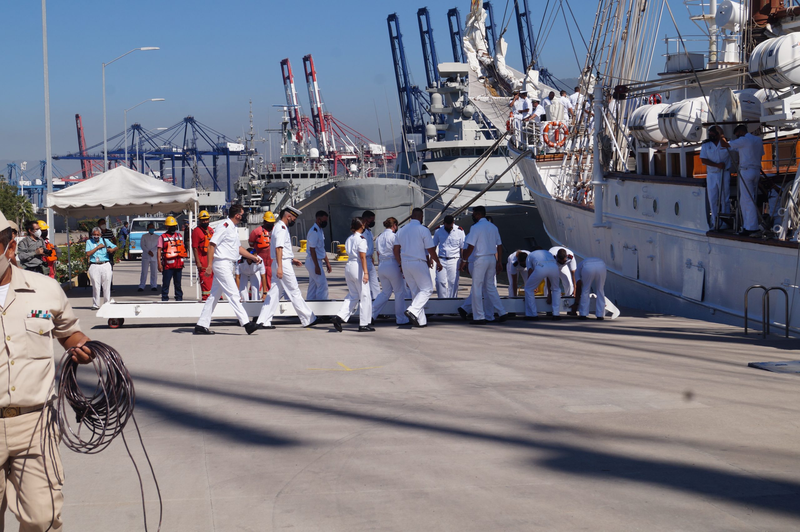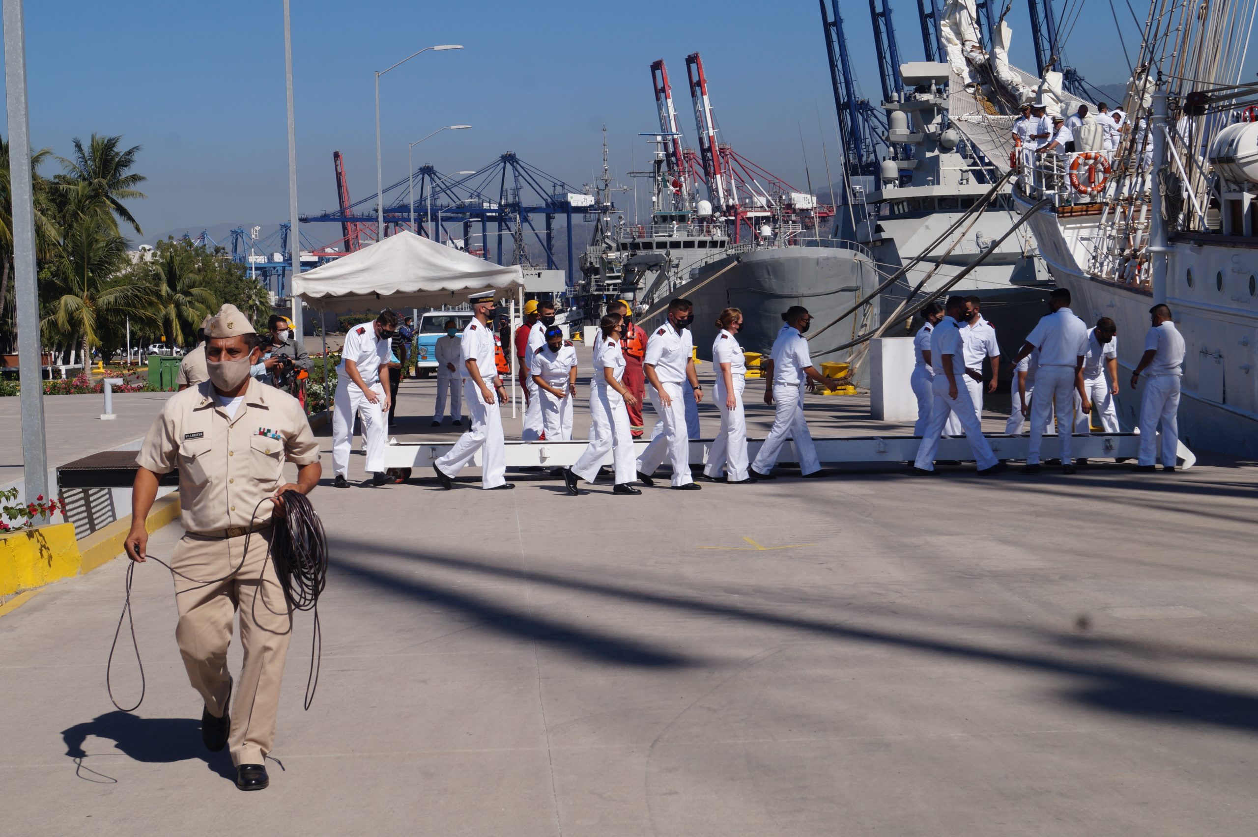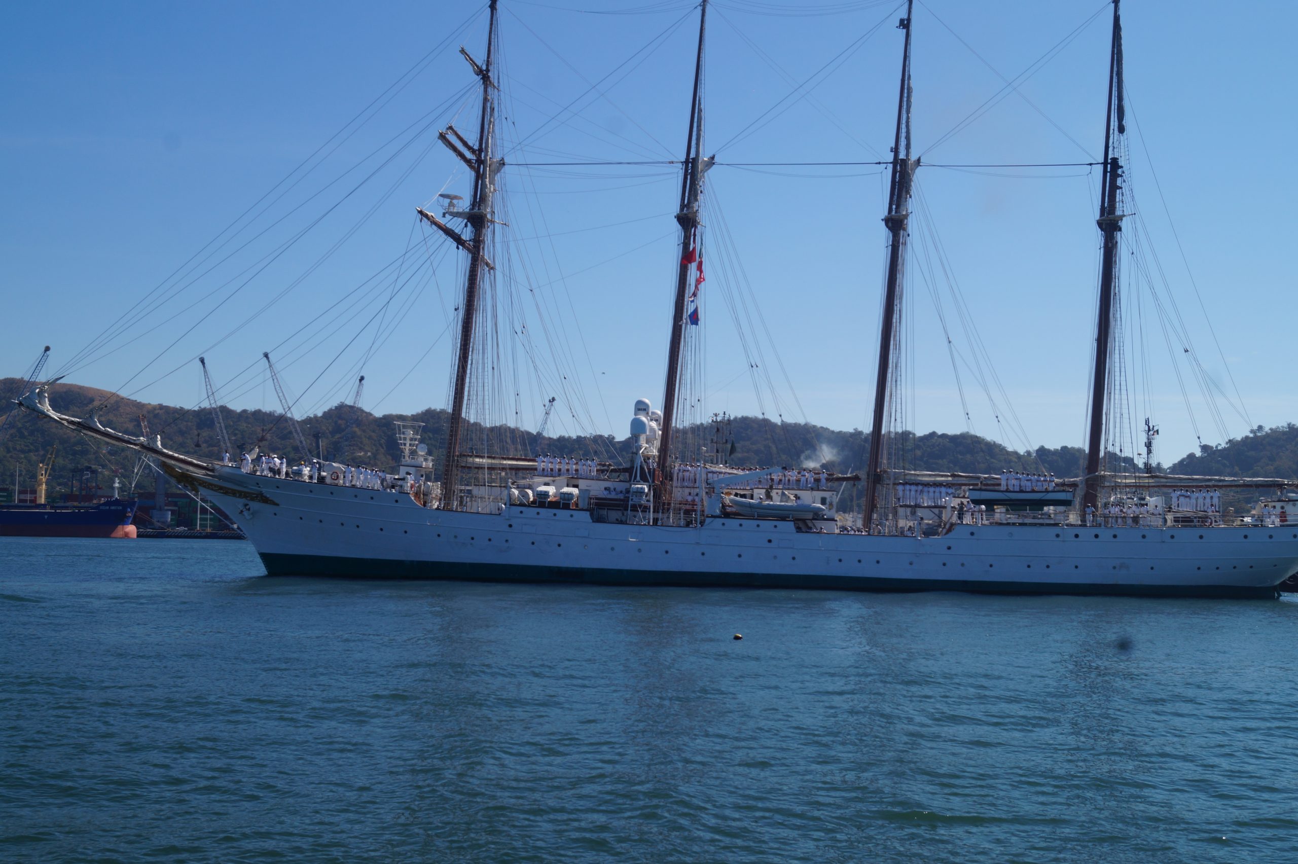 Este jueves 24 de diciembre alrededor de la 1 pm, arribo a Manzanillo el buque escuela español, ” Juan Sebastián de Elcano” (A-71) atracó en las instalaciones de la VI Región Naval en las Brisas, en el cuál venían más de un centenar de tripulantes.