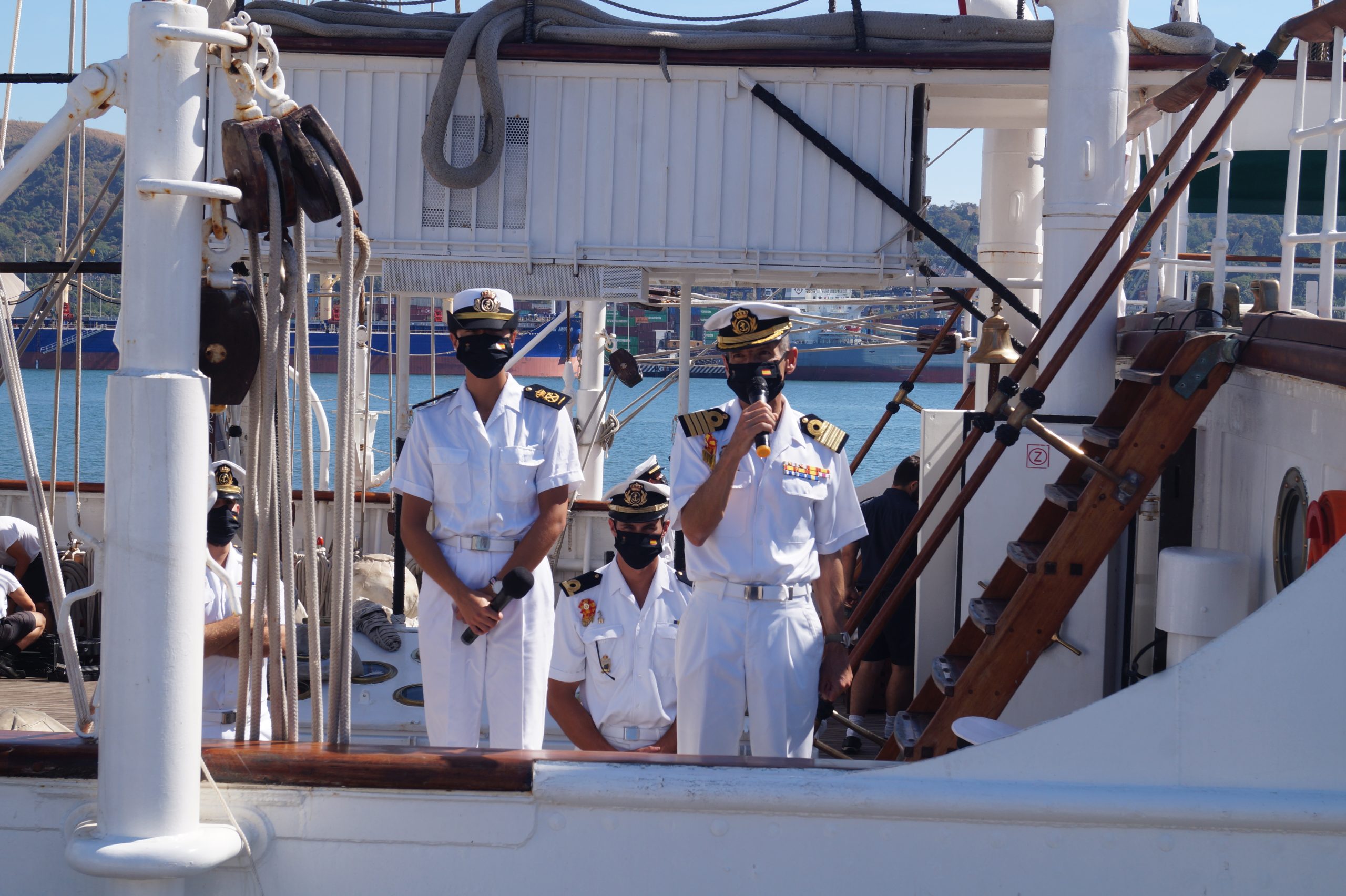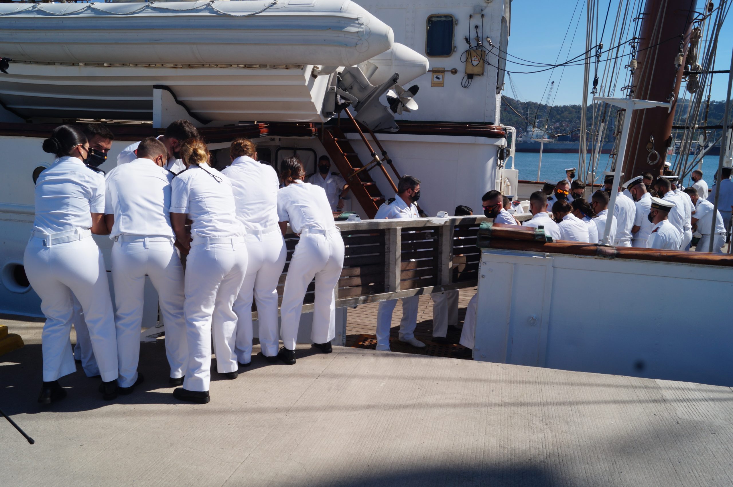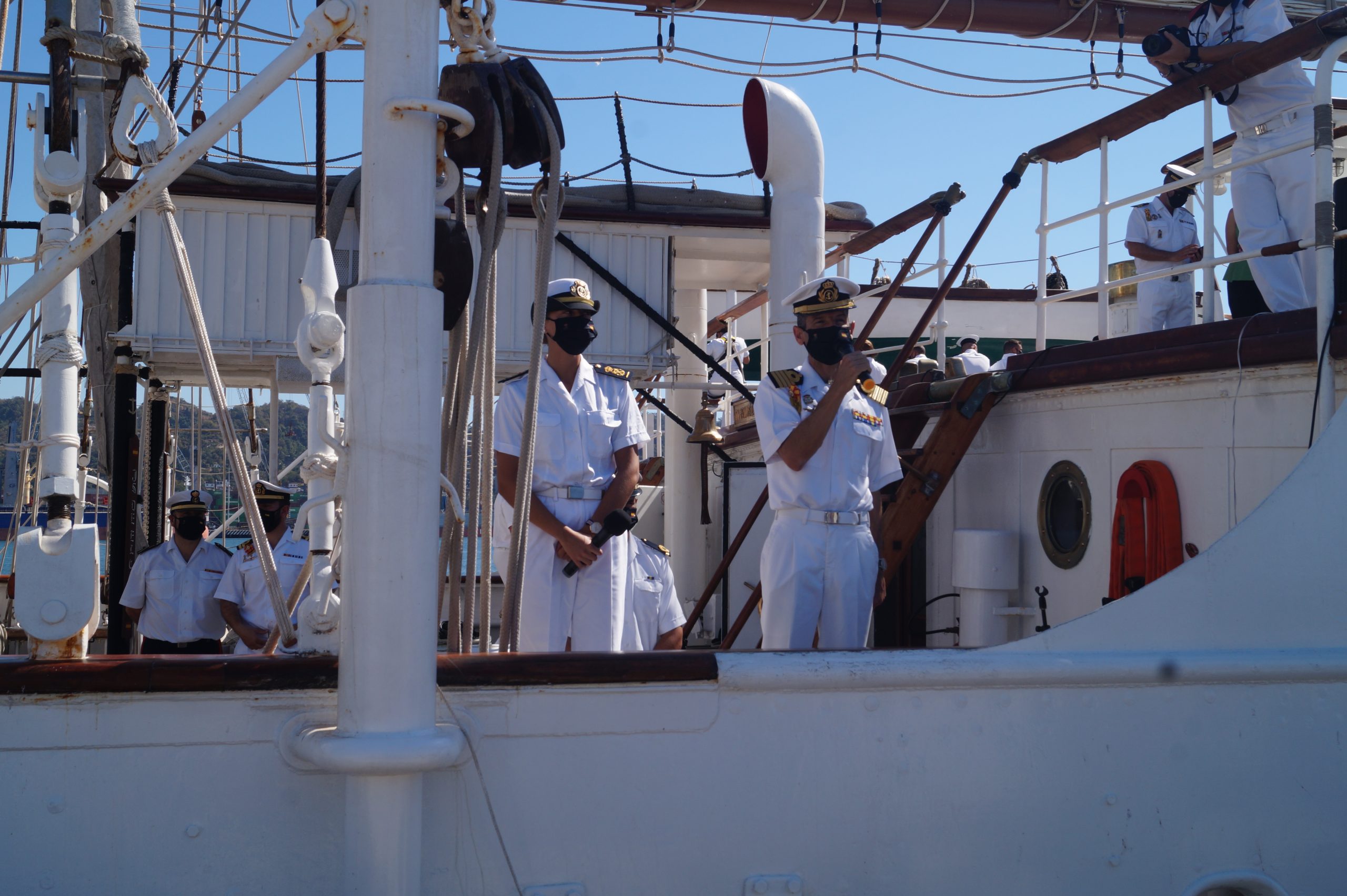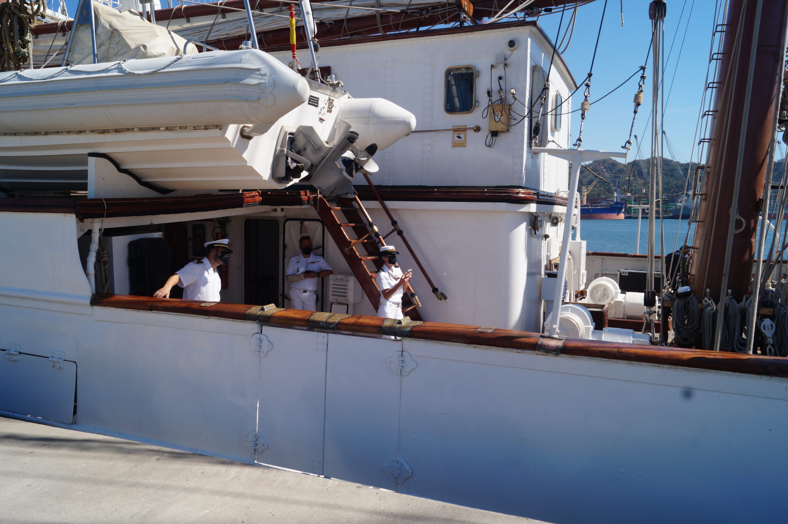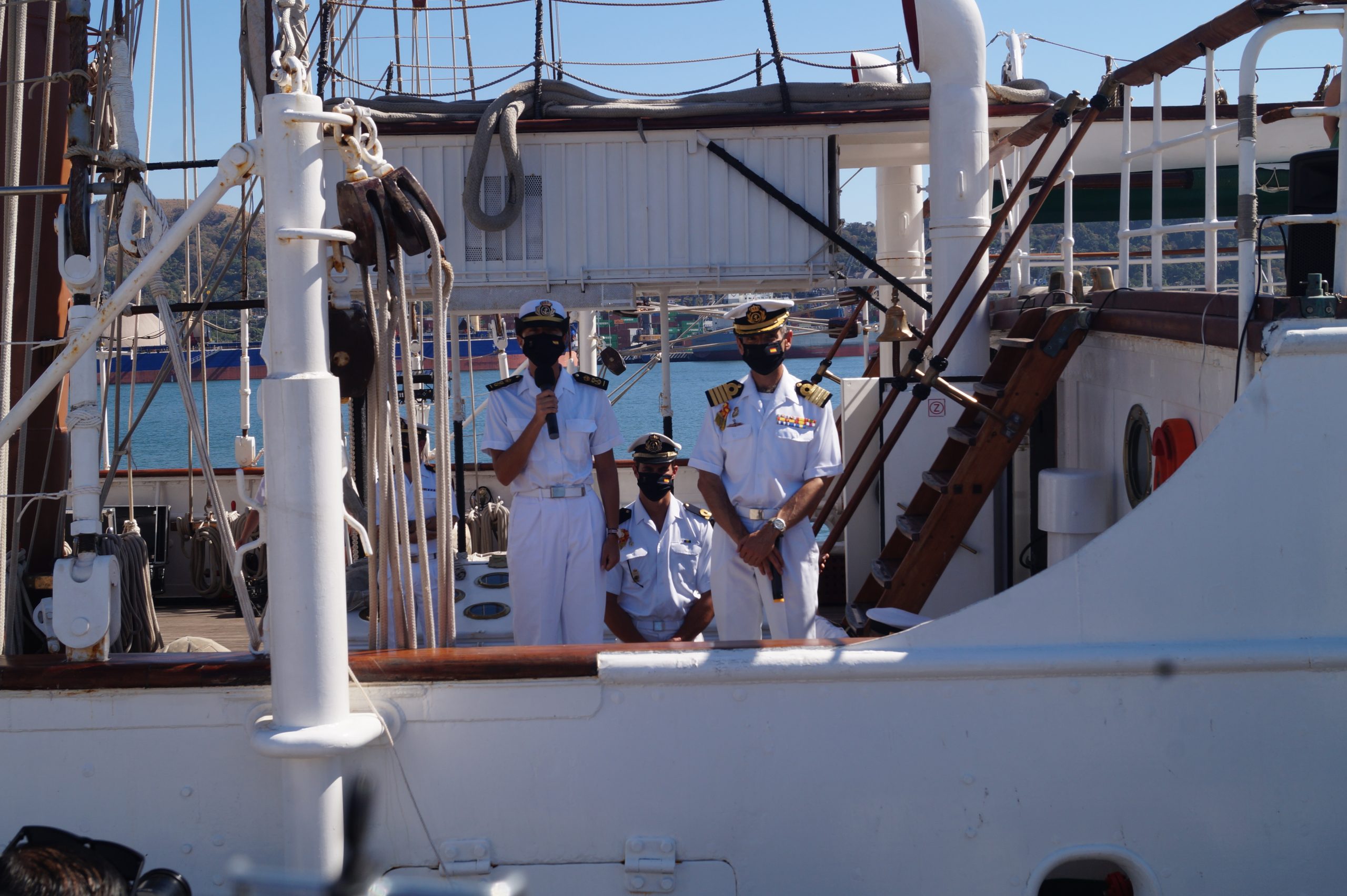 En la recepción del buque estuvieron personal diplomático hispano, así como autoridades militares de la localidad.