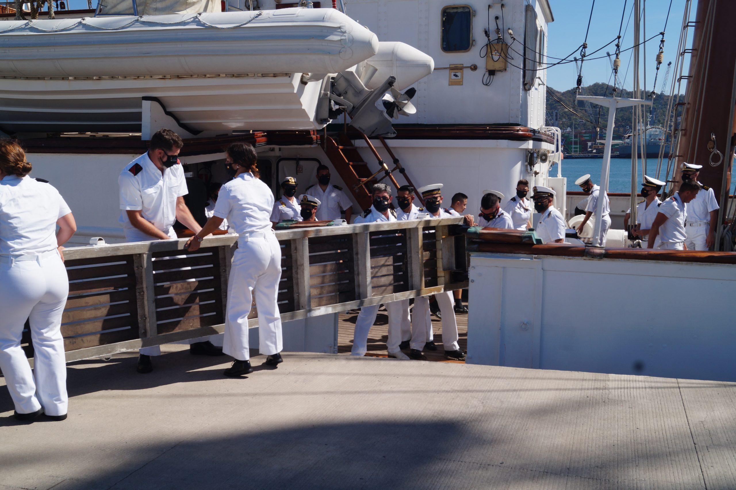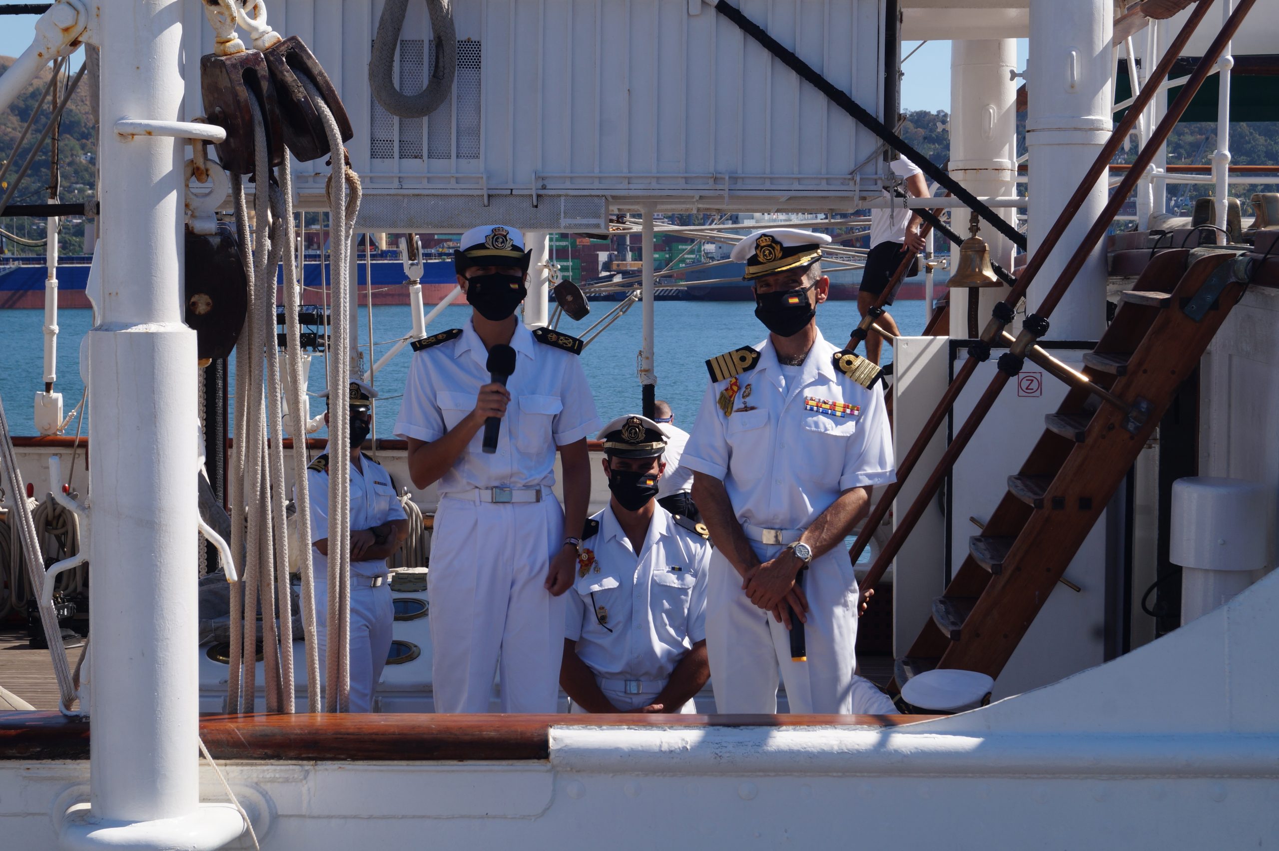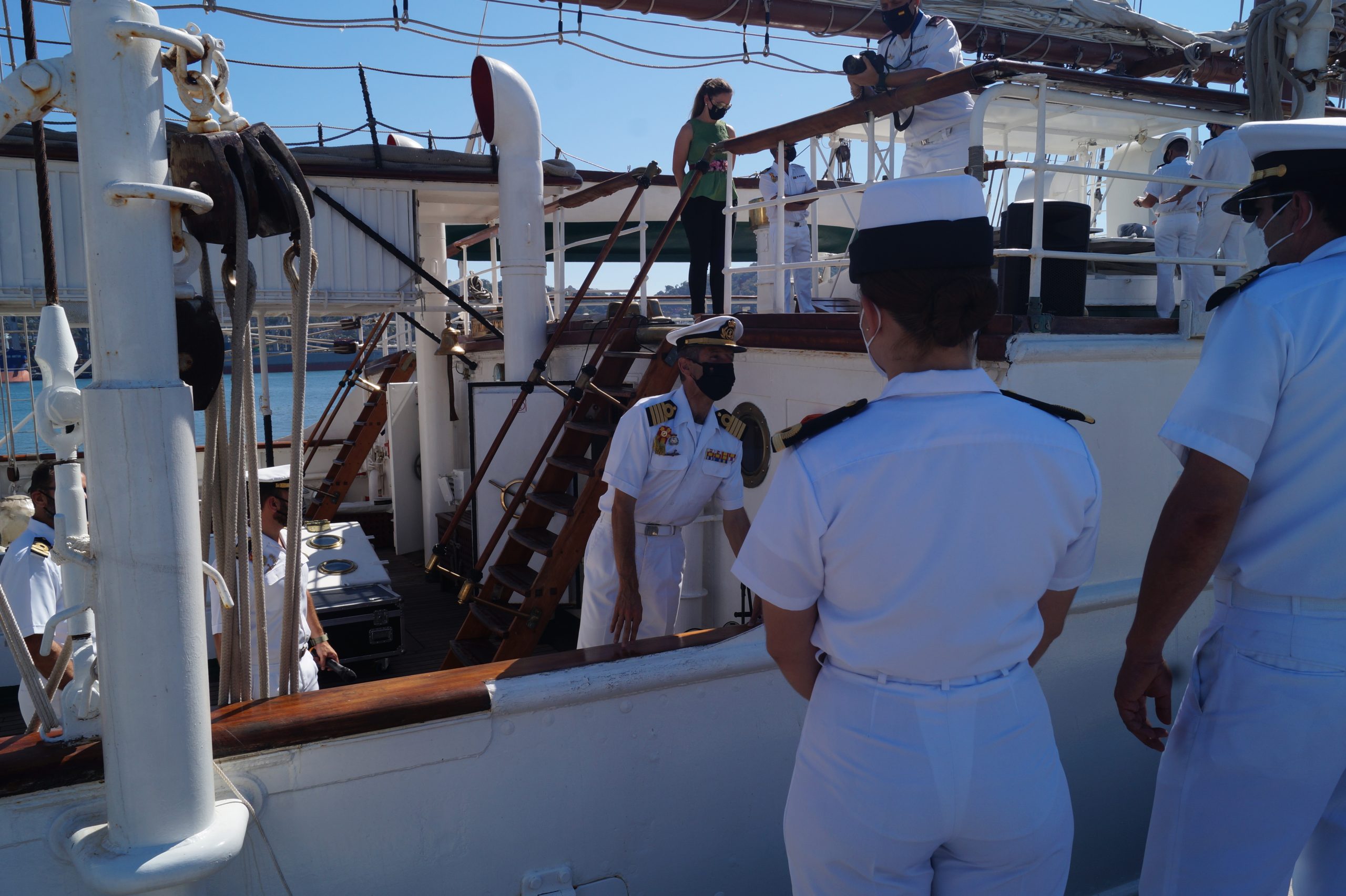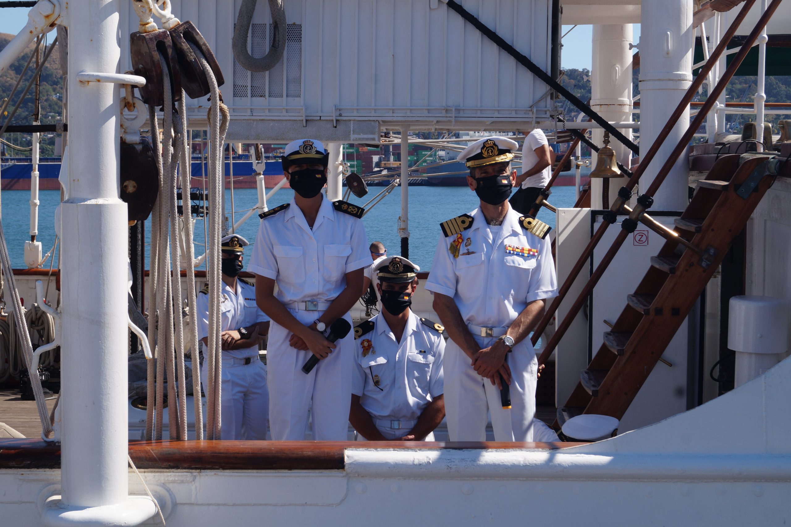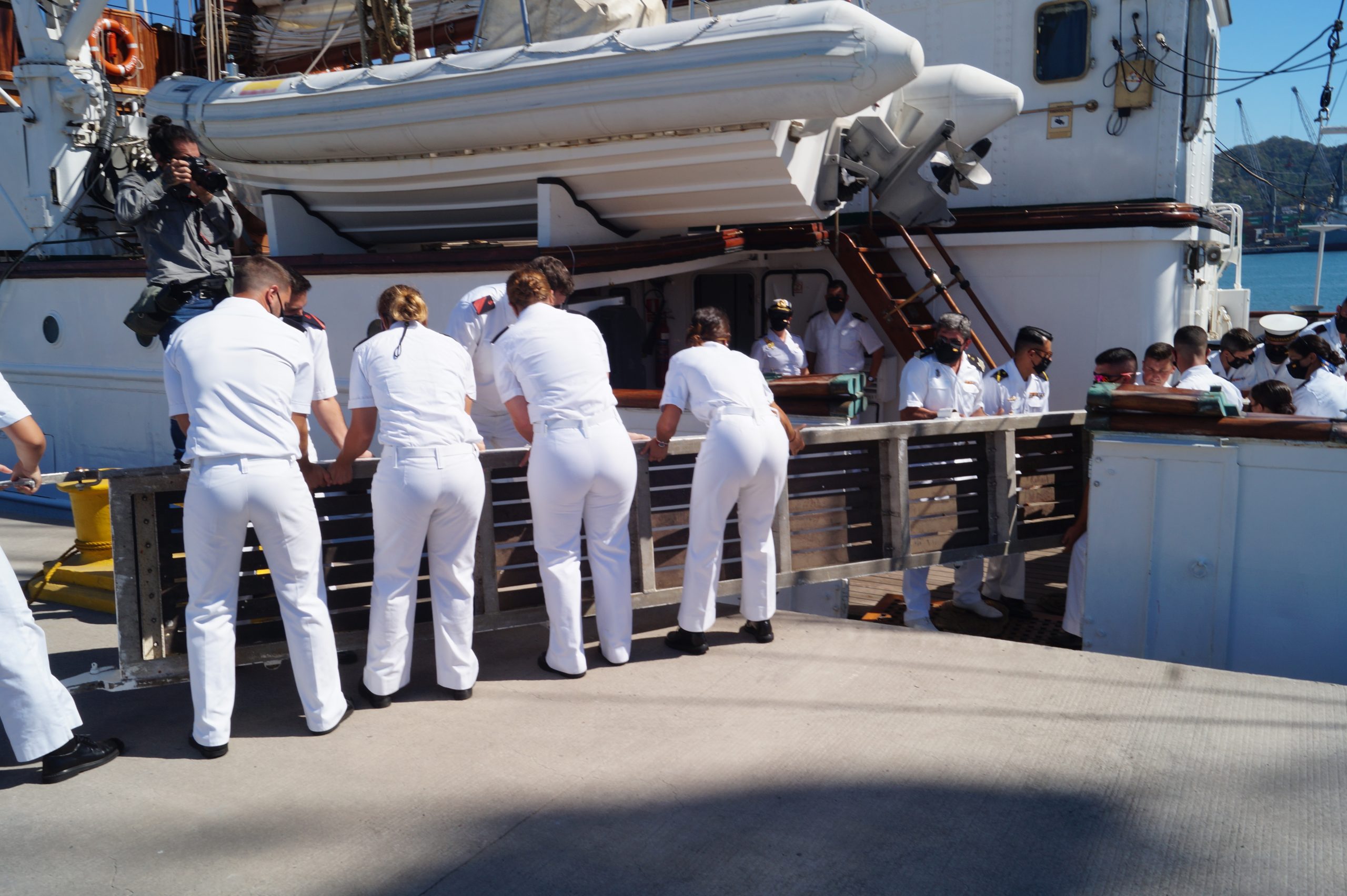En la recepción del buque estuvieron personal diplomático hispano, así como autoridades militares de la localidad.