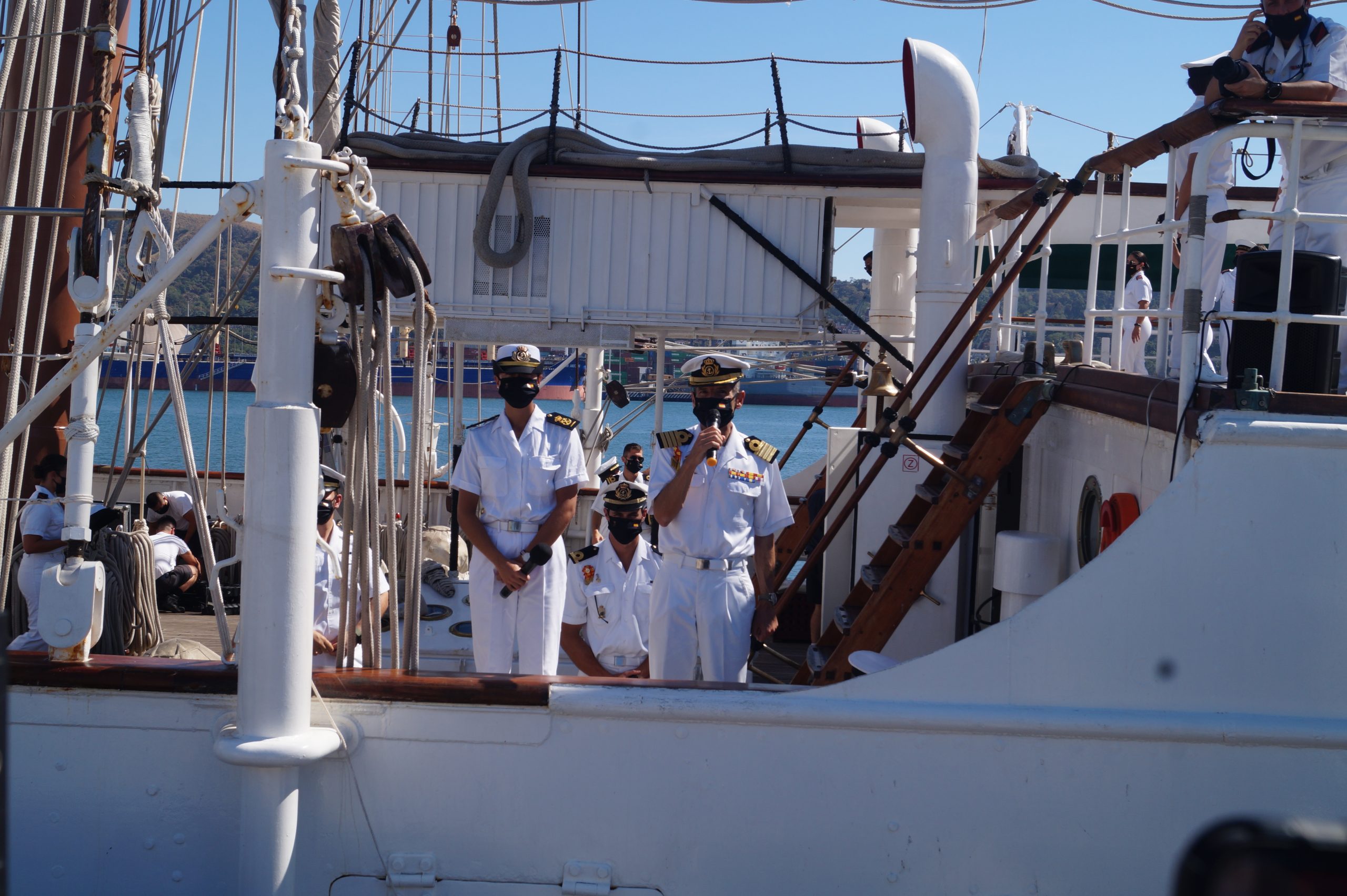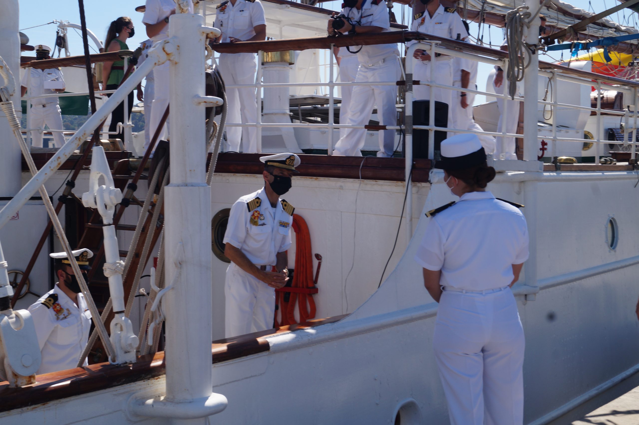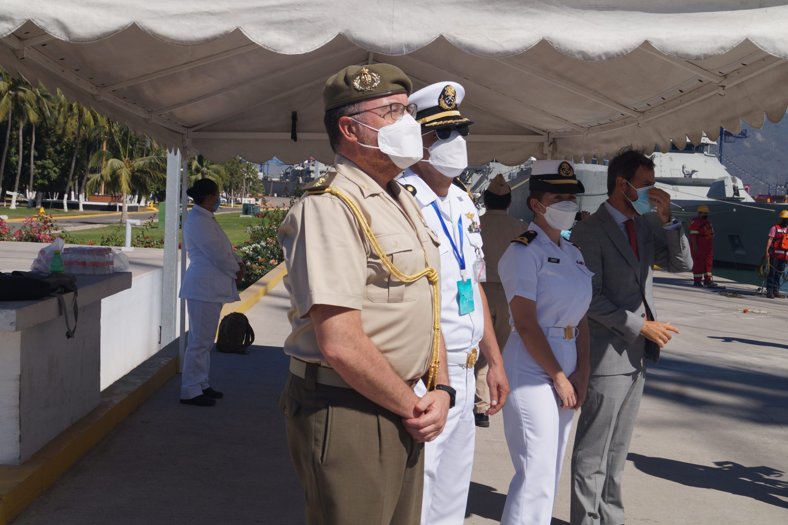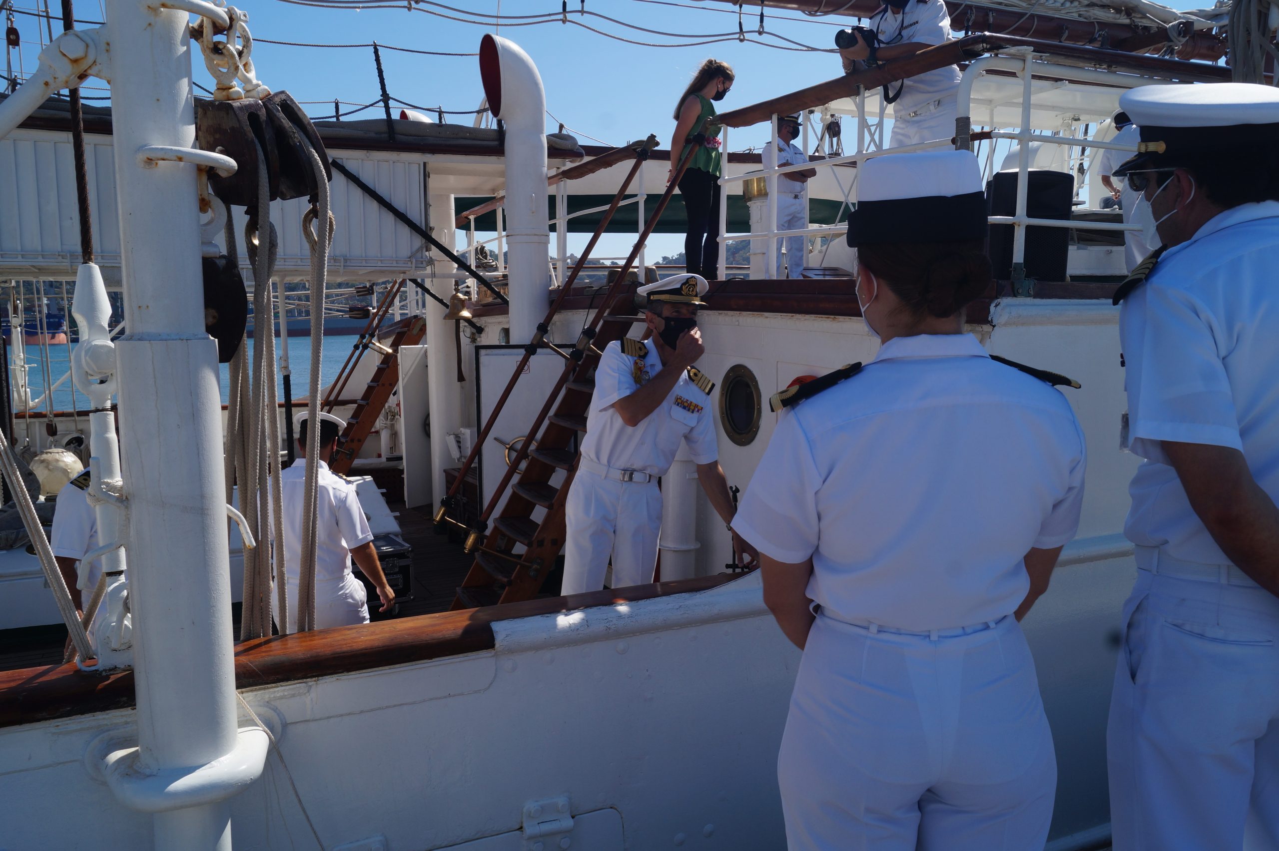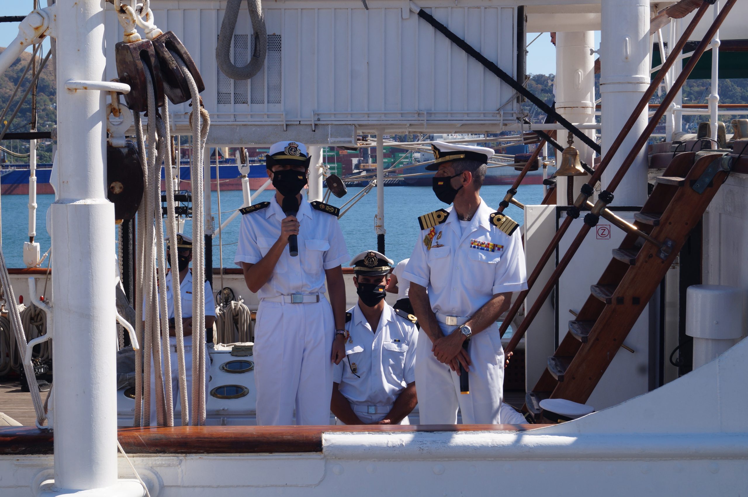En la recepción del buque estuvieron personal diplomático hispano, así como autoridades militares de la localidad.
