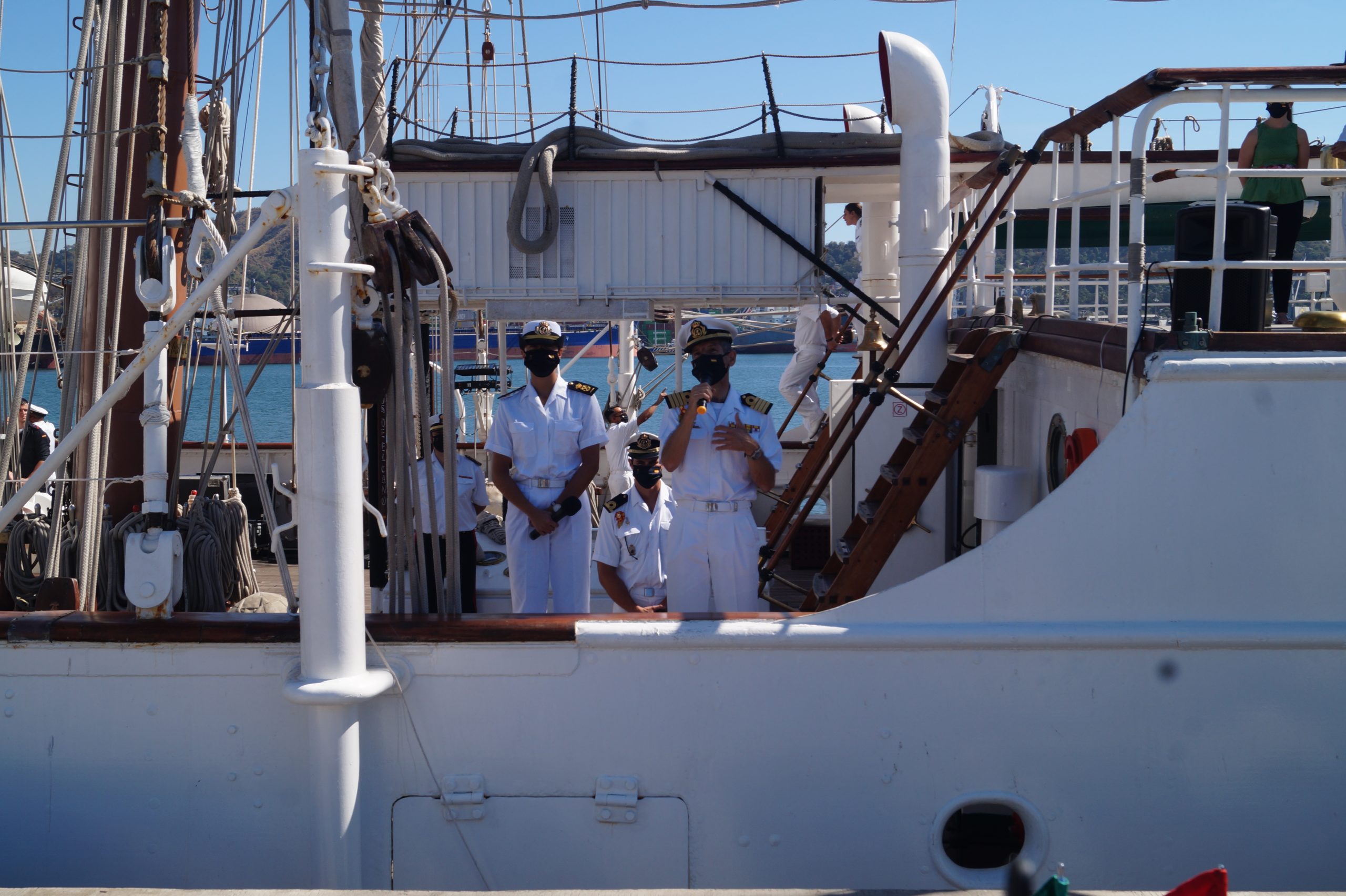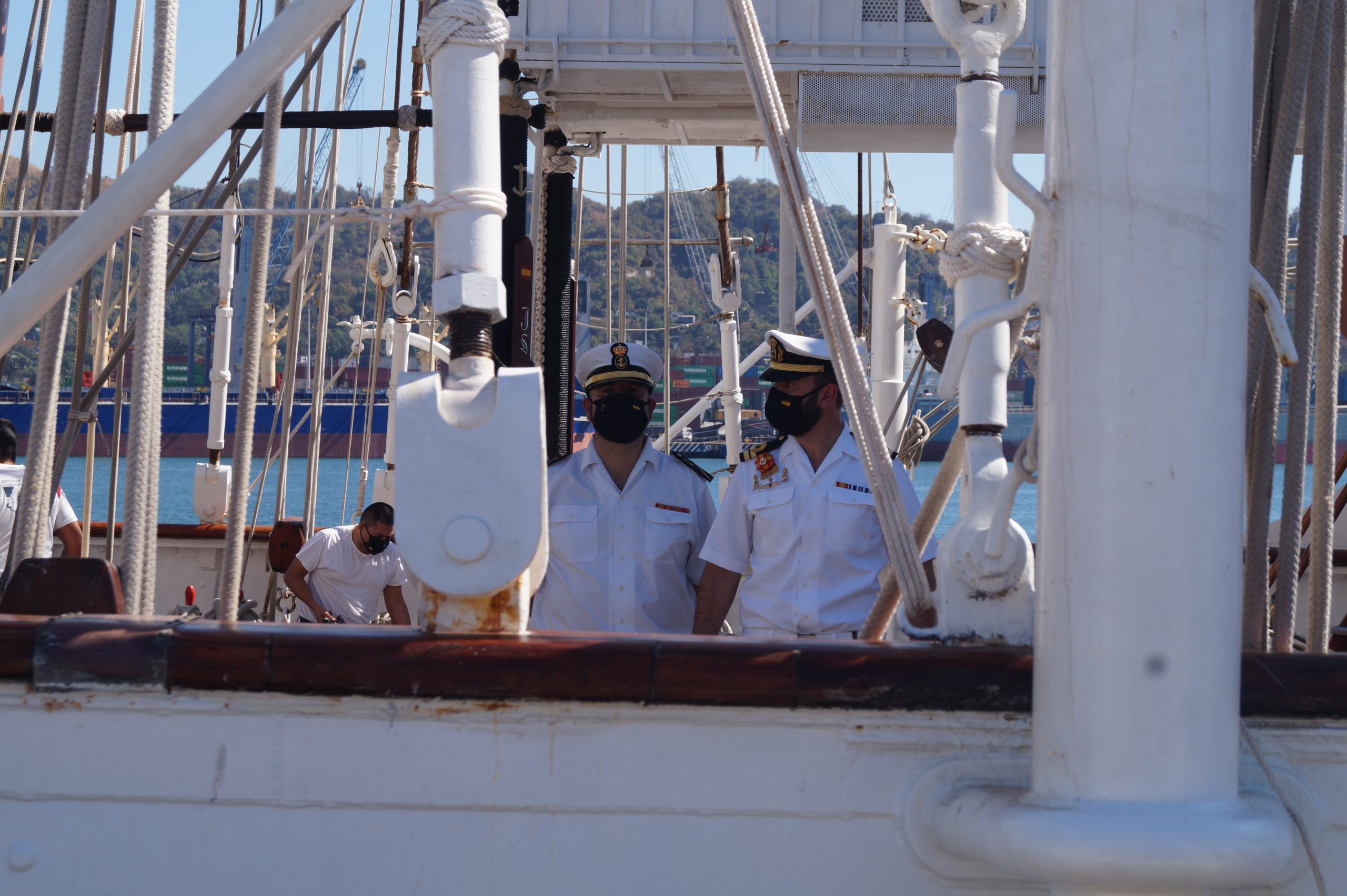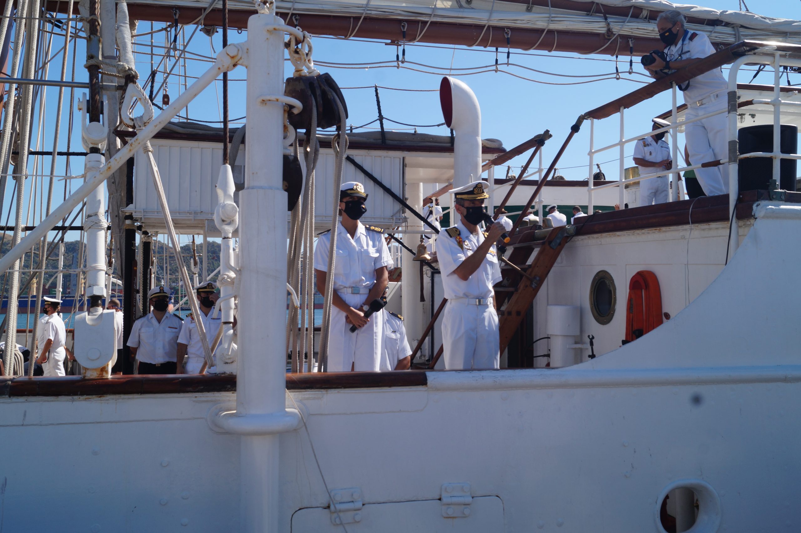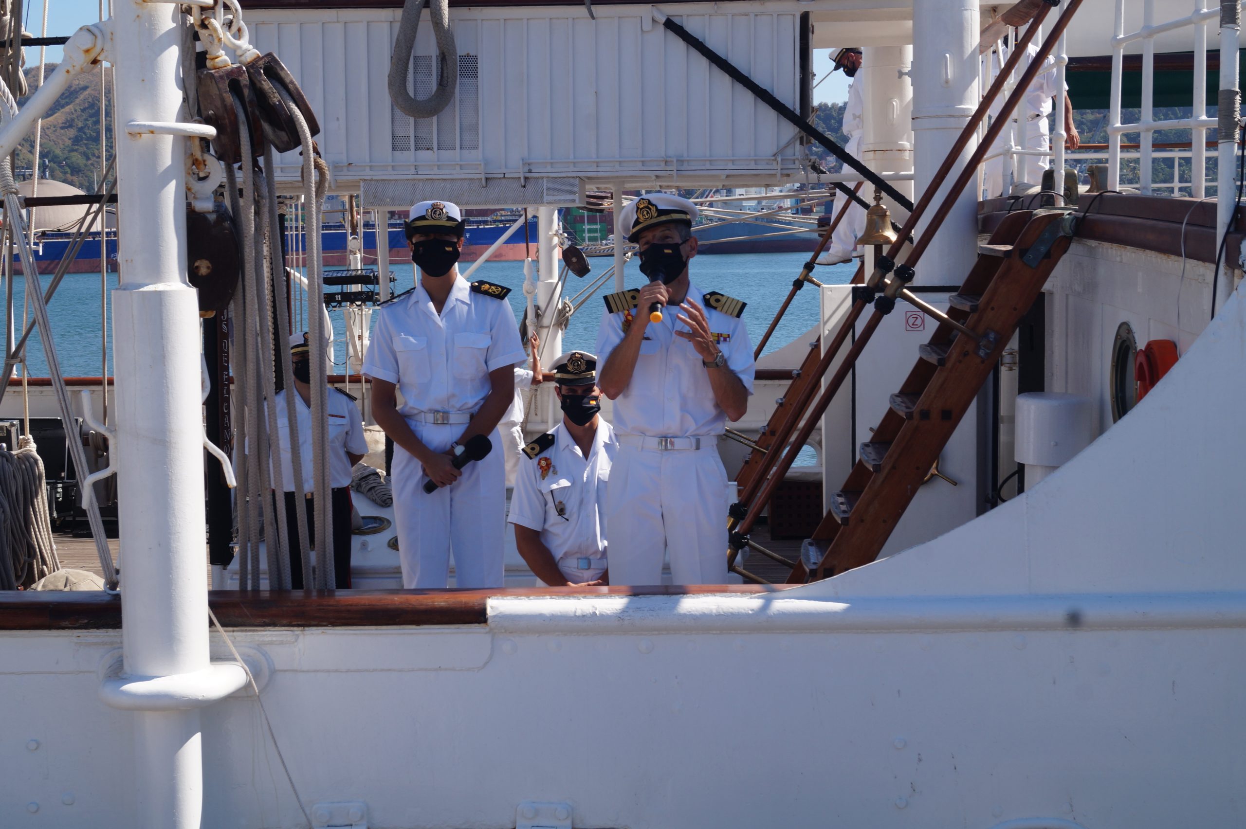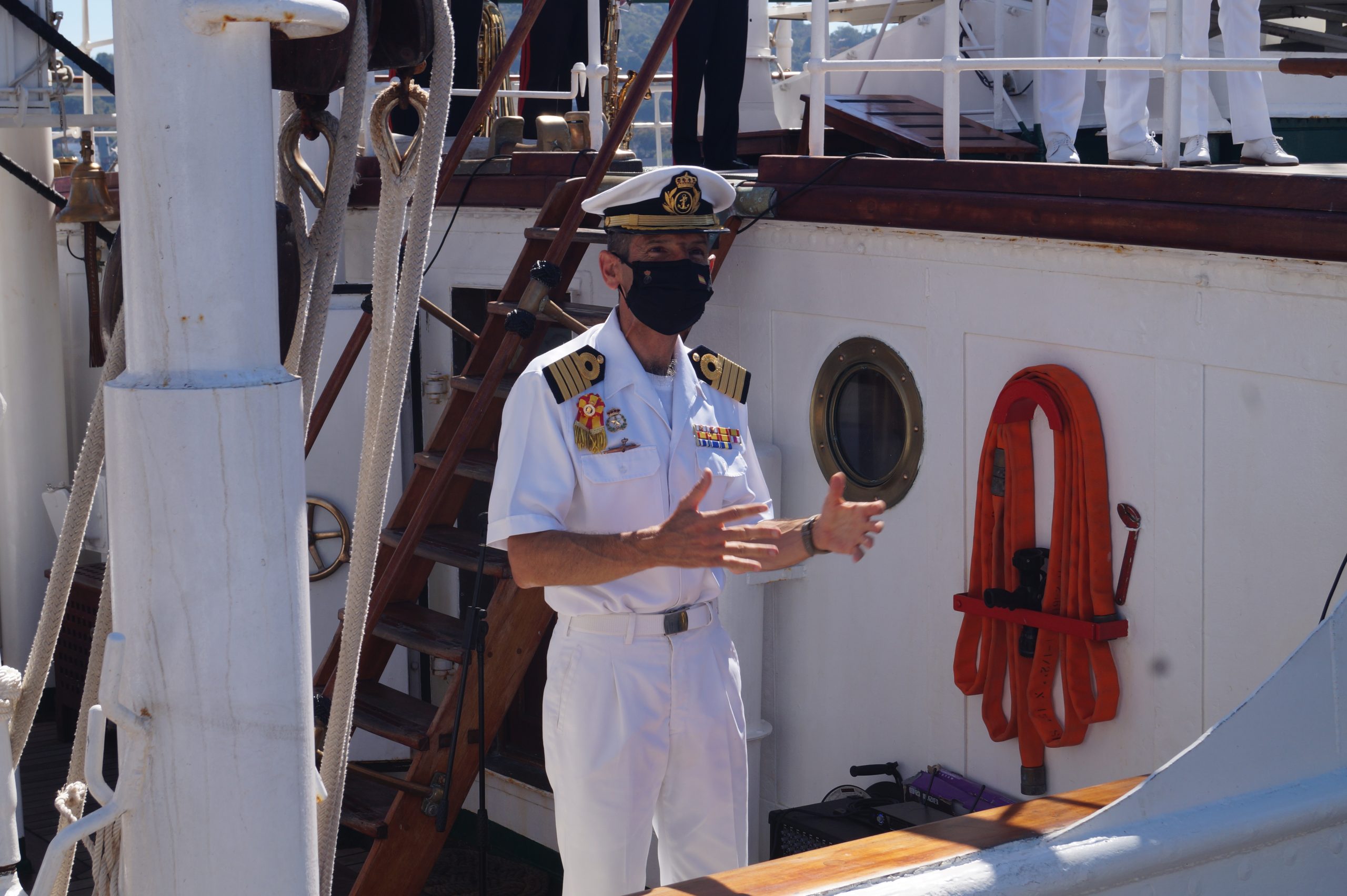 En la recepción del buque estuvieron personal diplomático hispano, así como autoridades militares de la localidad.