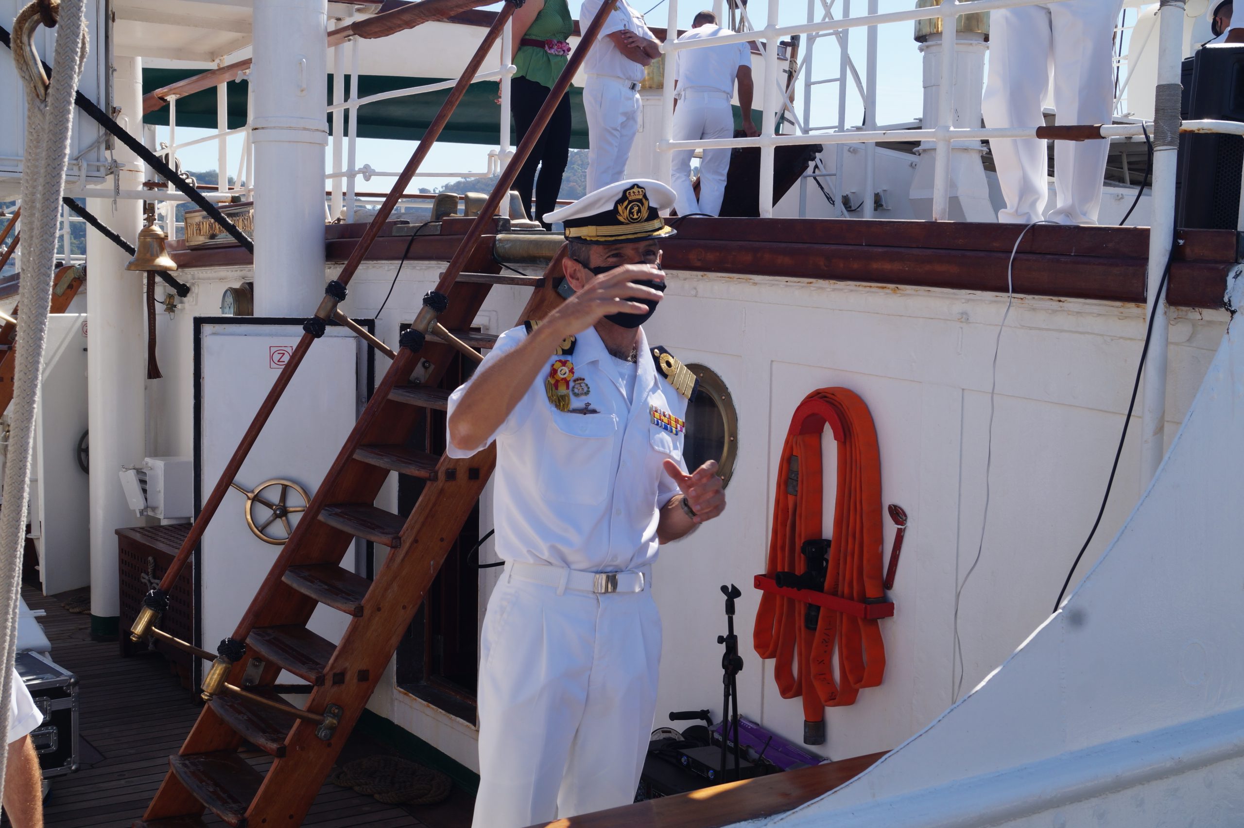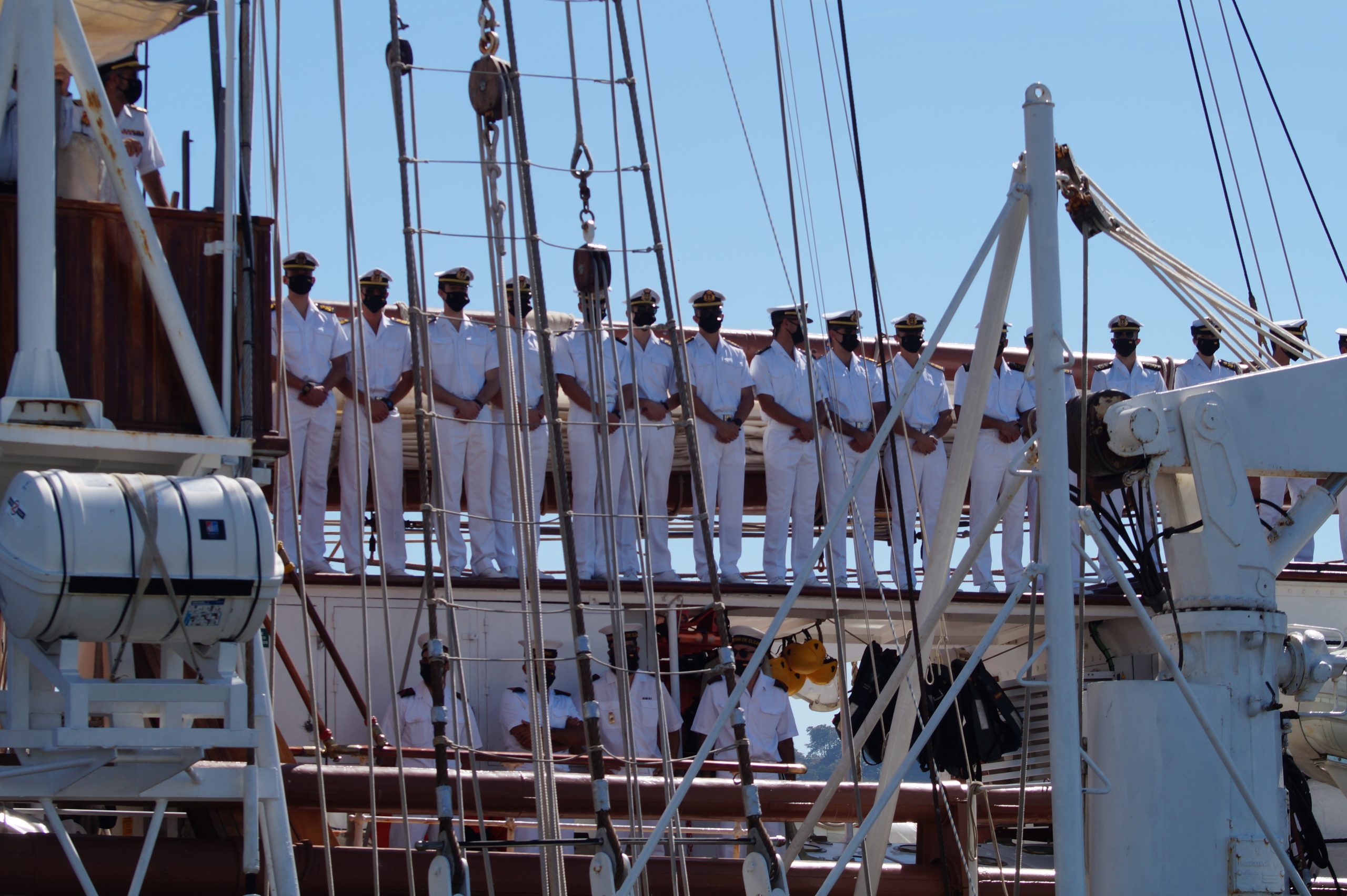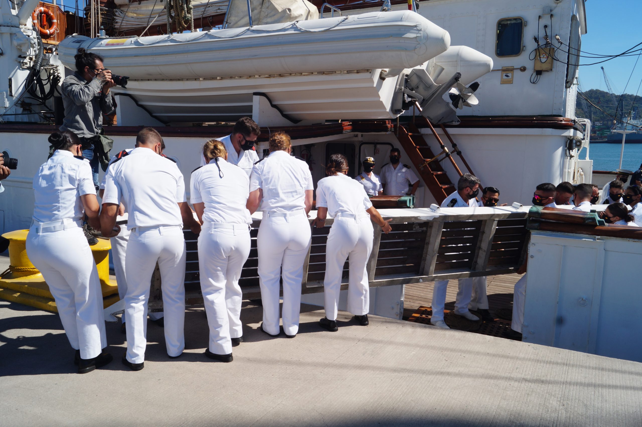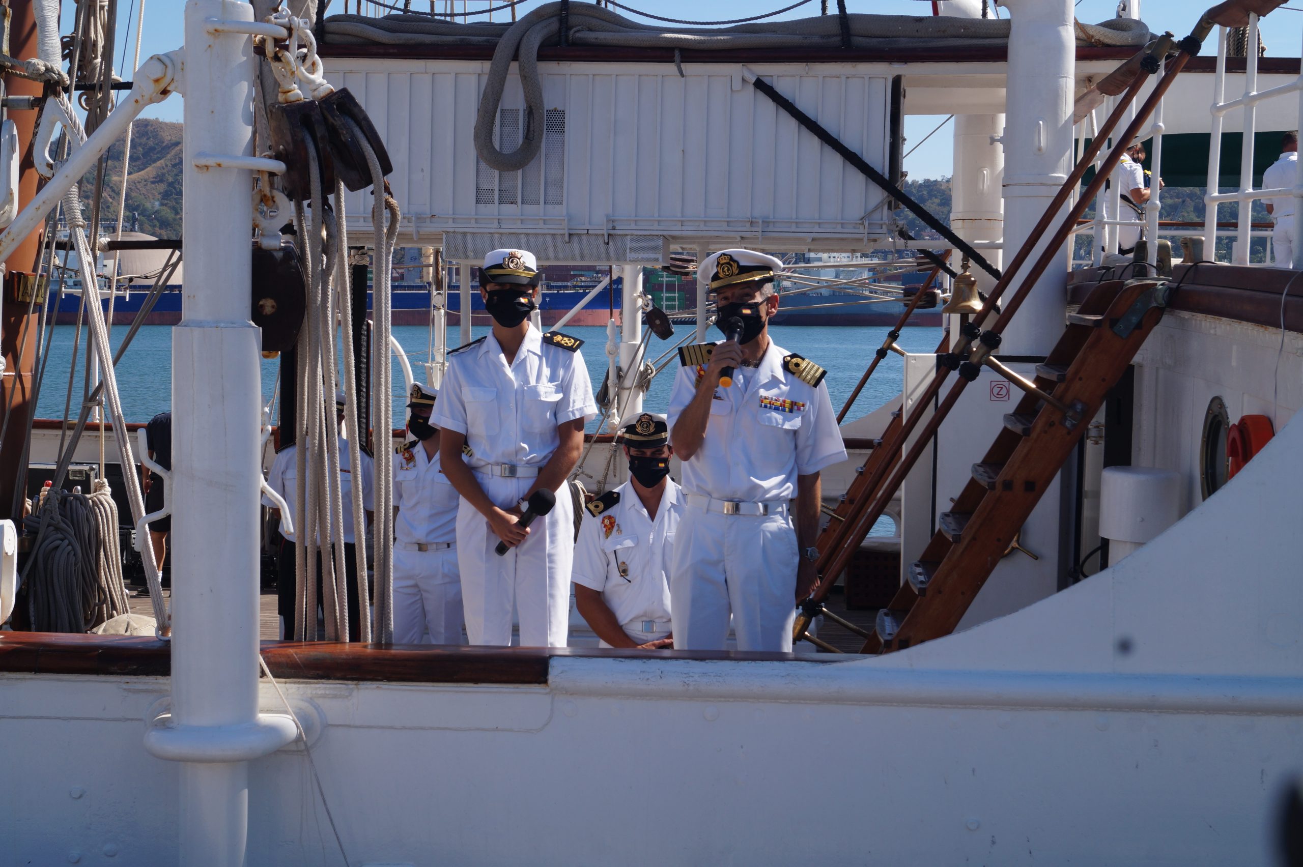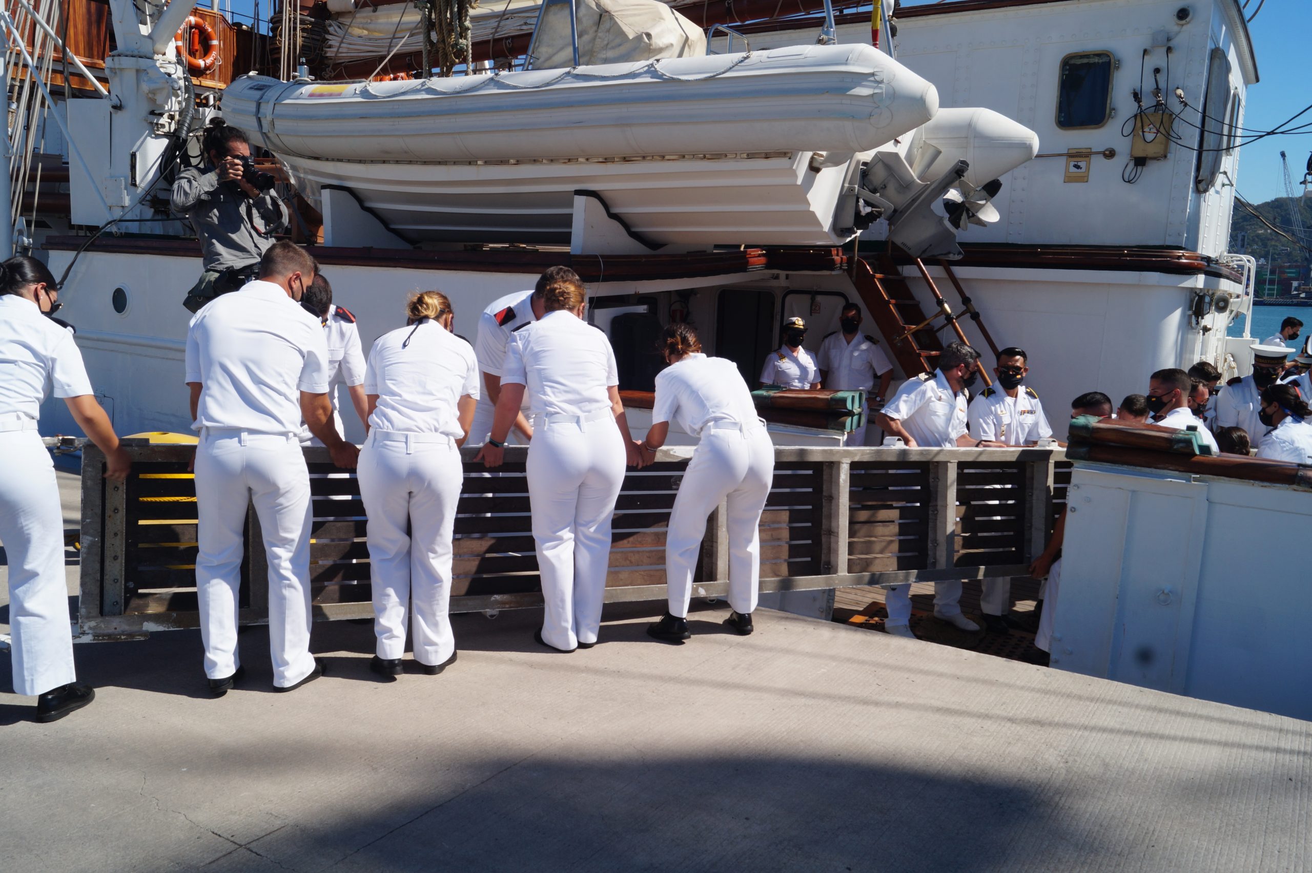En la recepción del buque estuvieron personal diplomático hispano, así como autoridades militares de la localidad.