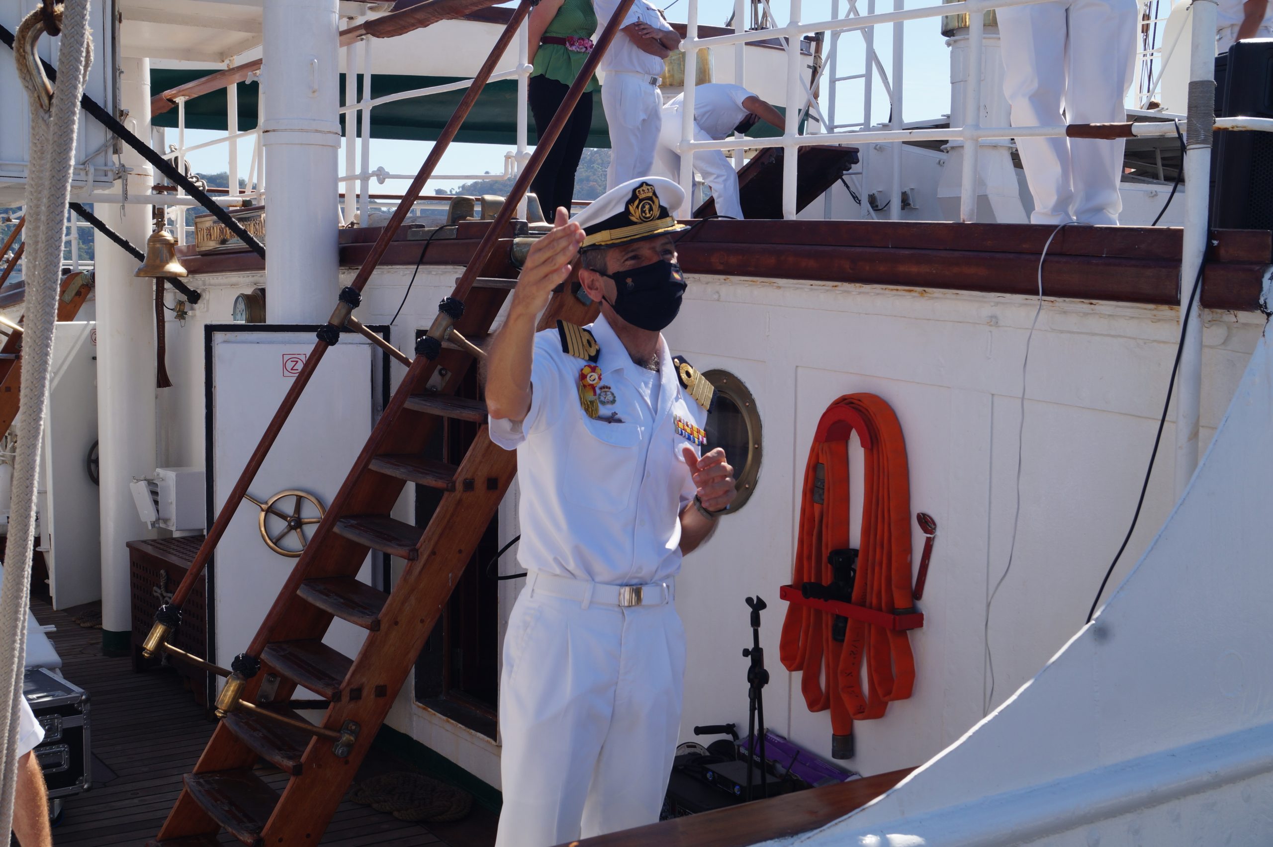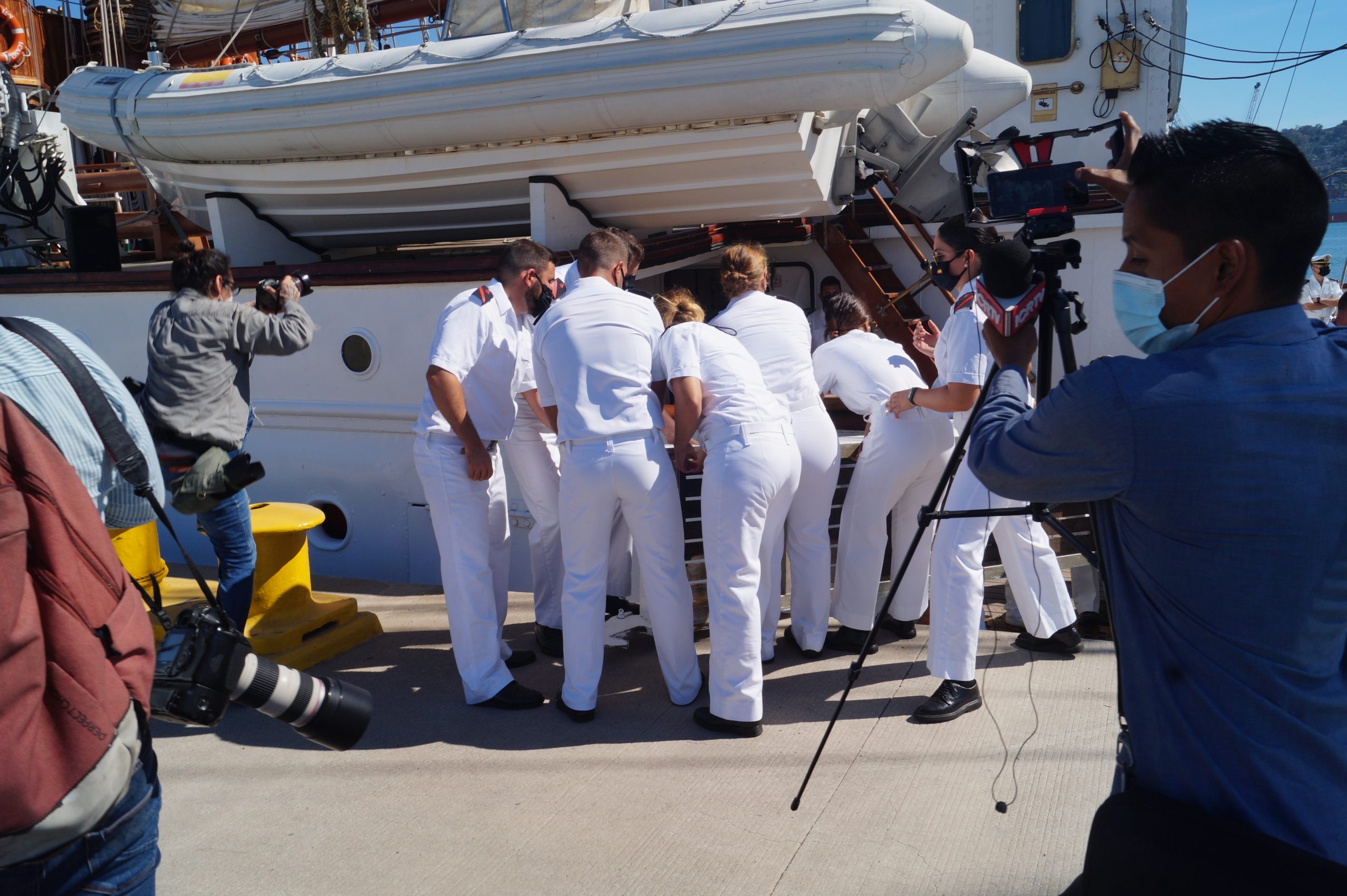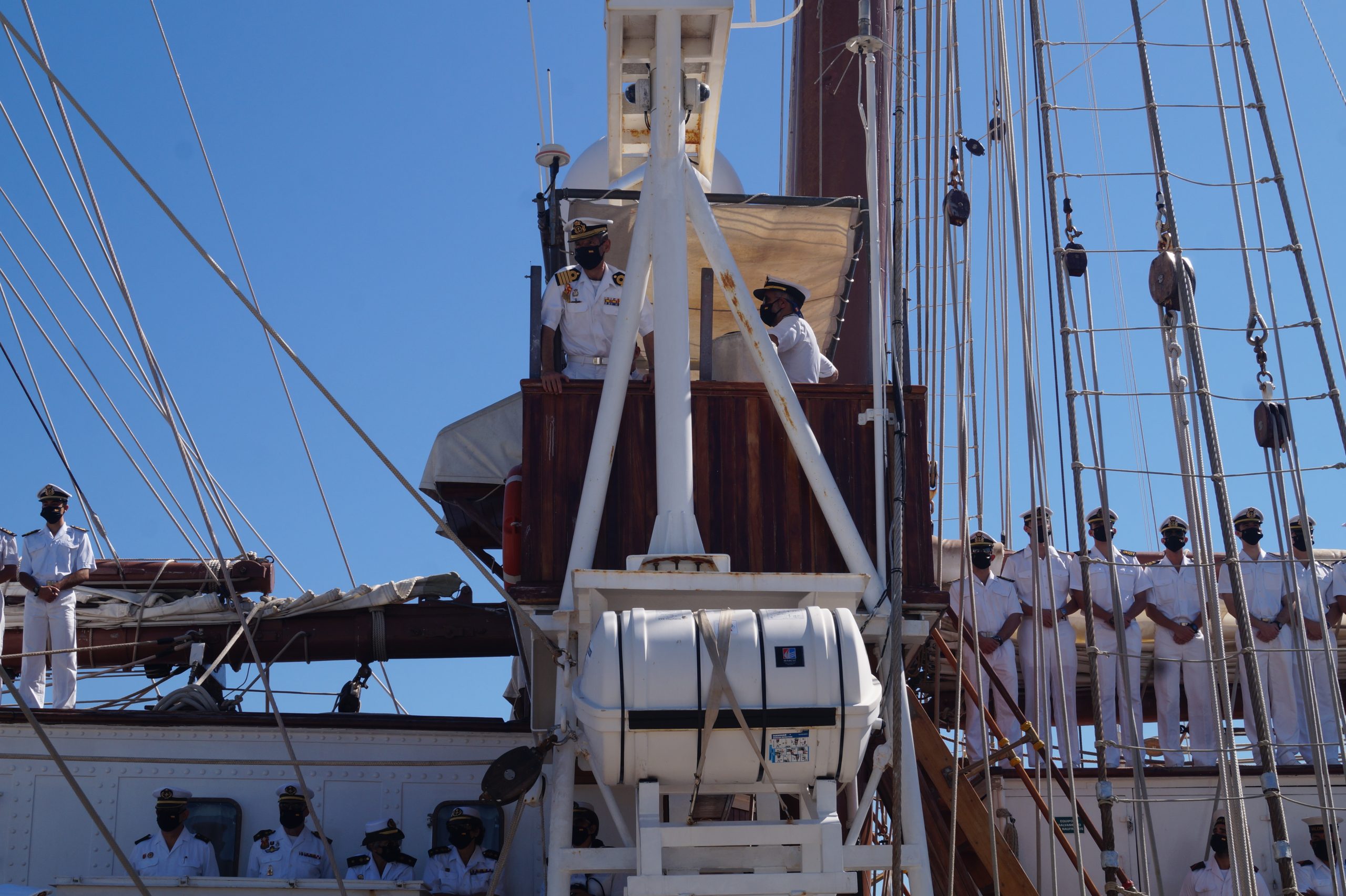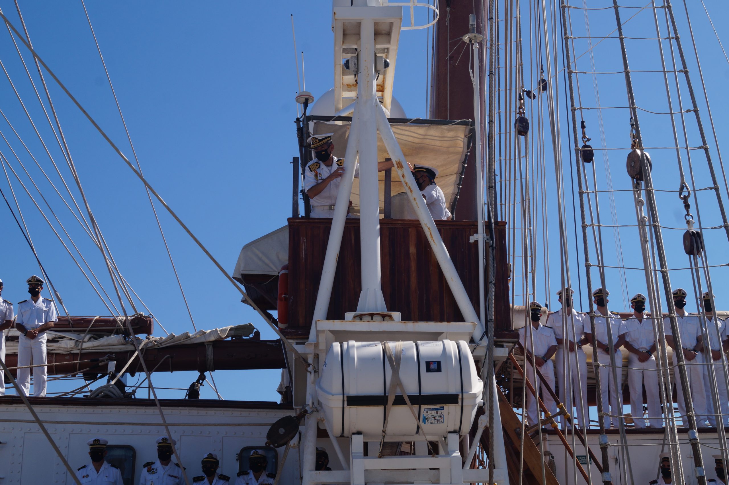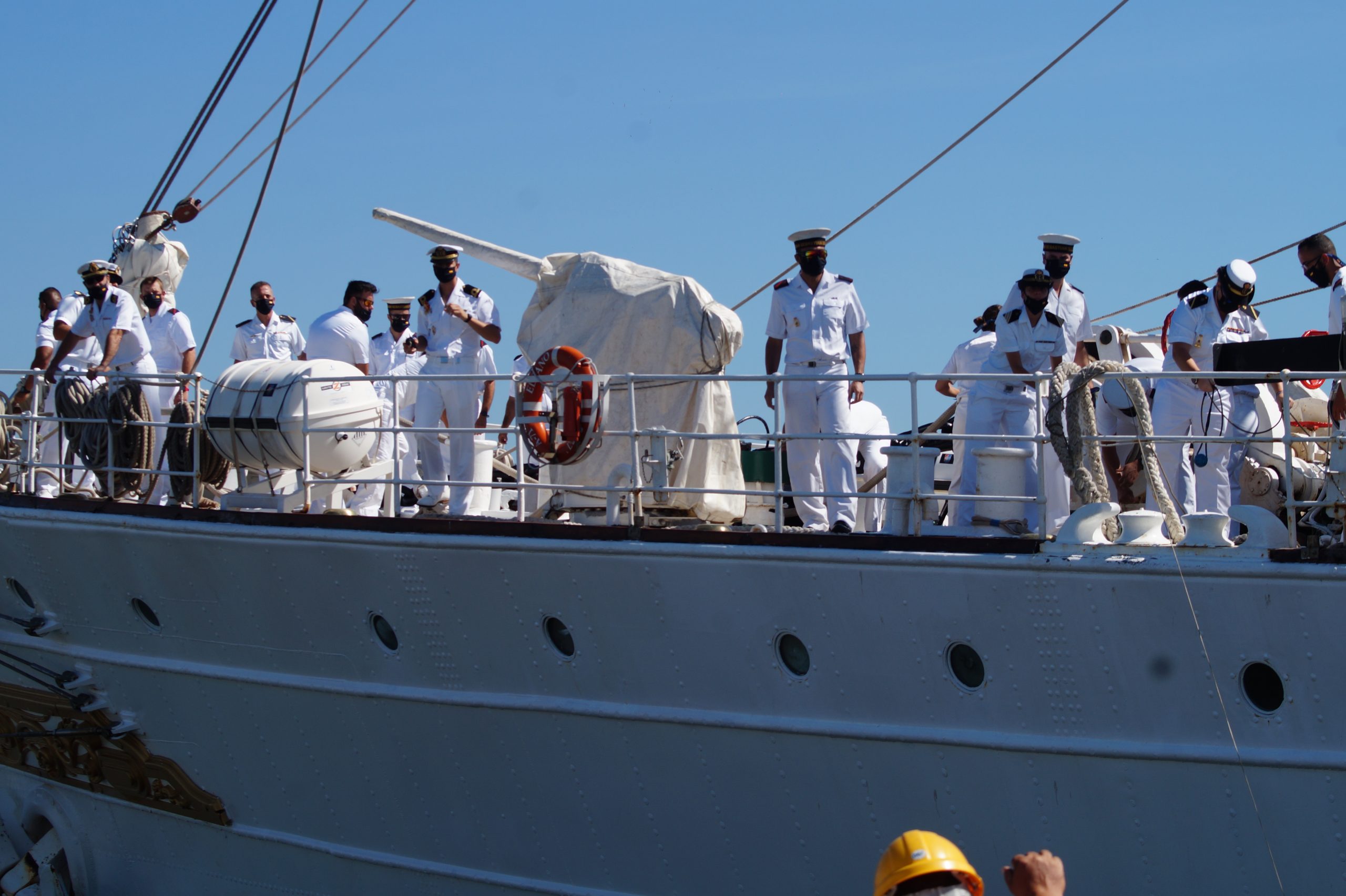 En la recepción del buque estuvieron personal diplomático hispano, así como autoridades militares de la localidad.
