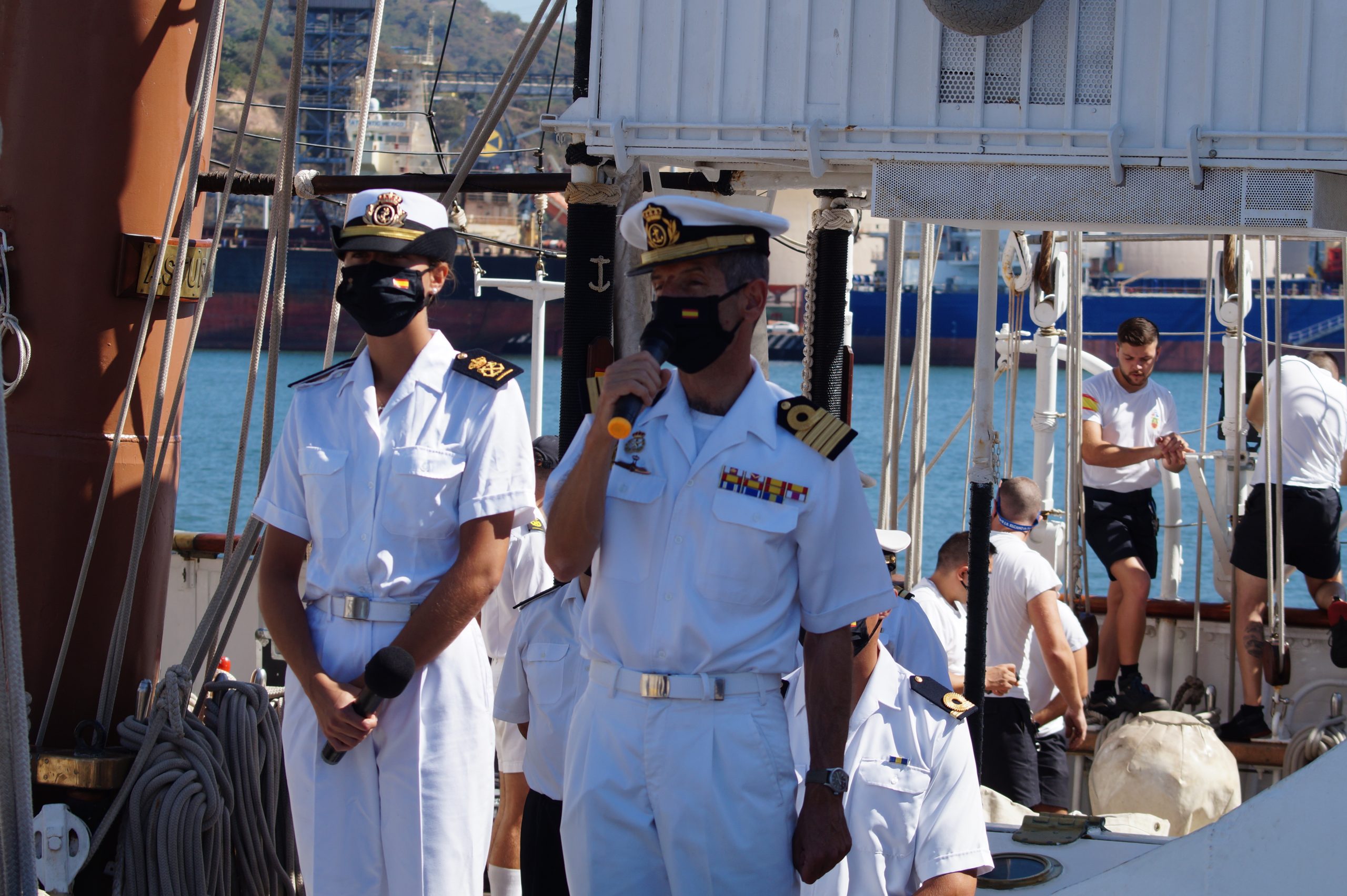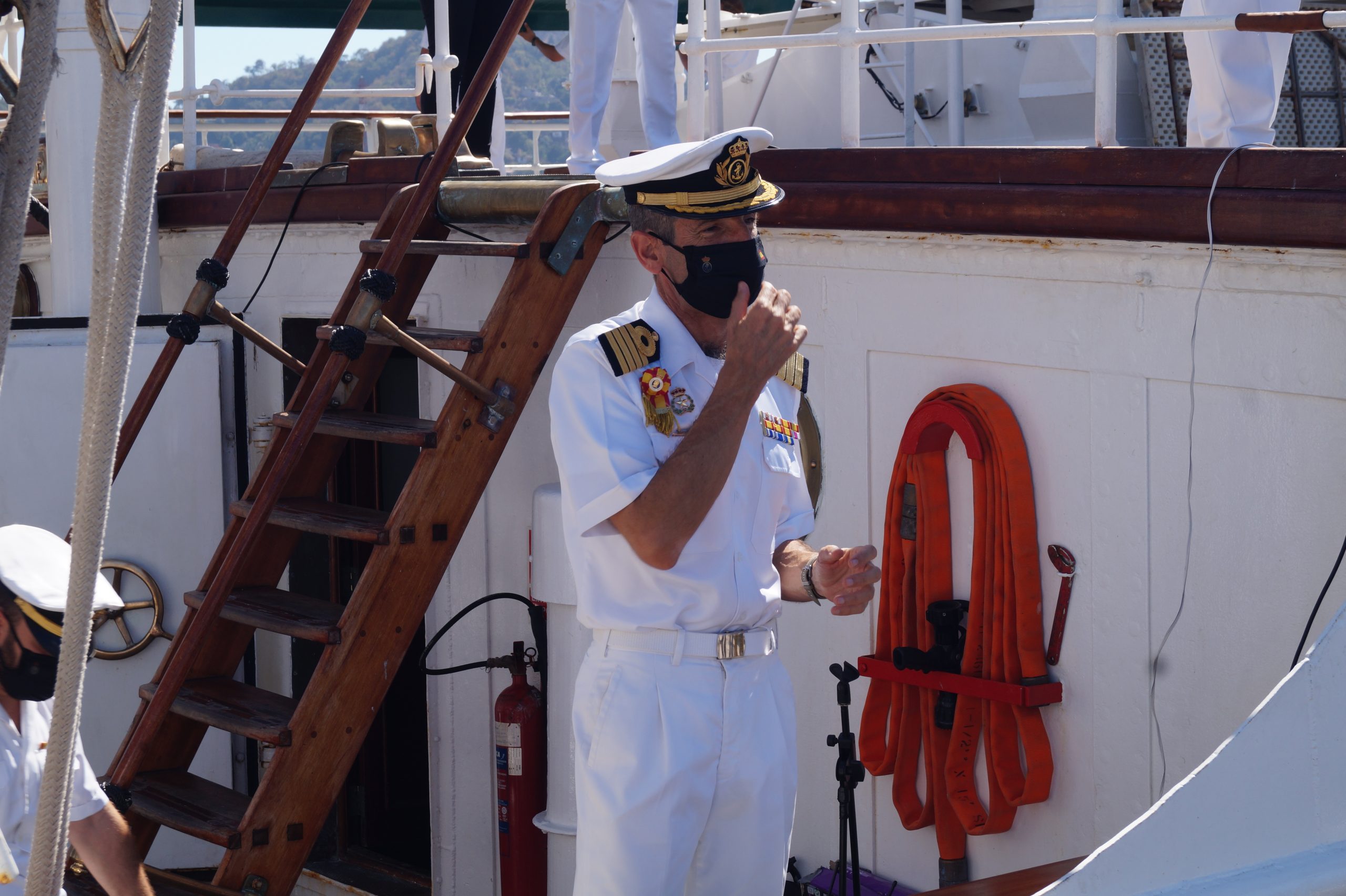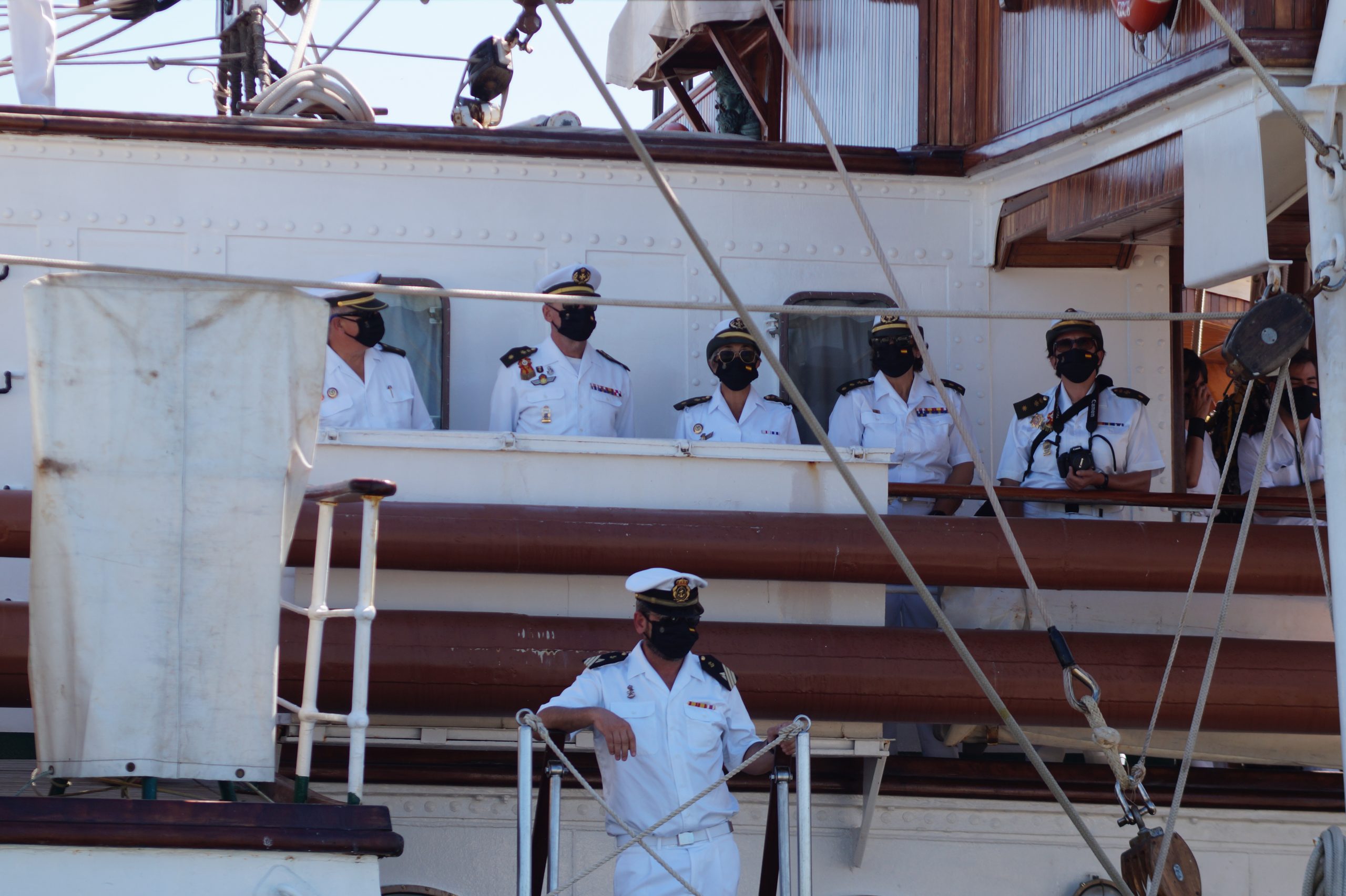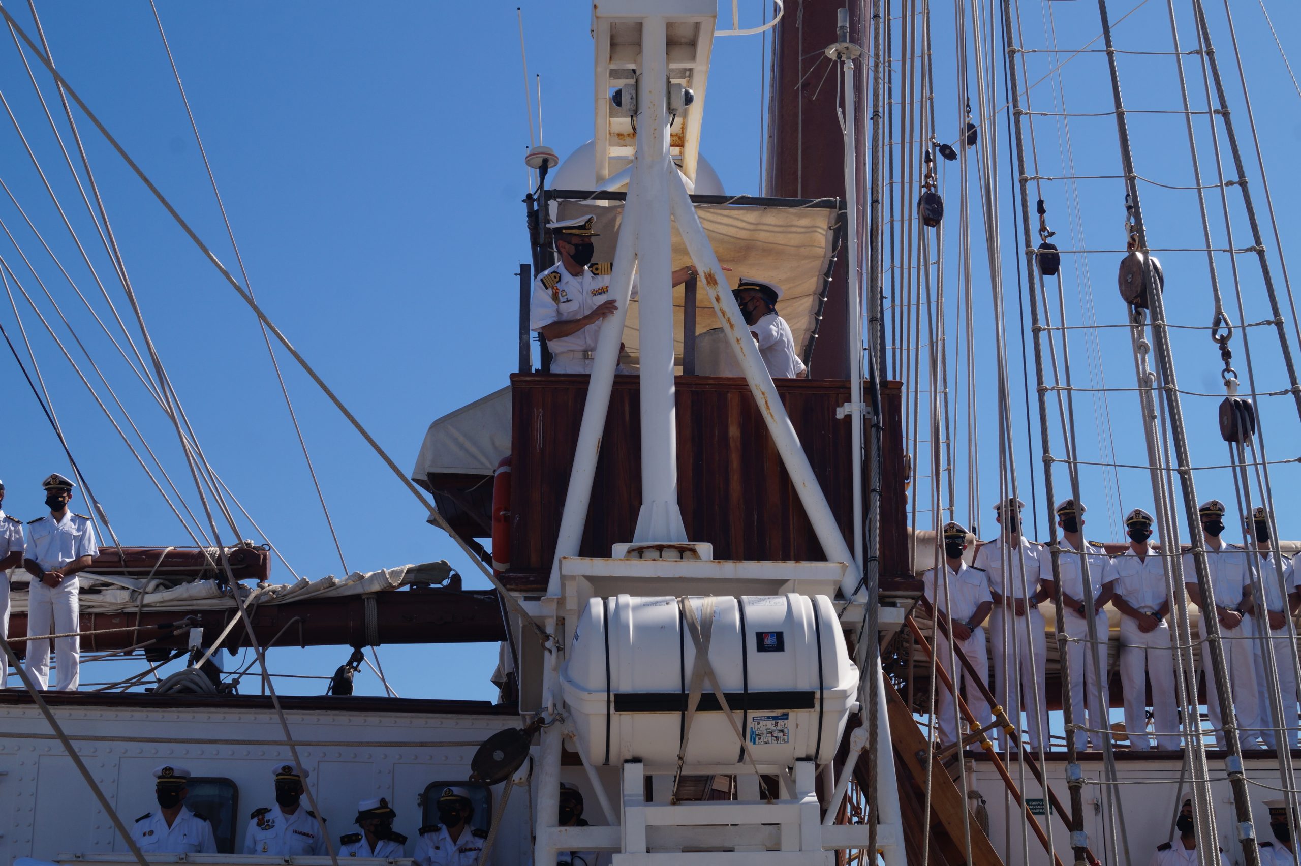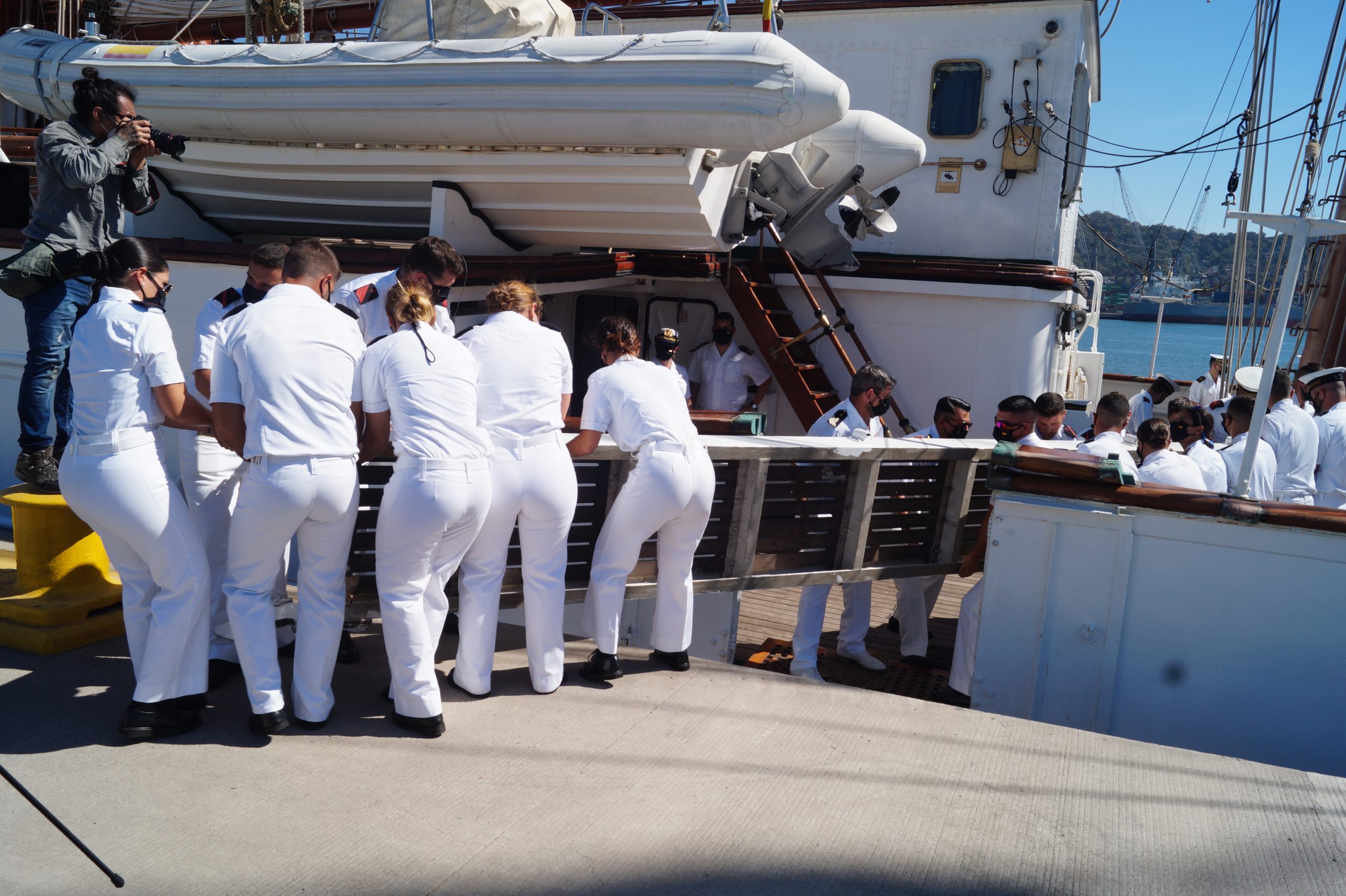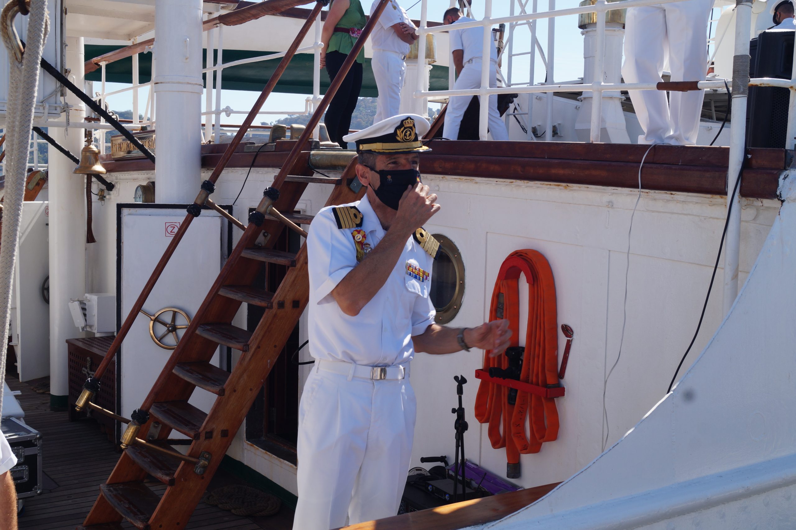 En la recepción del buque estuvieron personal diplomático hispano, así como autoridades militares de la localidad.