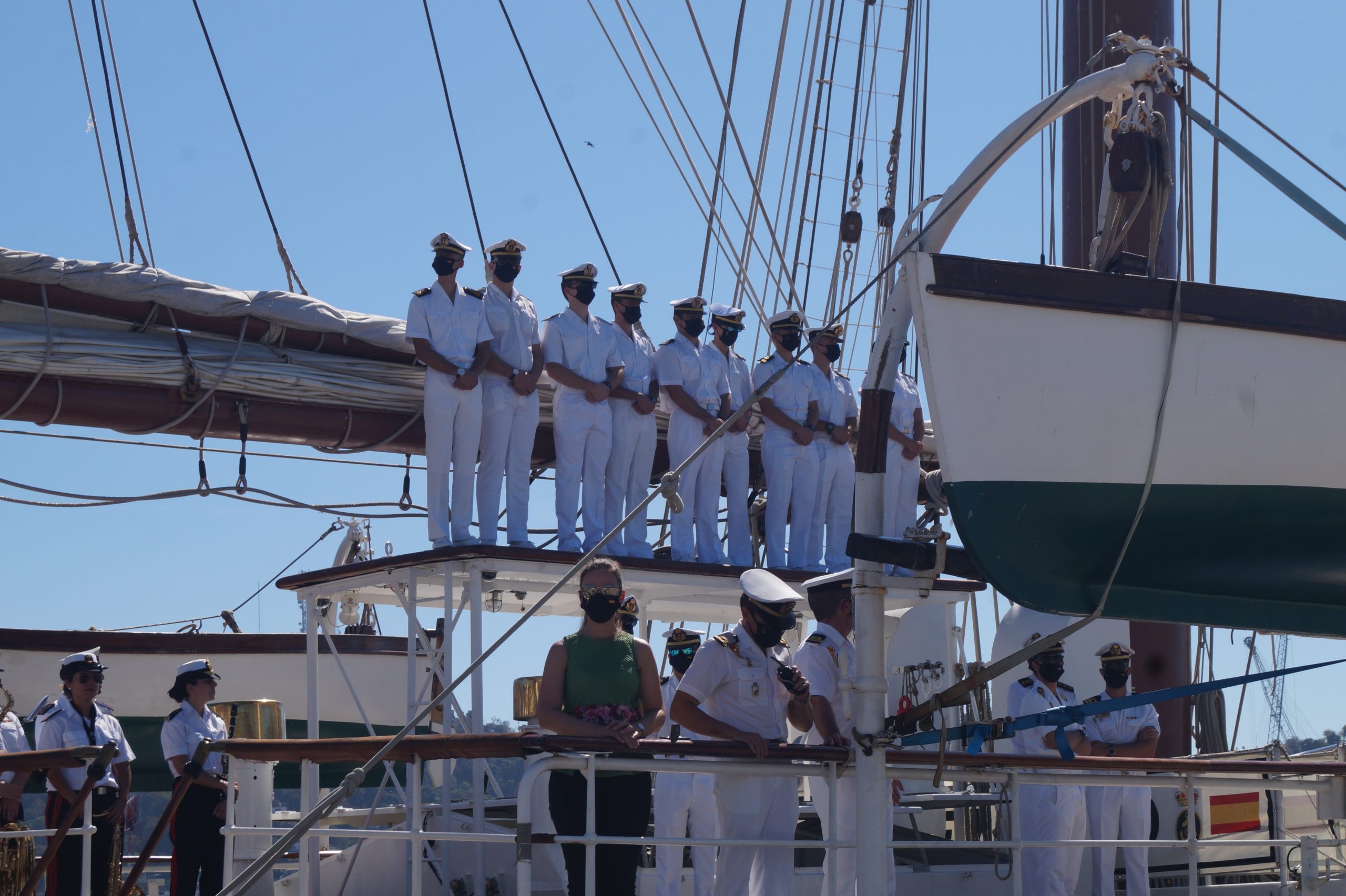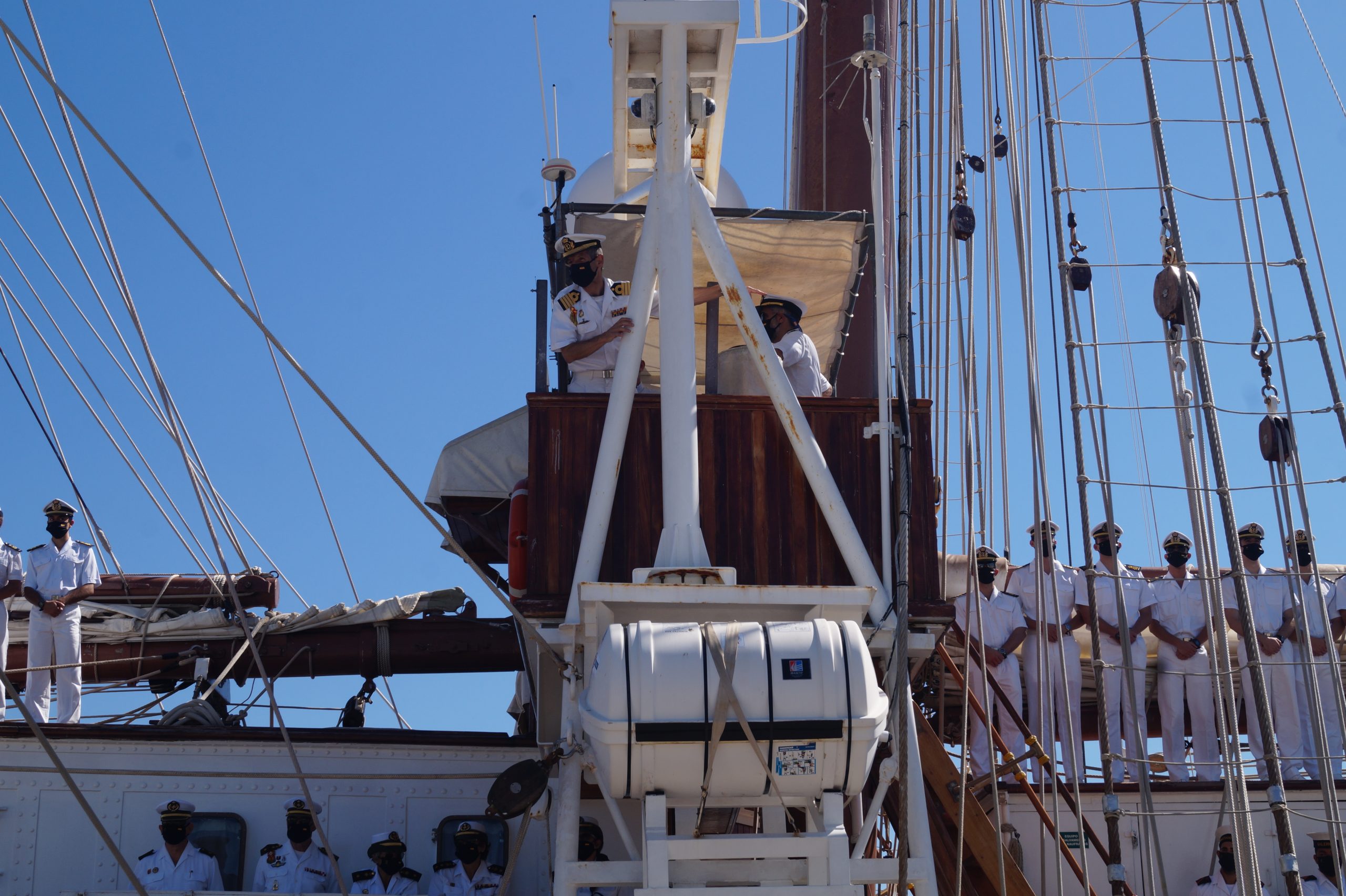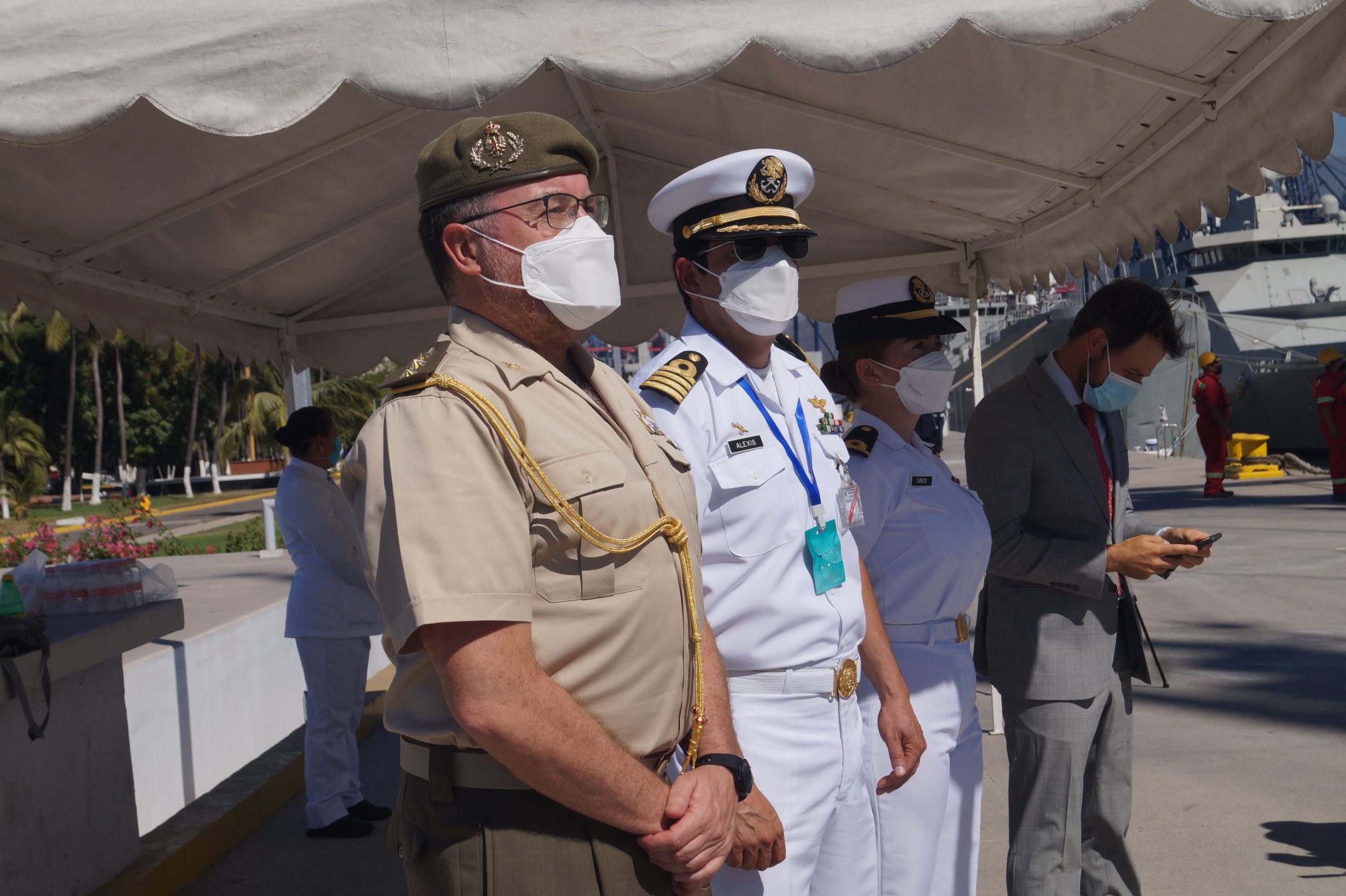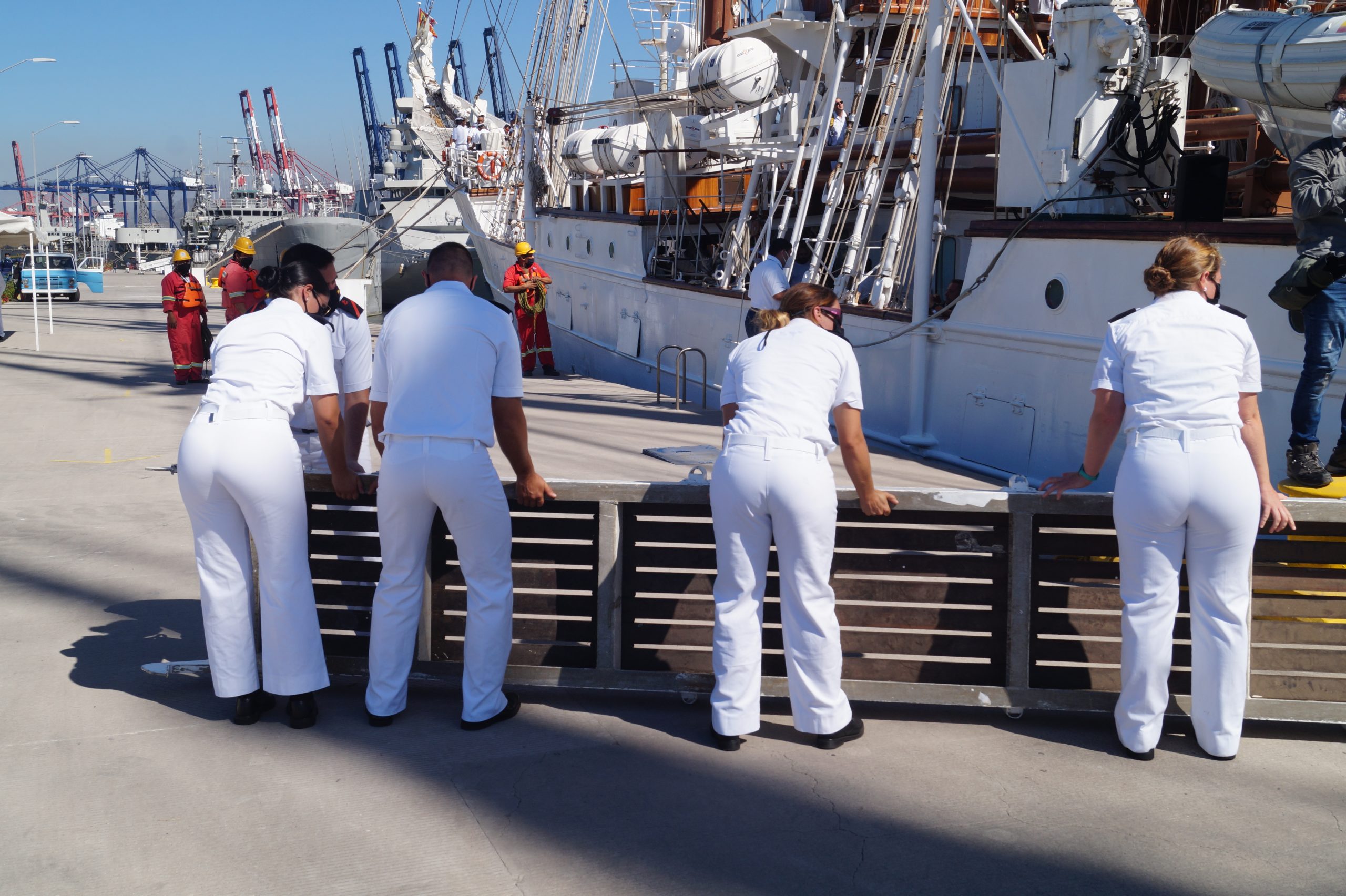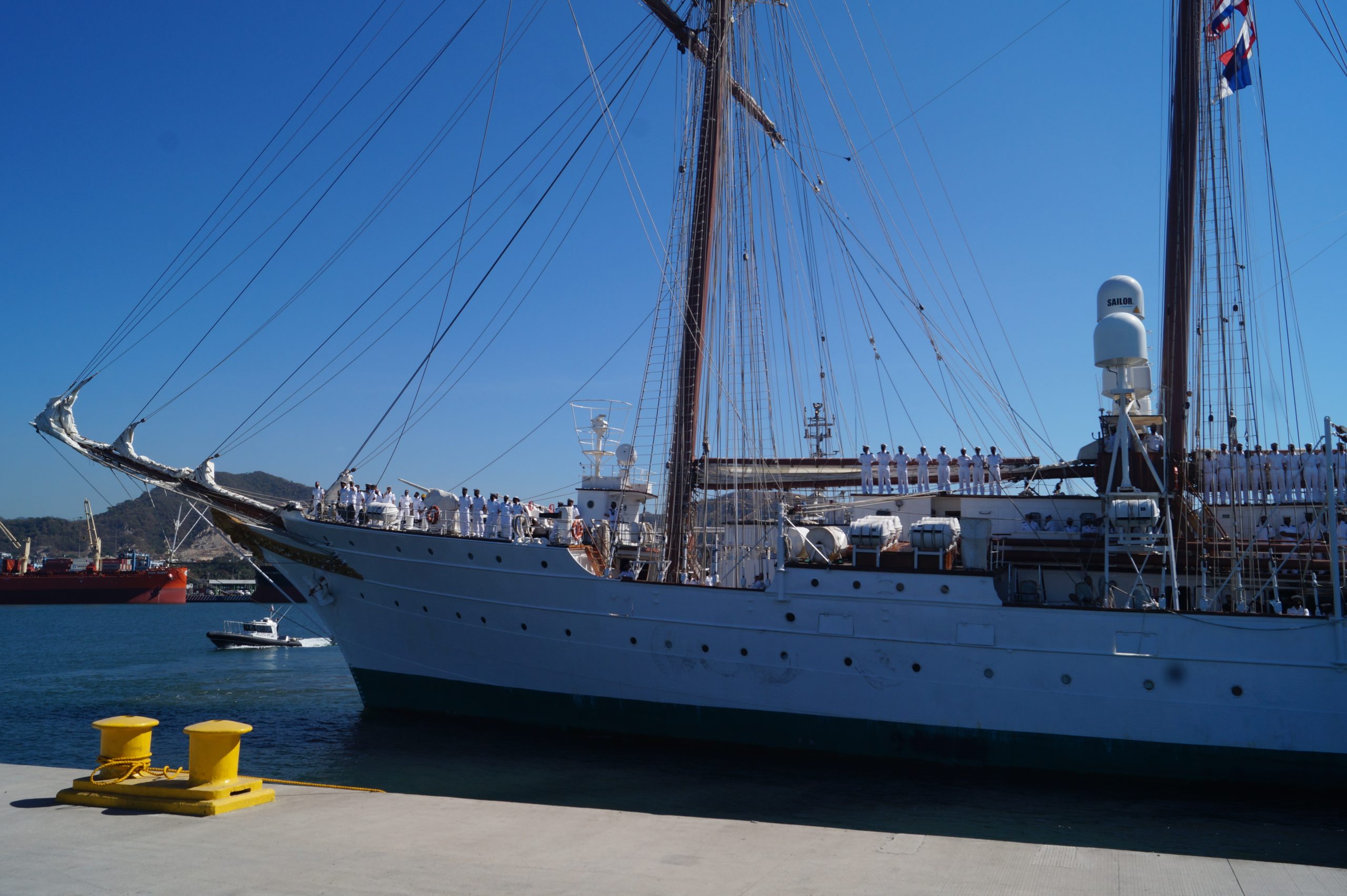 En la recepción del buque estuvieron personal diplomático hispano, así como autoridades militares de la localidad.