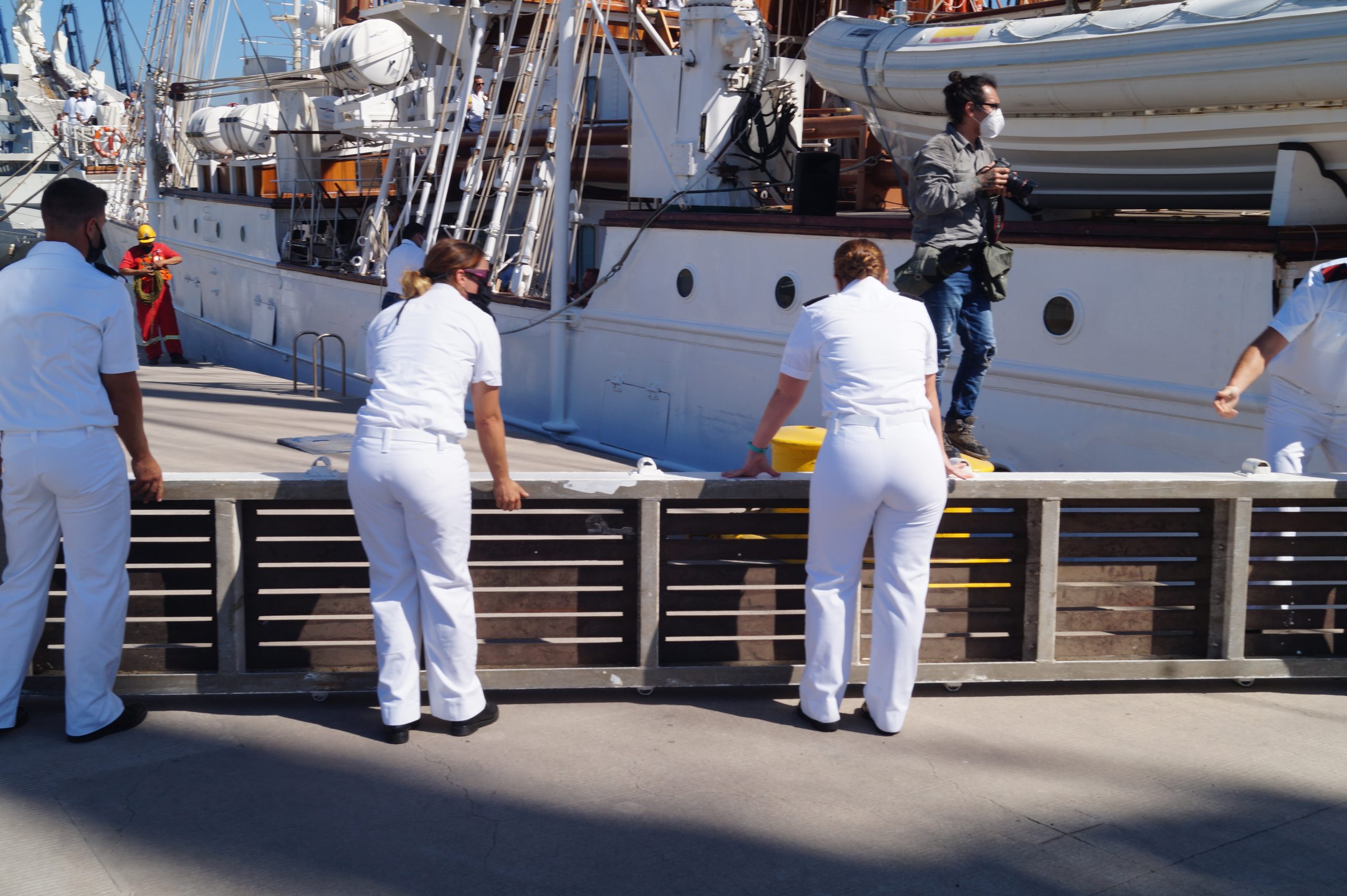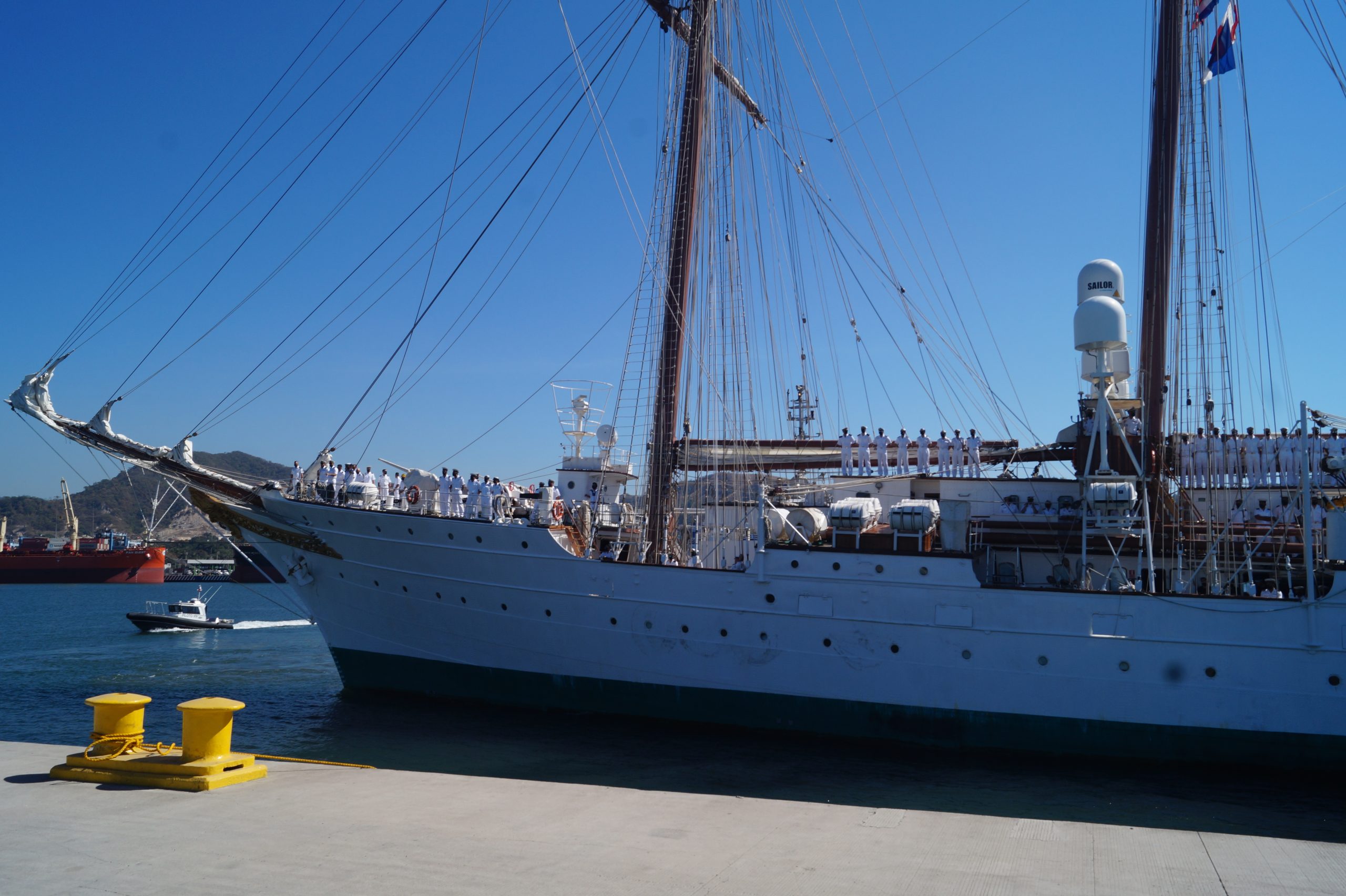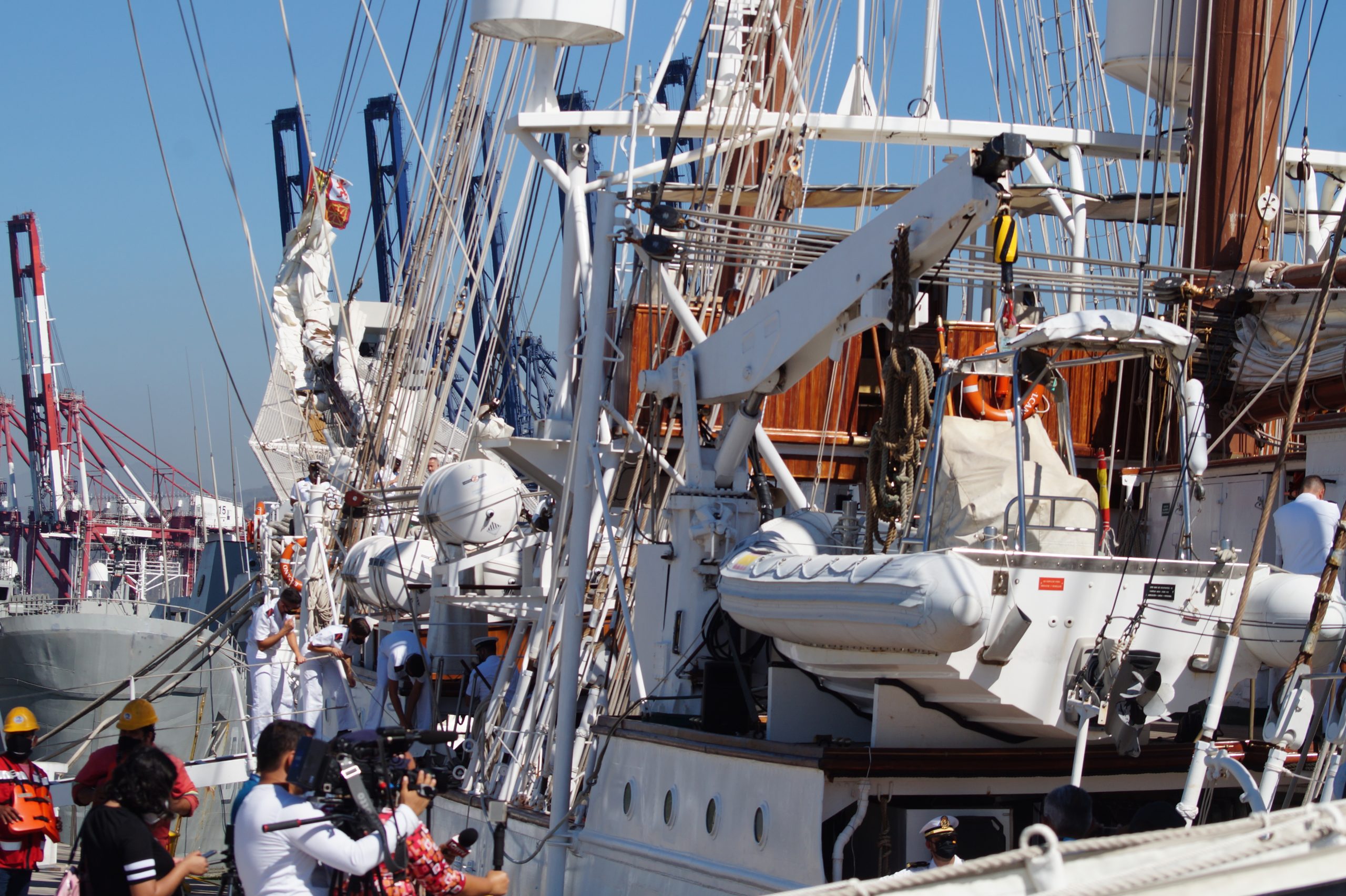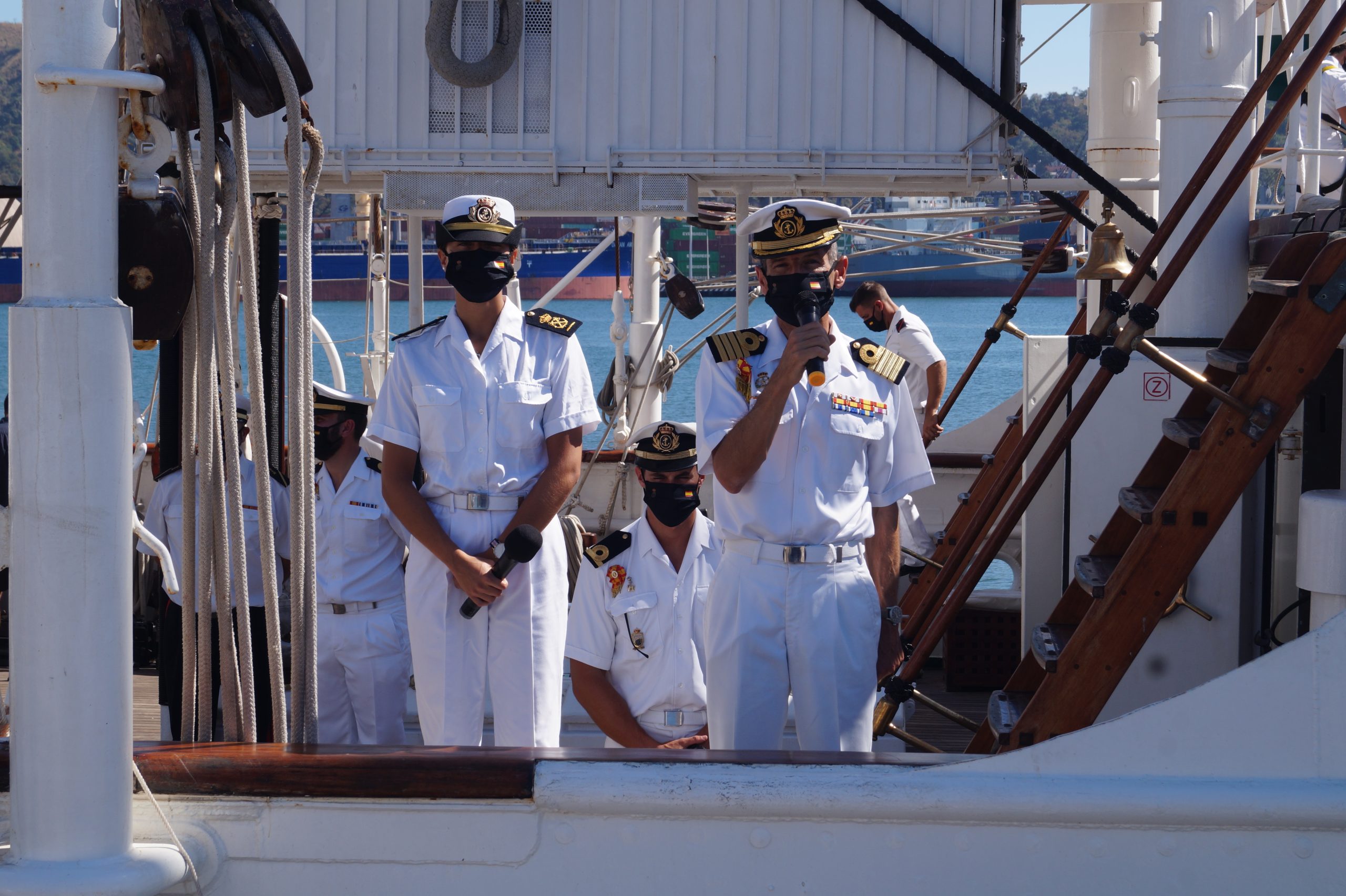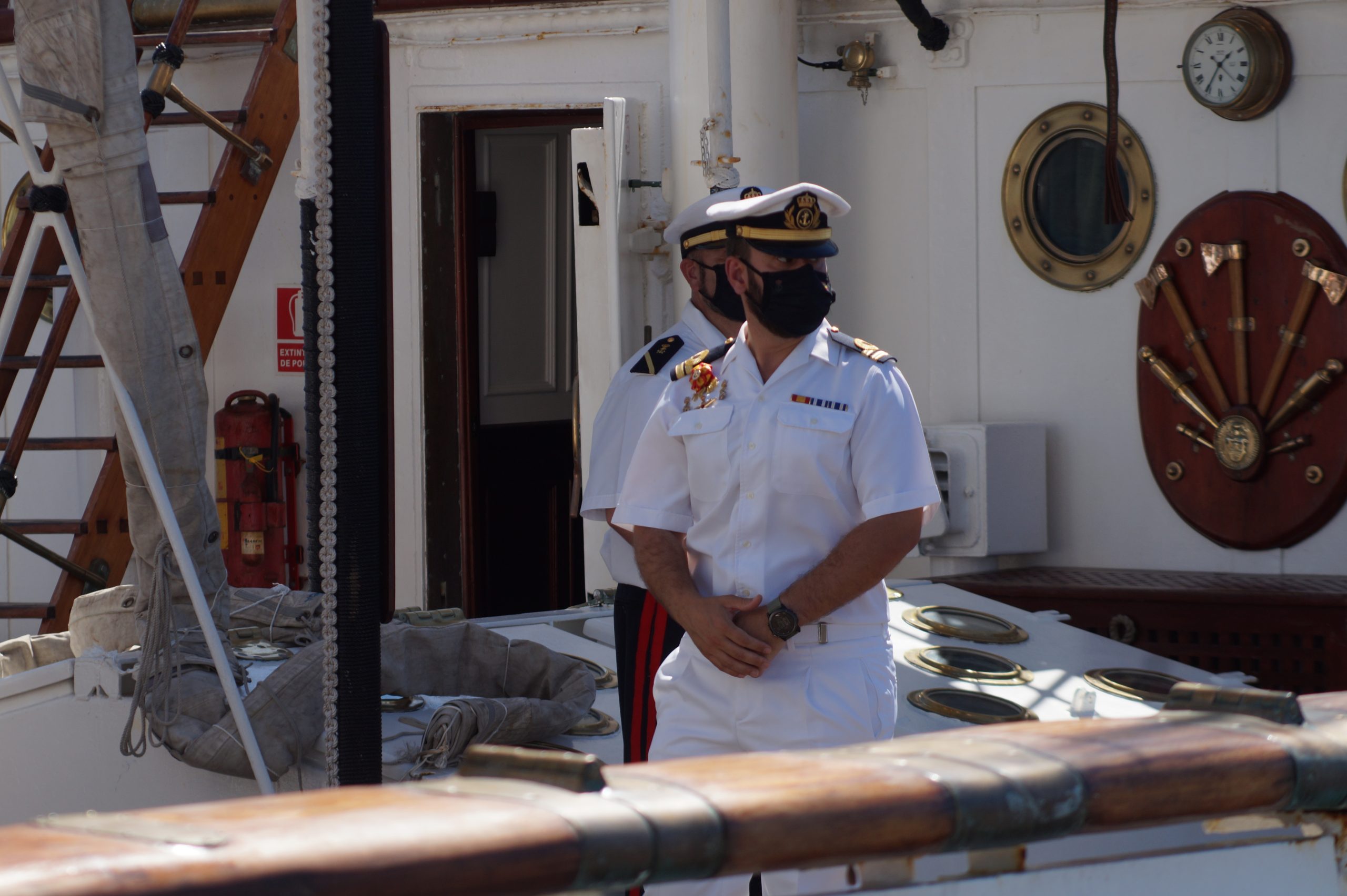 En la recepción del buque estuvieron personal diplomático hispano, así como autoridades militares de la localidad.
