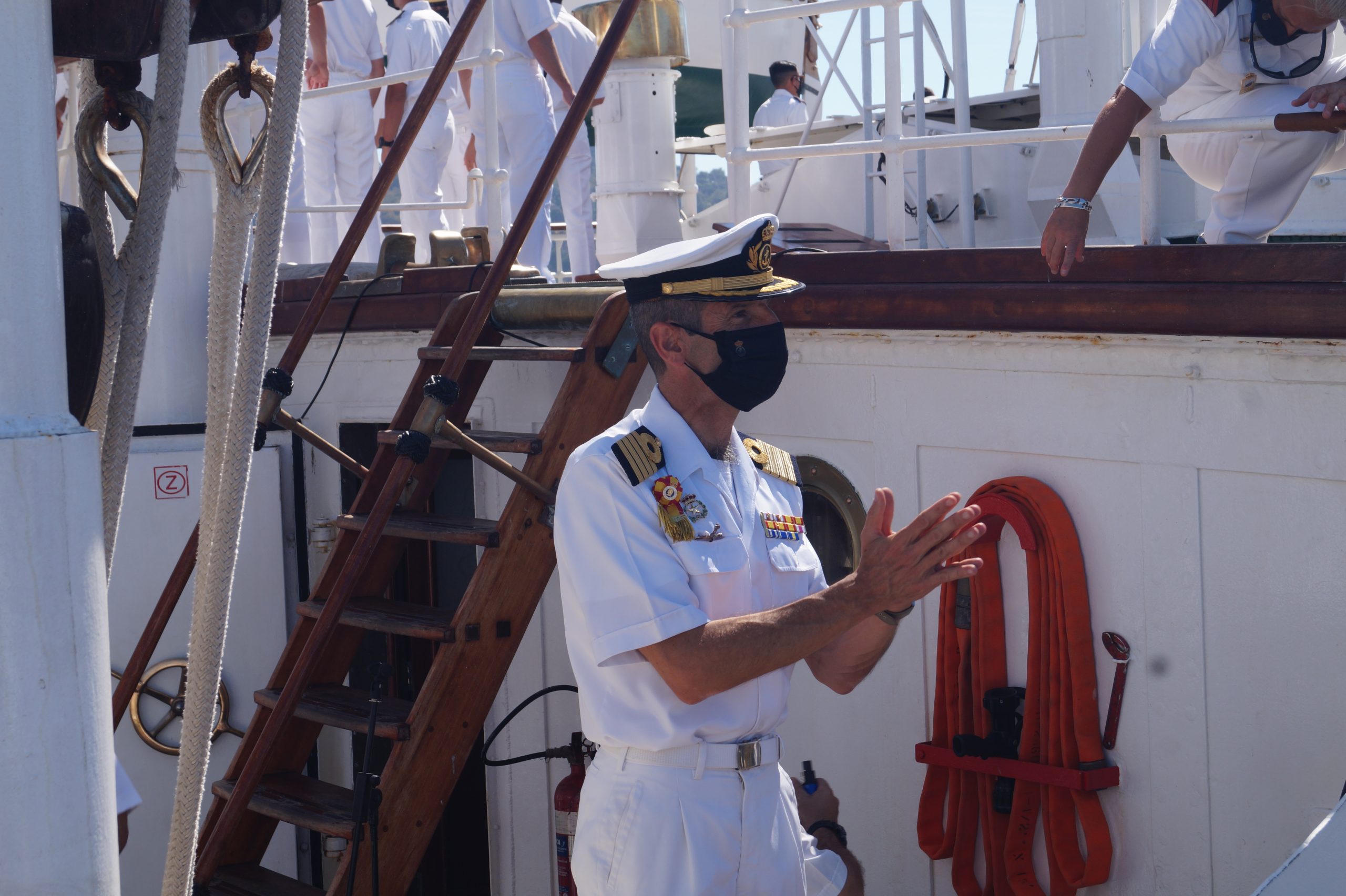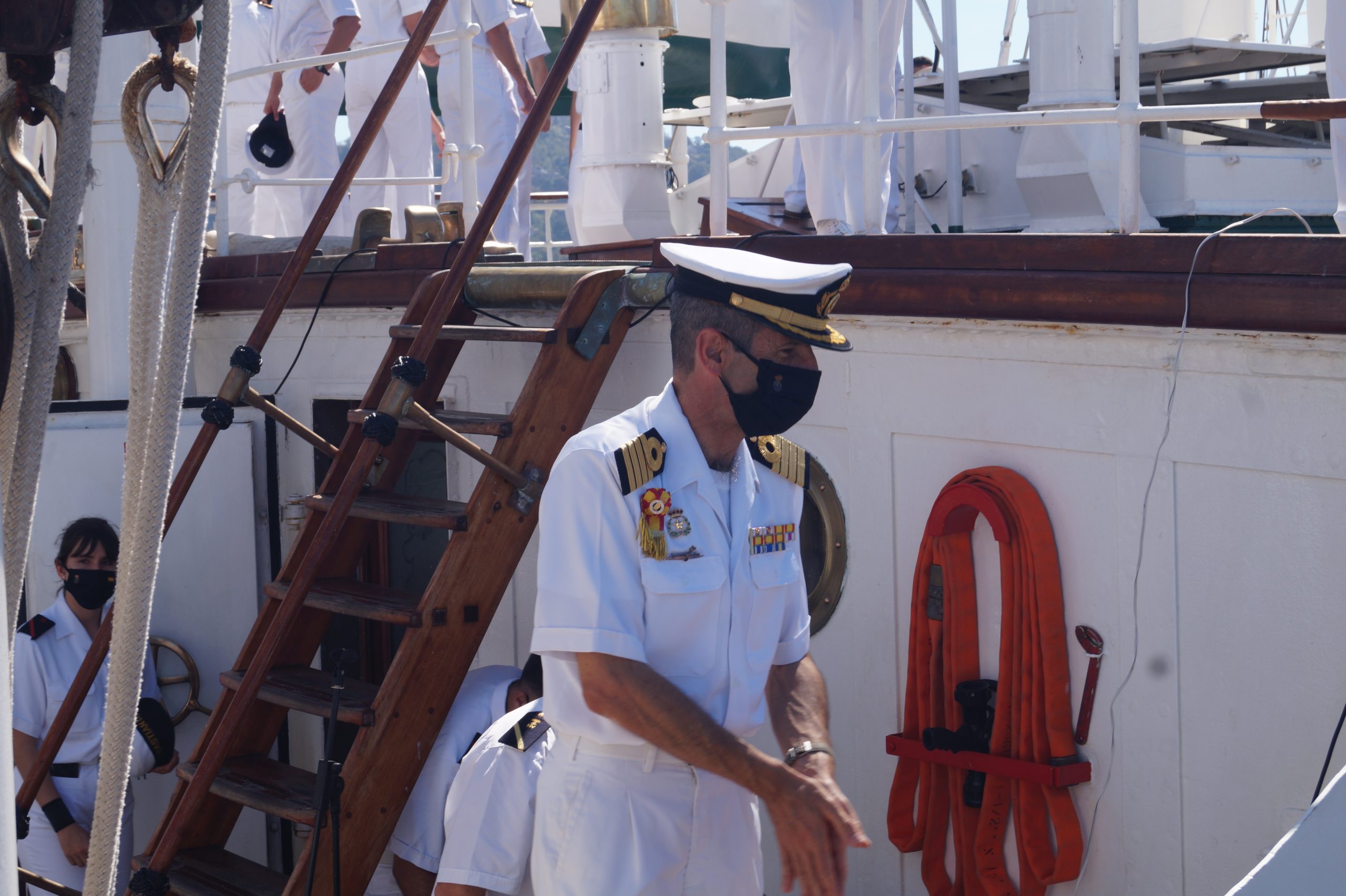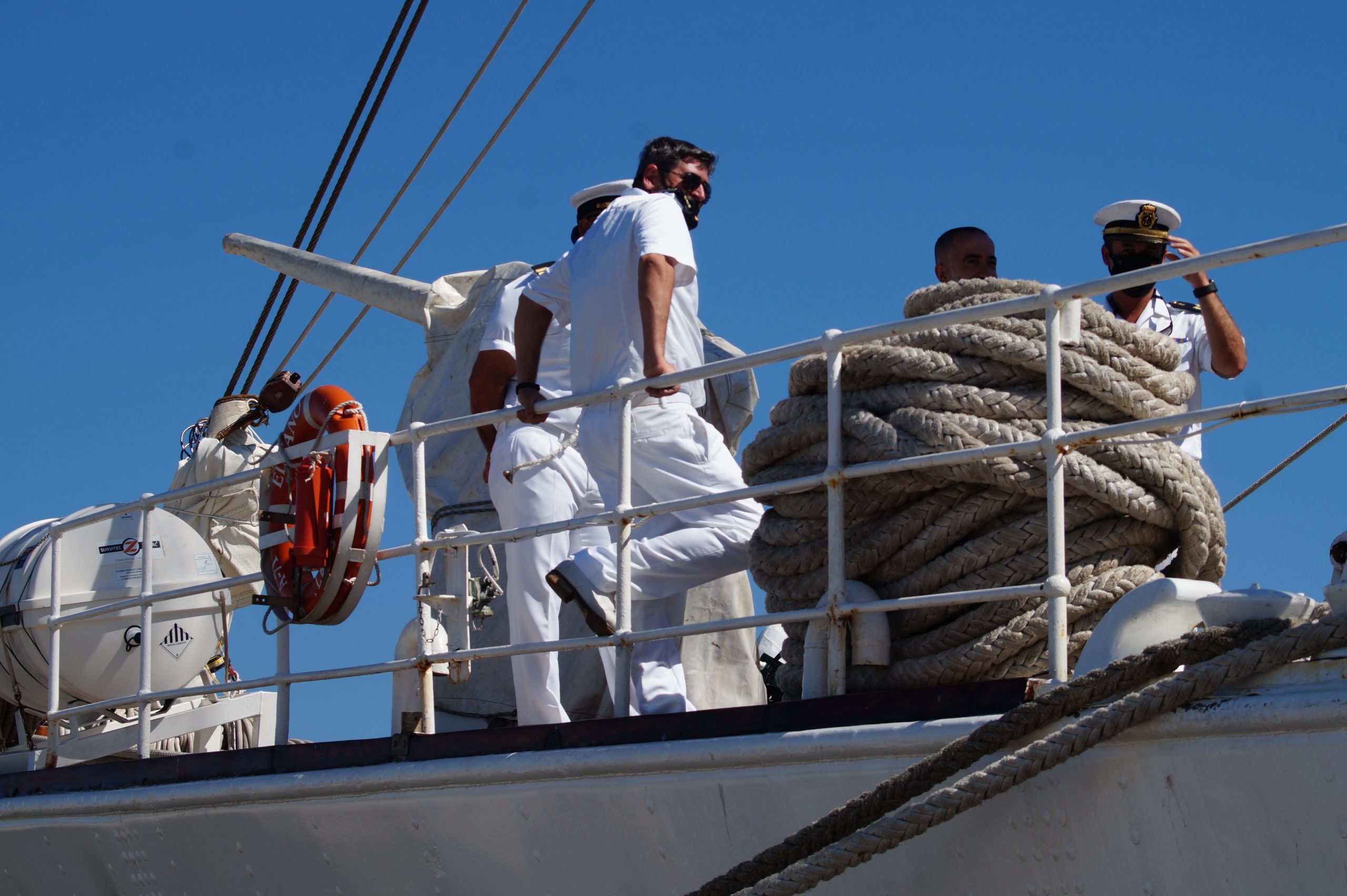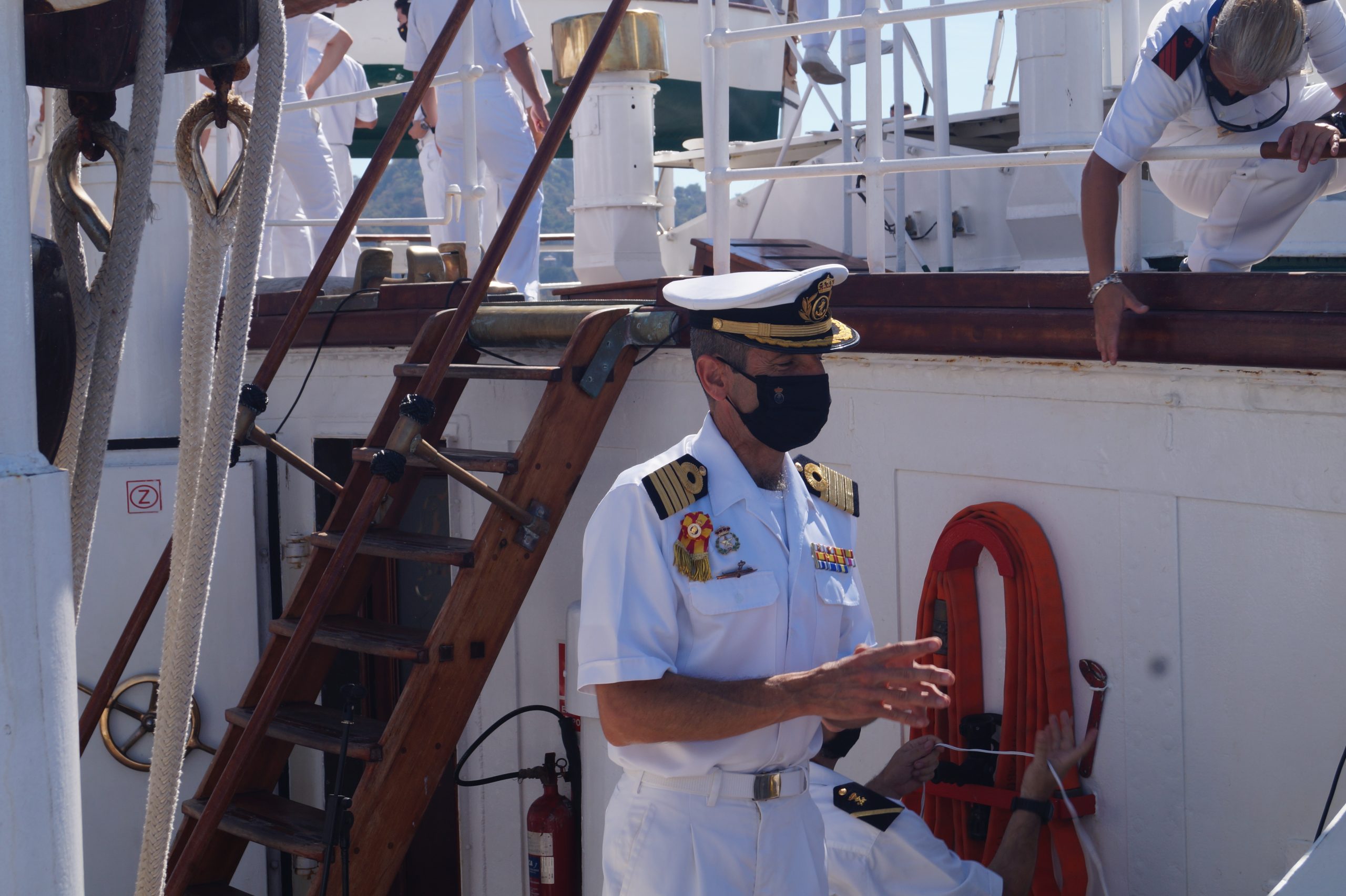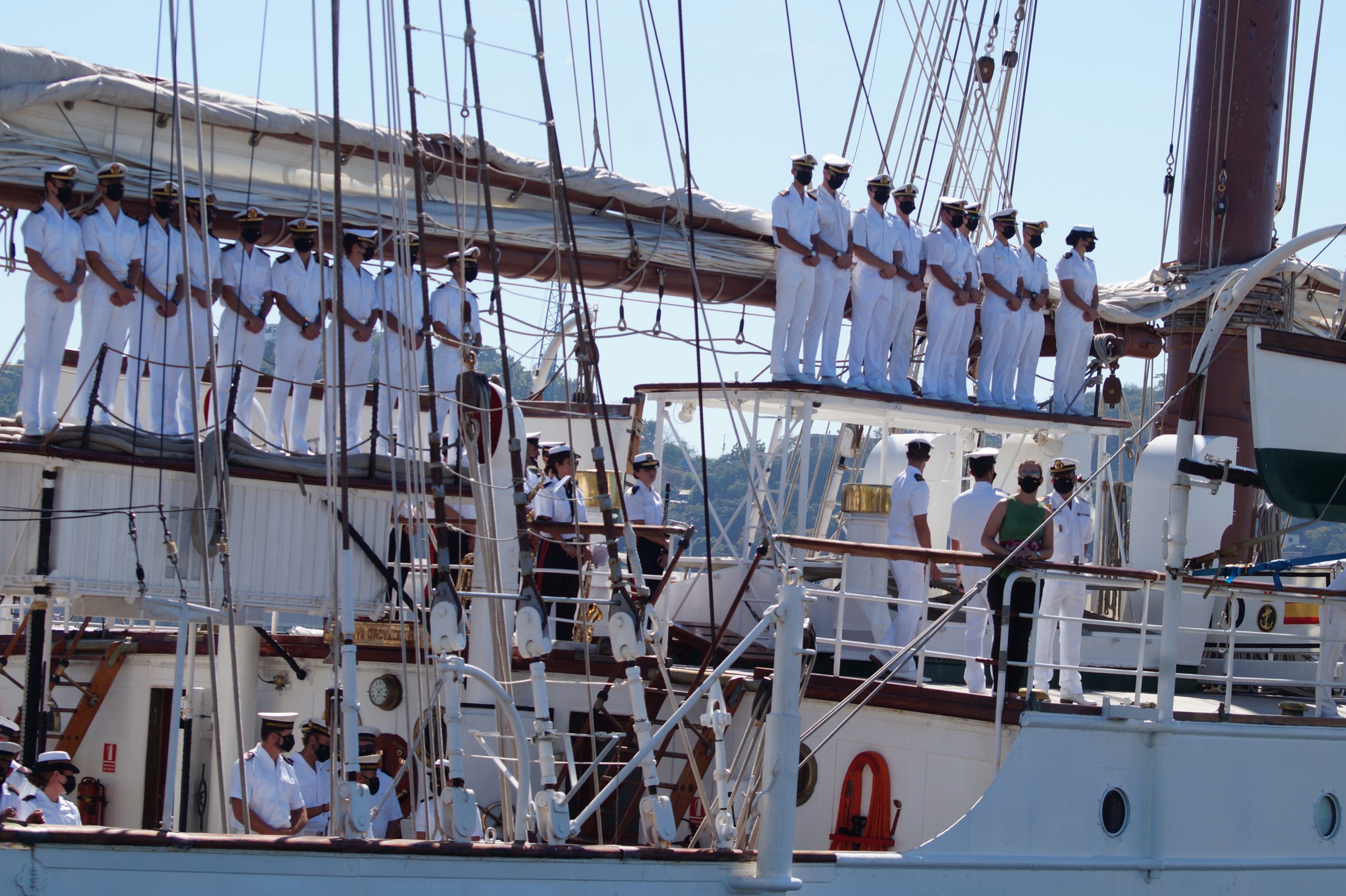 En la recepción del buque estuvieron personal diplomático hispano, así como autoridades militares de la localidad.