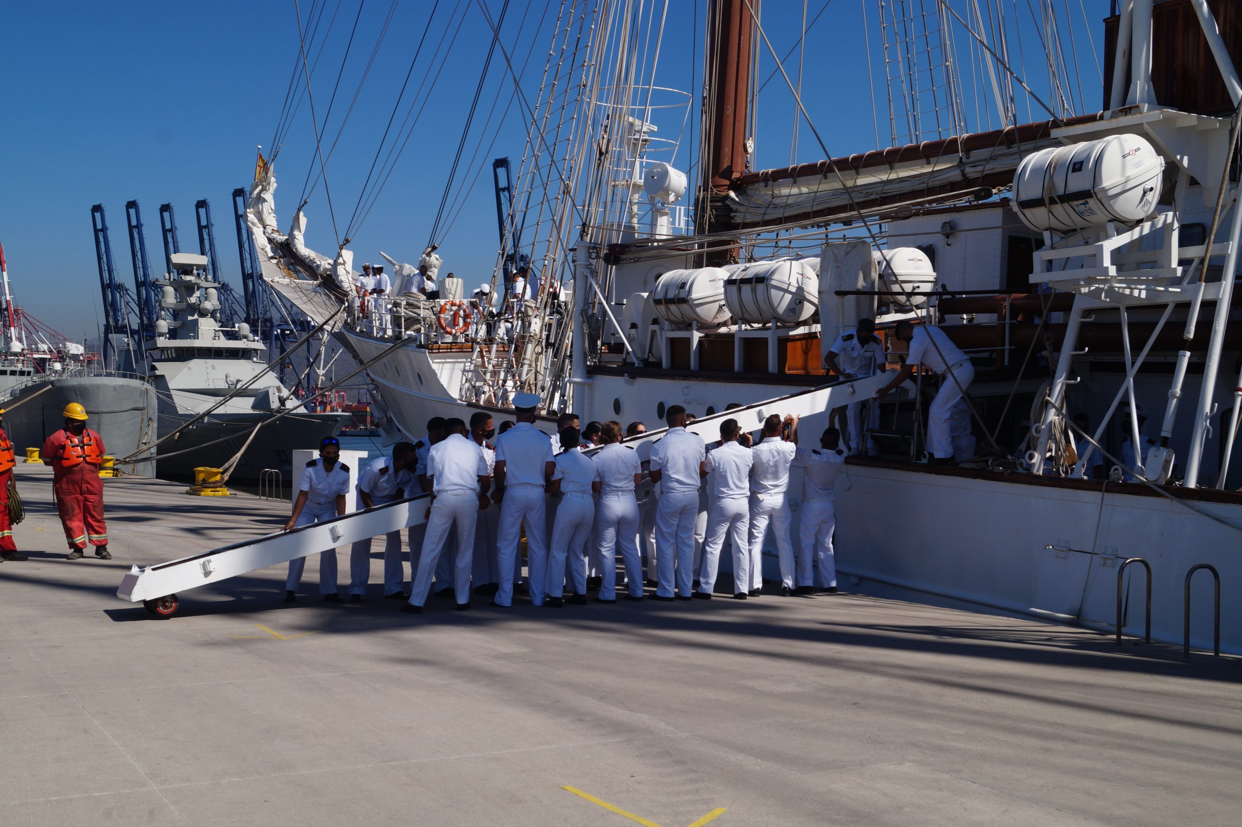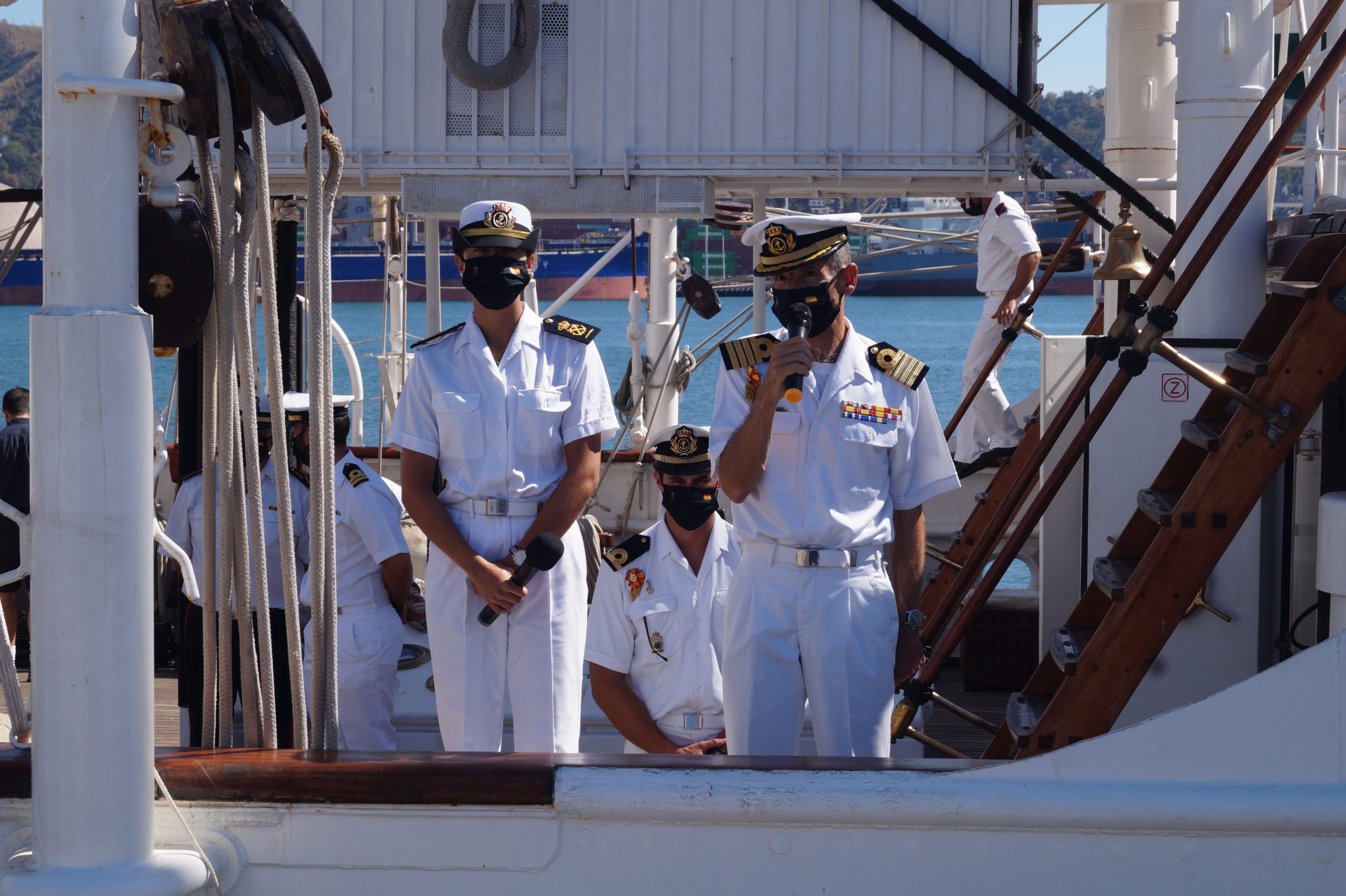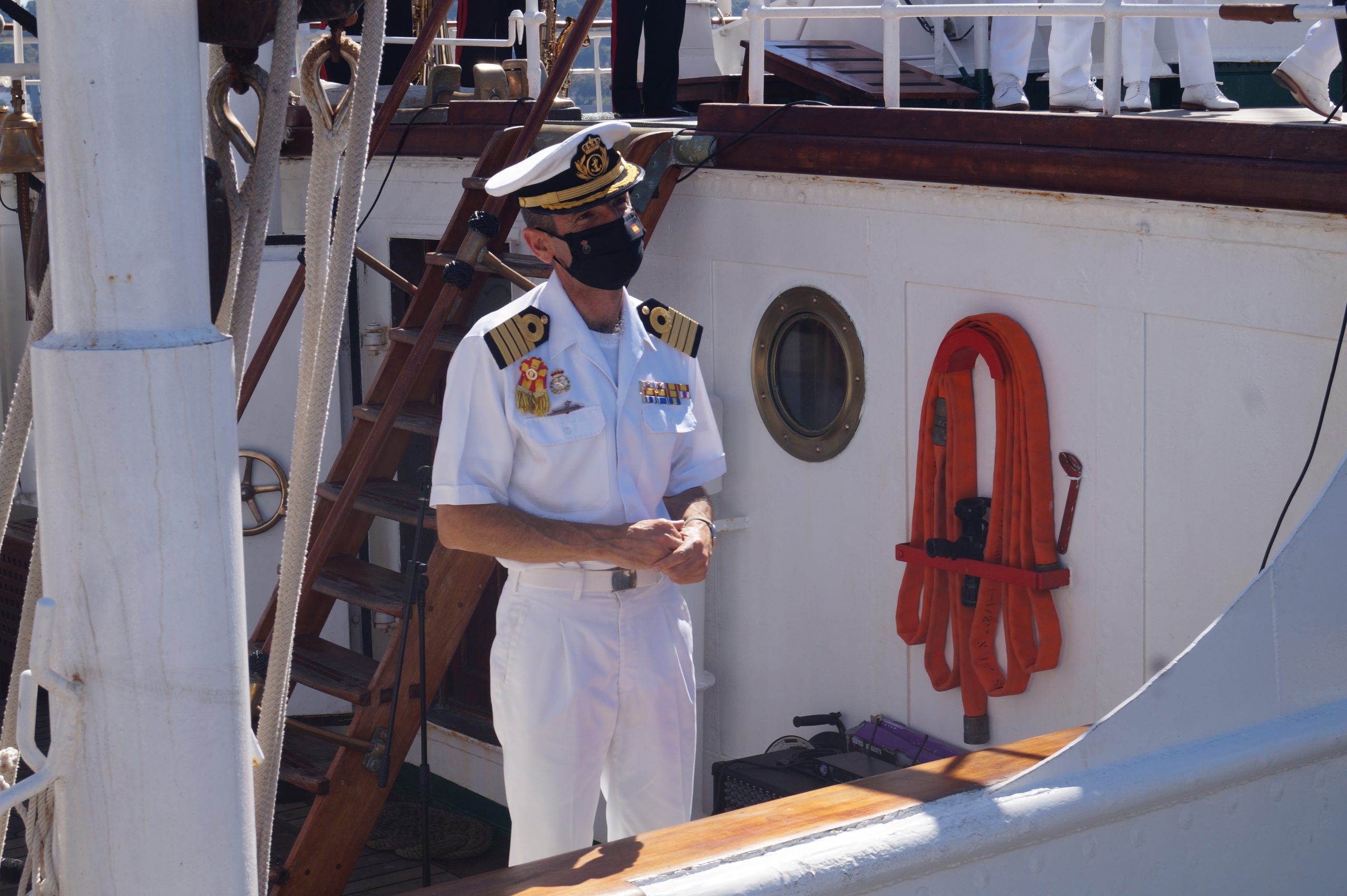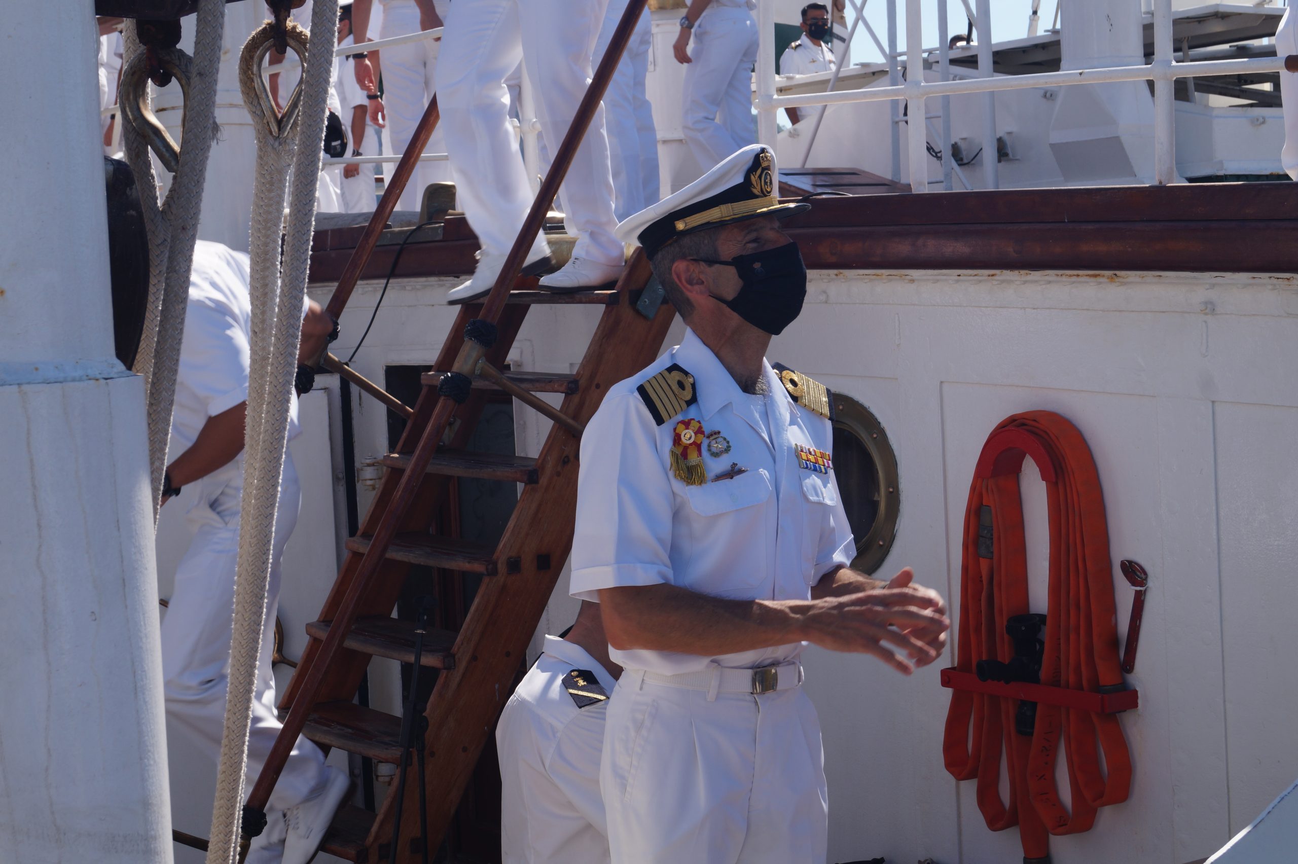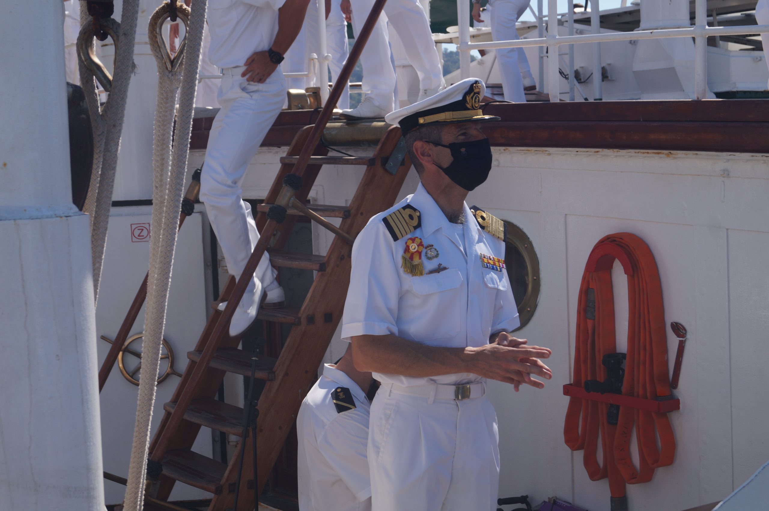 En la recepción del buque estuvieron personal diplomático hispano, así como autoridades militares de la localidad.