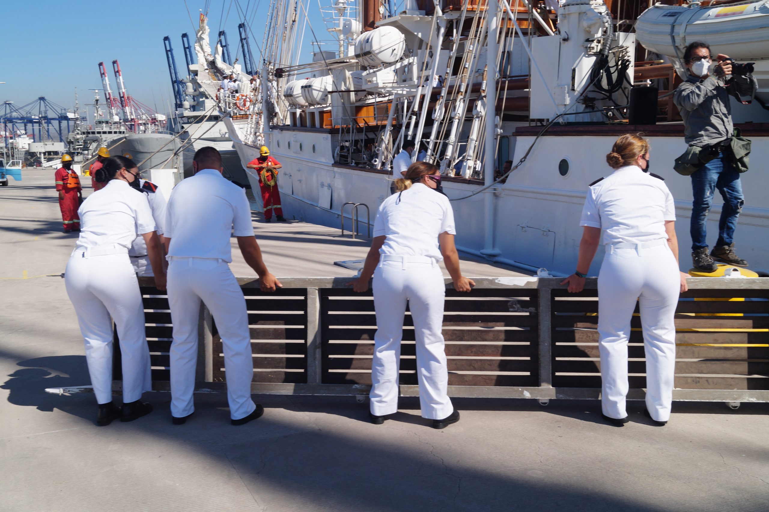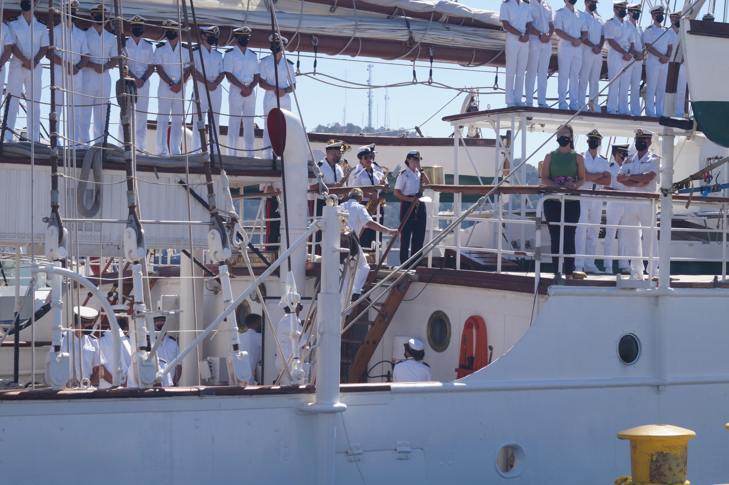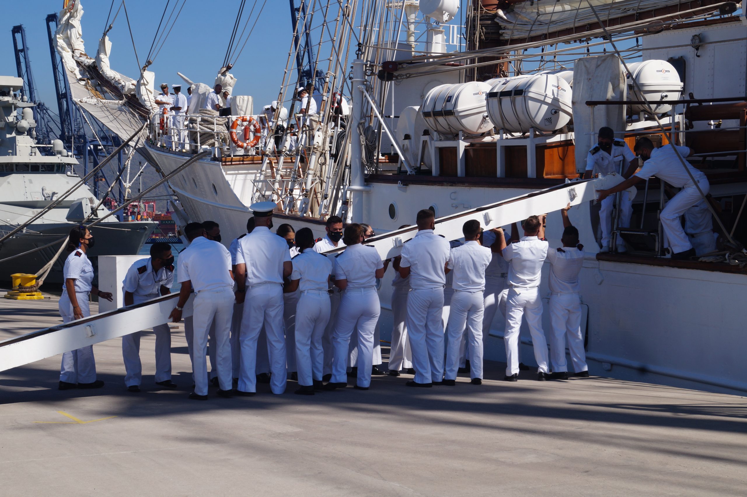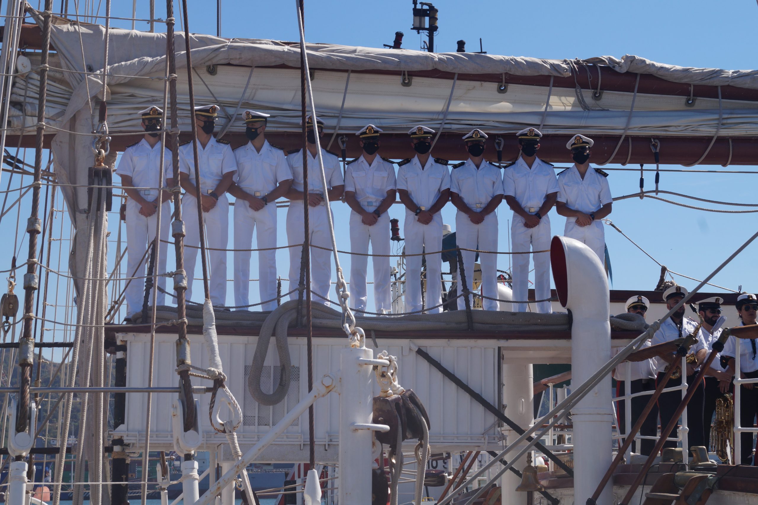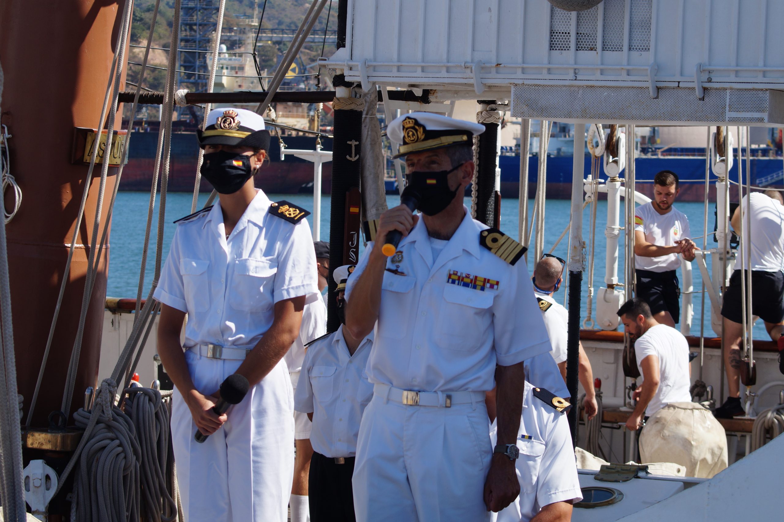 En la recepción del buque estuvieron personal diplomático hispano, así como autoridades militares de la localidad.