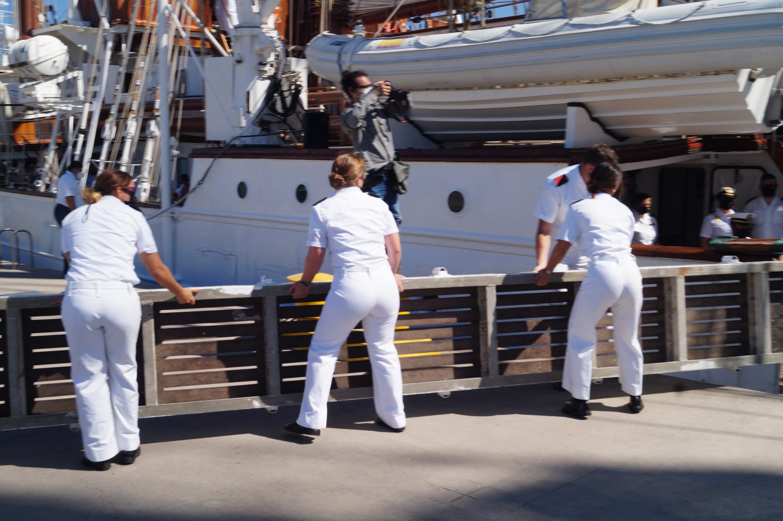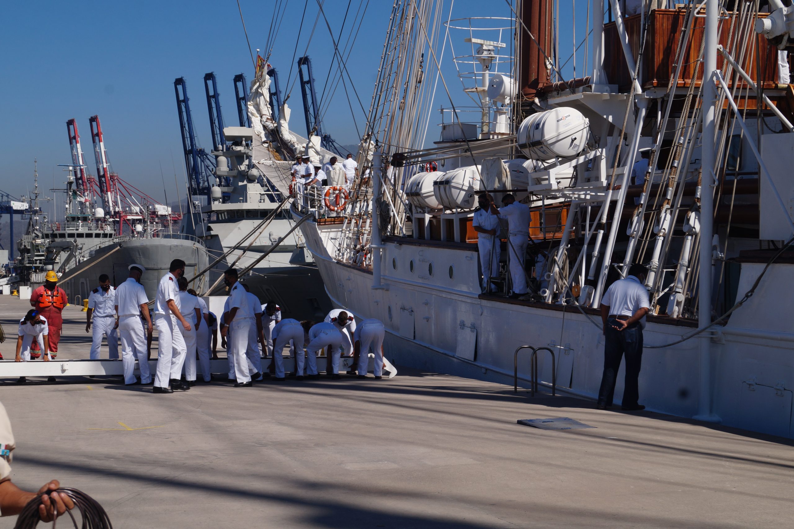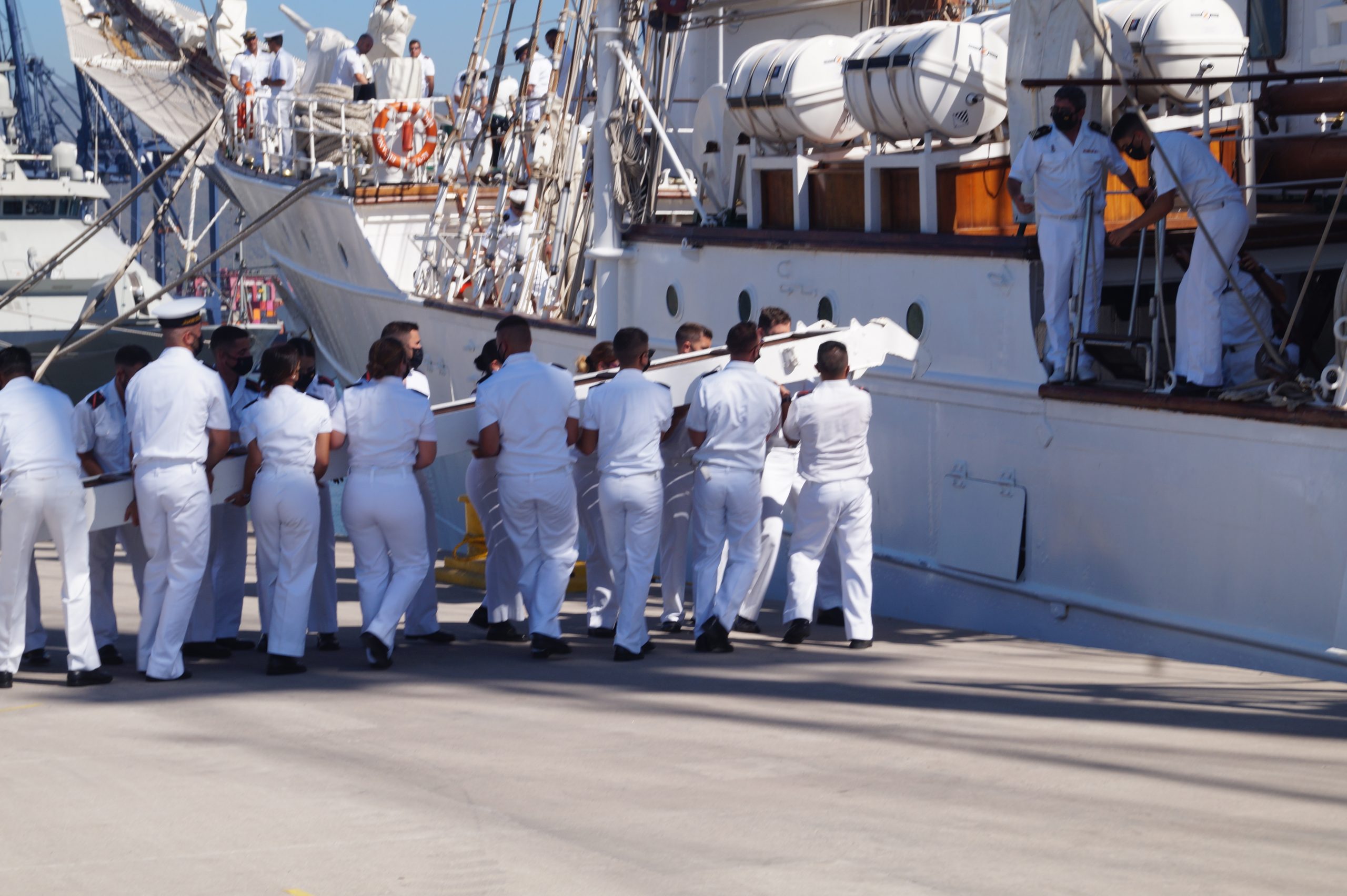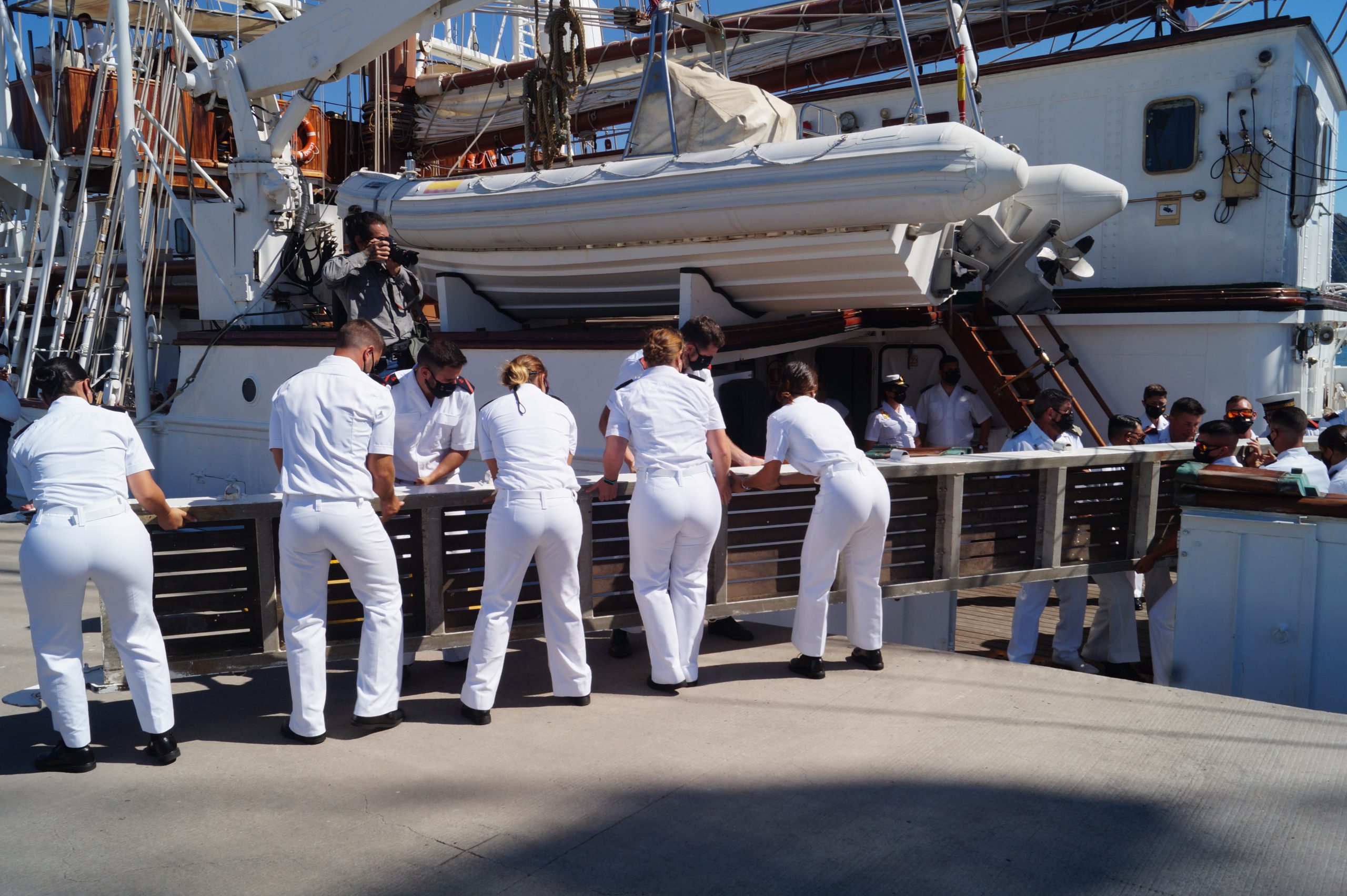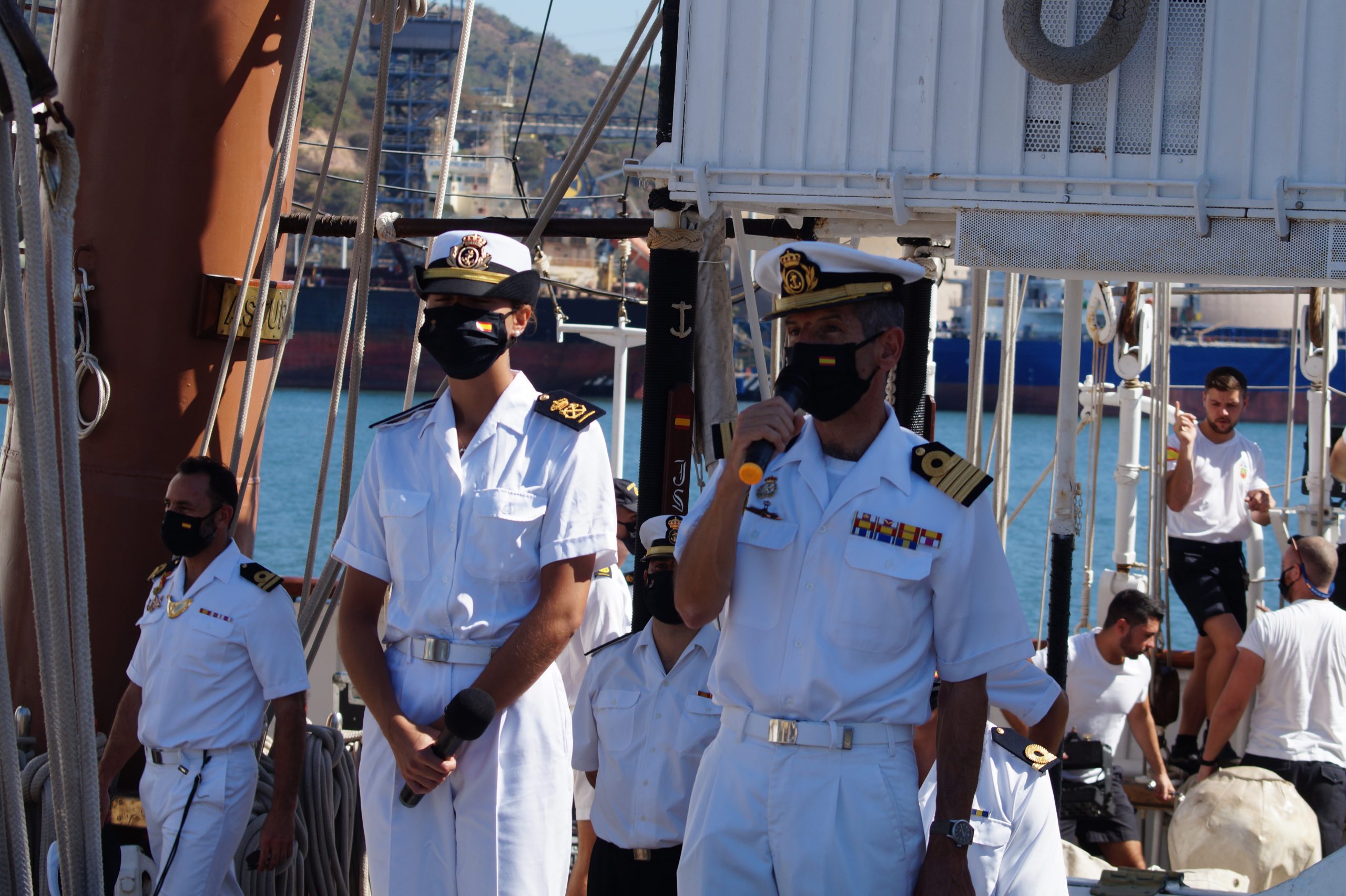 En la recepción del buque estuvieron personal diplomático hispano, así como autoridades militares de la localidad.