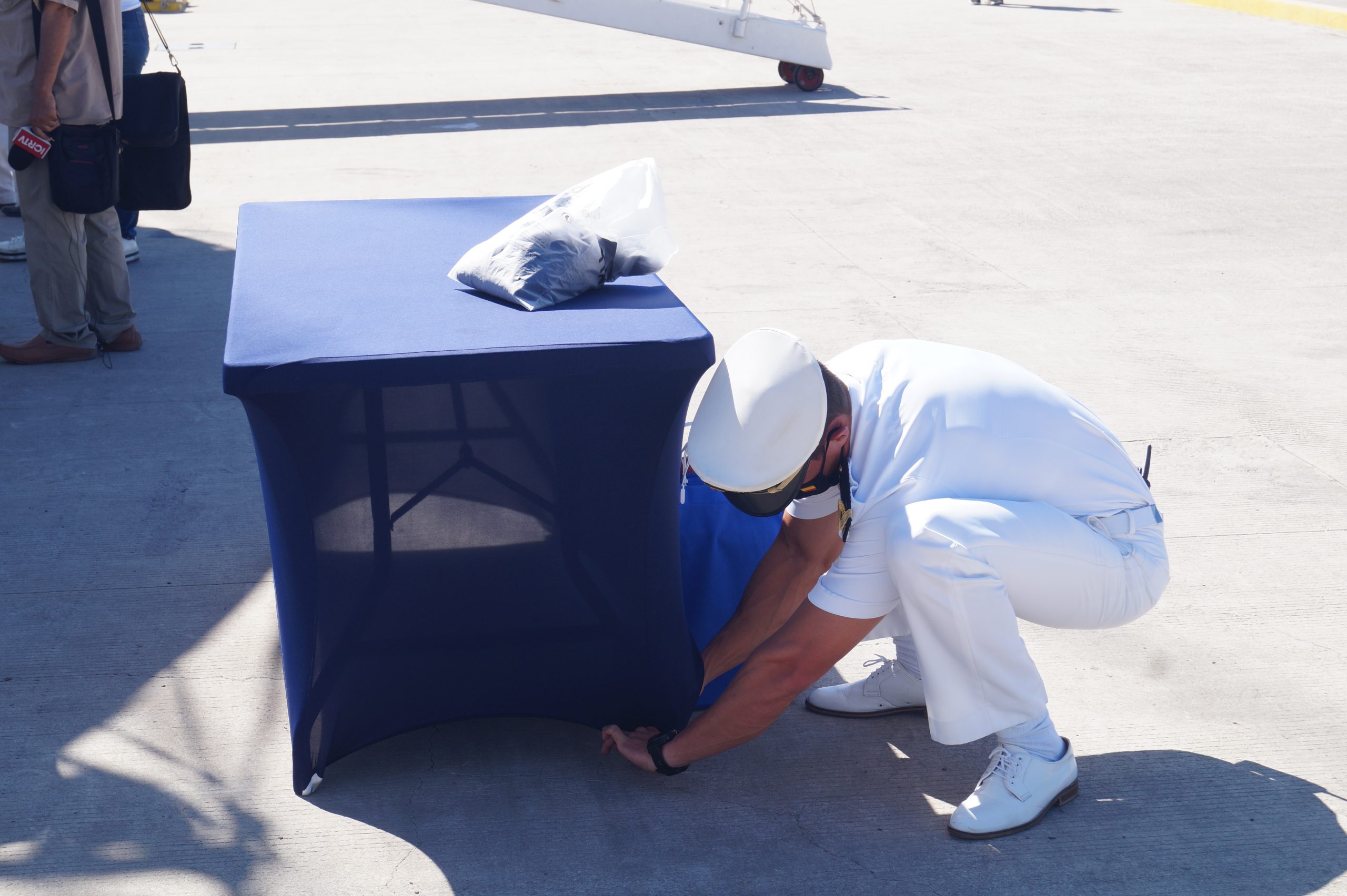 Santiago Colza explicó que por la pandemia de COVID 19, no se permitirá que la tripulación desembarque, tampoco realizarán actividades públicas pues además mencionó que el buque es un espacio restringido.