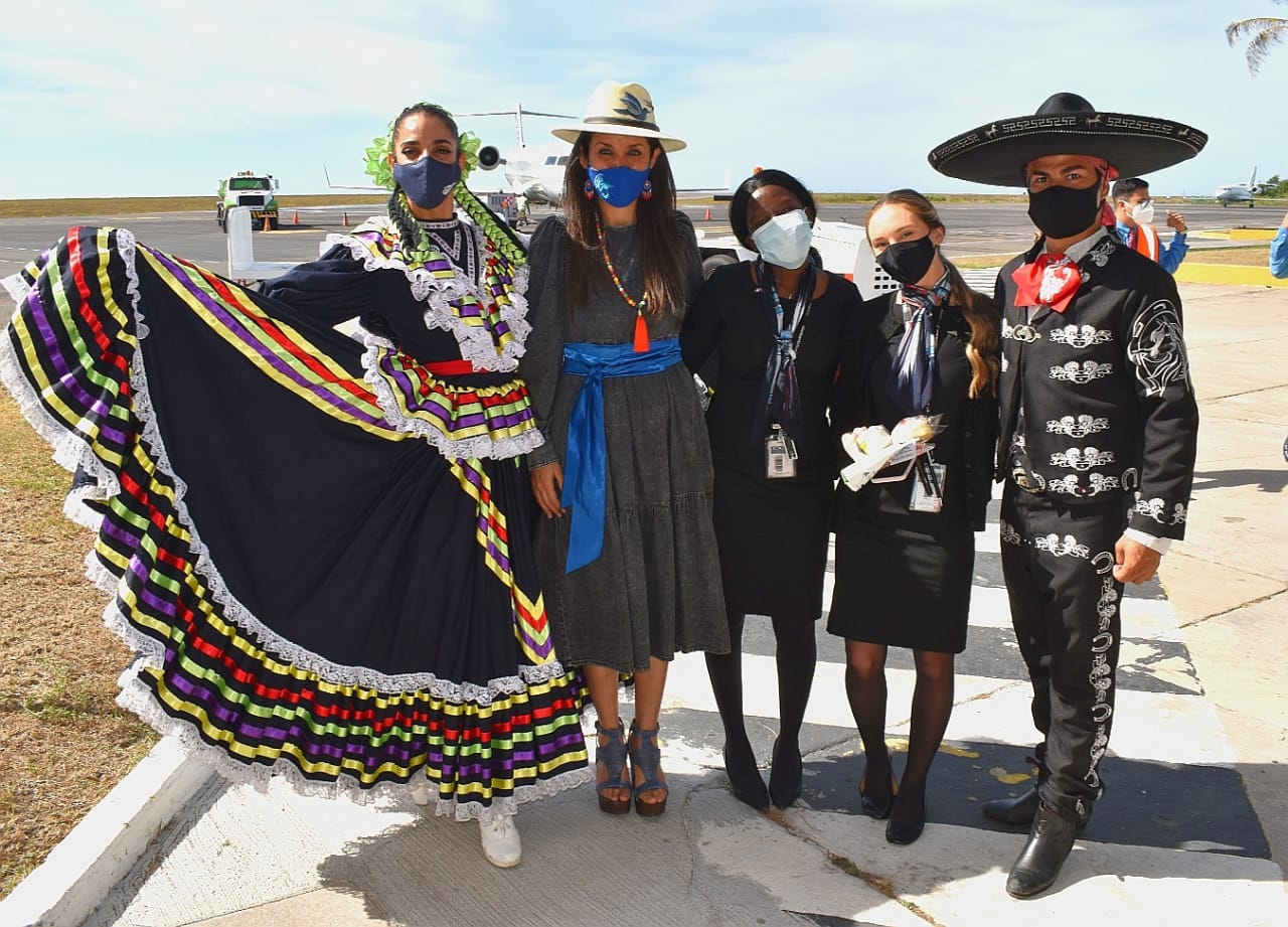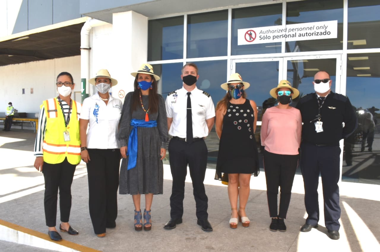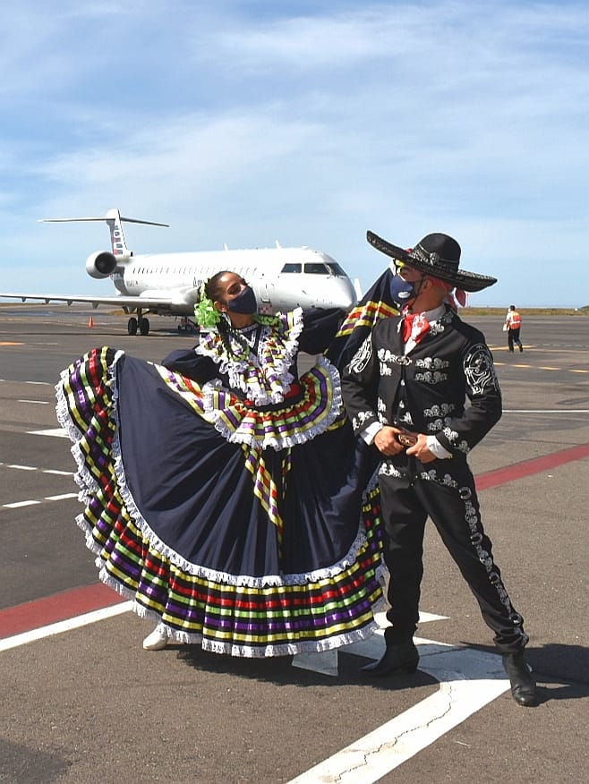 En las instalaciones del Aeropuerto Internacional de Manzanillo-Costalegre, la secretaria de Turismo, Mara Íñiguez Méndez dio la bienvenida al arribo del tercer vuelo internacional de American Airlines, proveniente de Dallas, Texas.