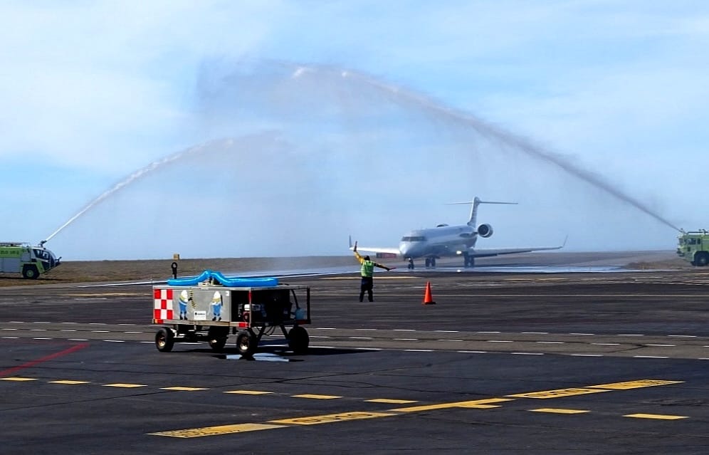 Los pasajeros del vuelo fueron recibidos con la presentación de un ballet folclórico y se les entregó un presente como muestra de agradecimiento y bienvenida.